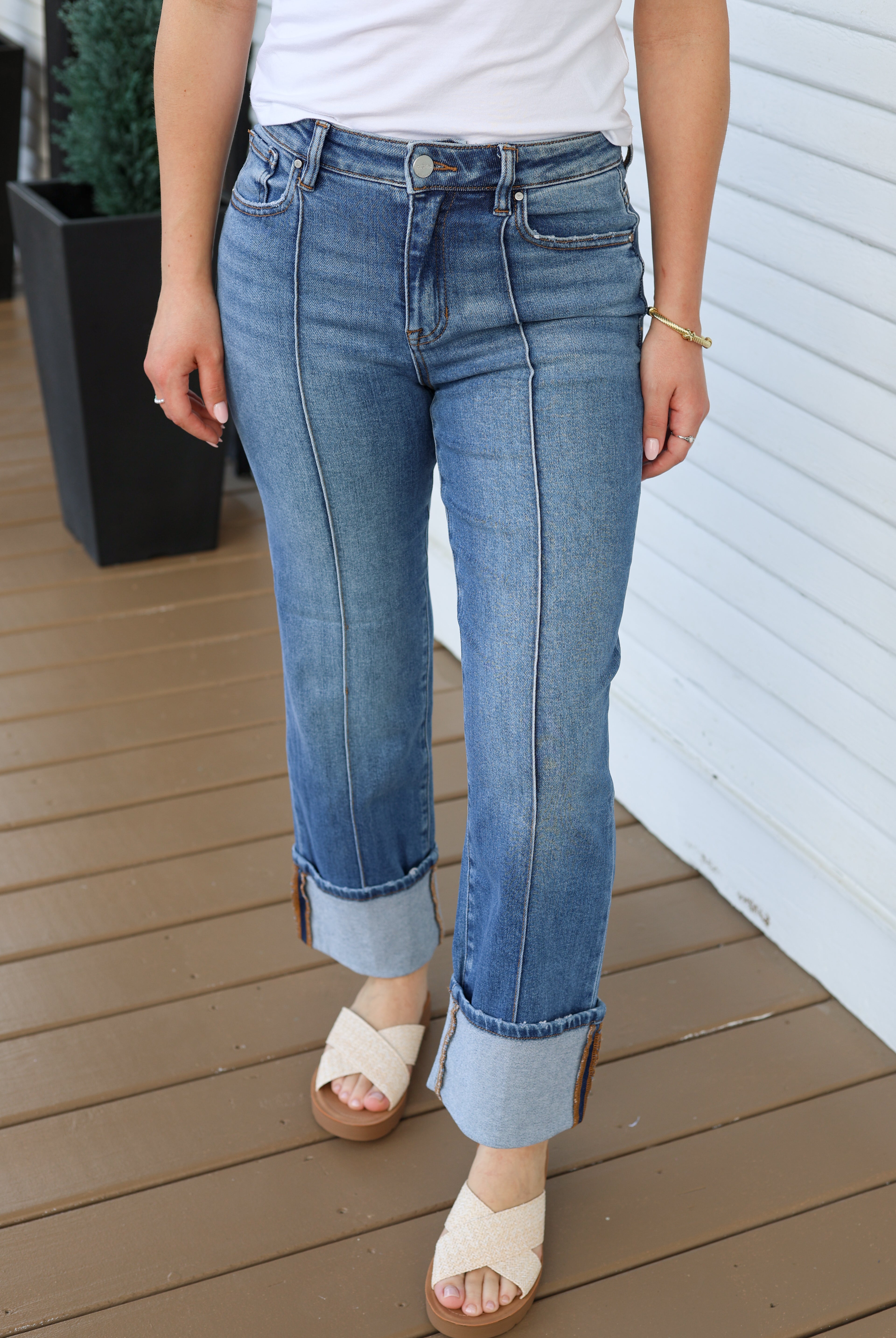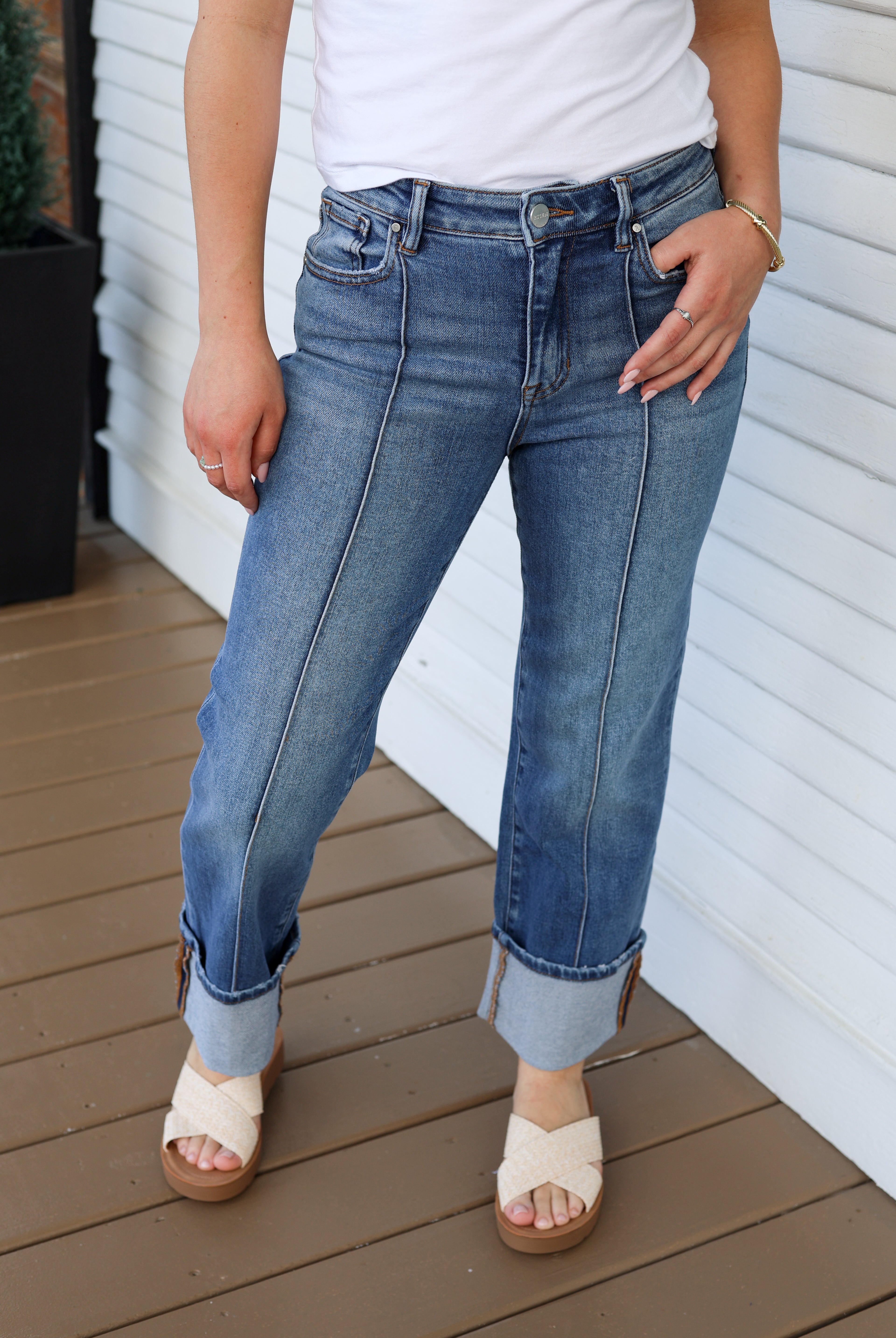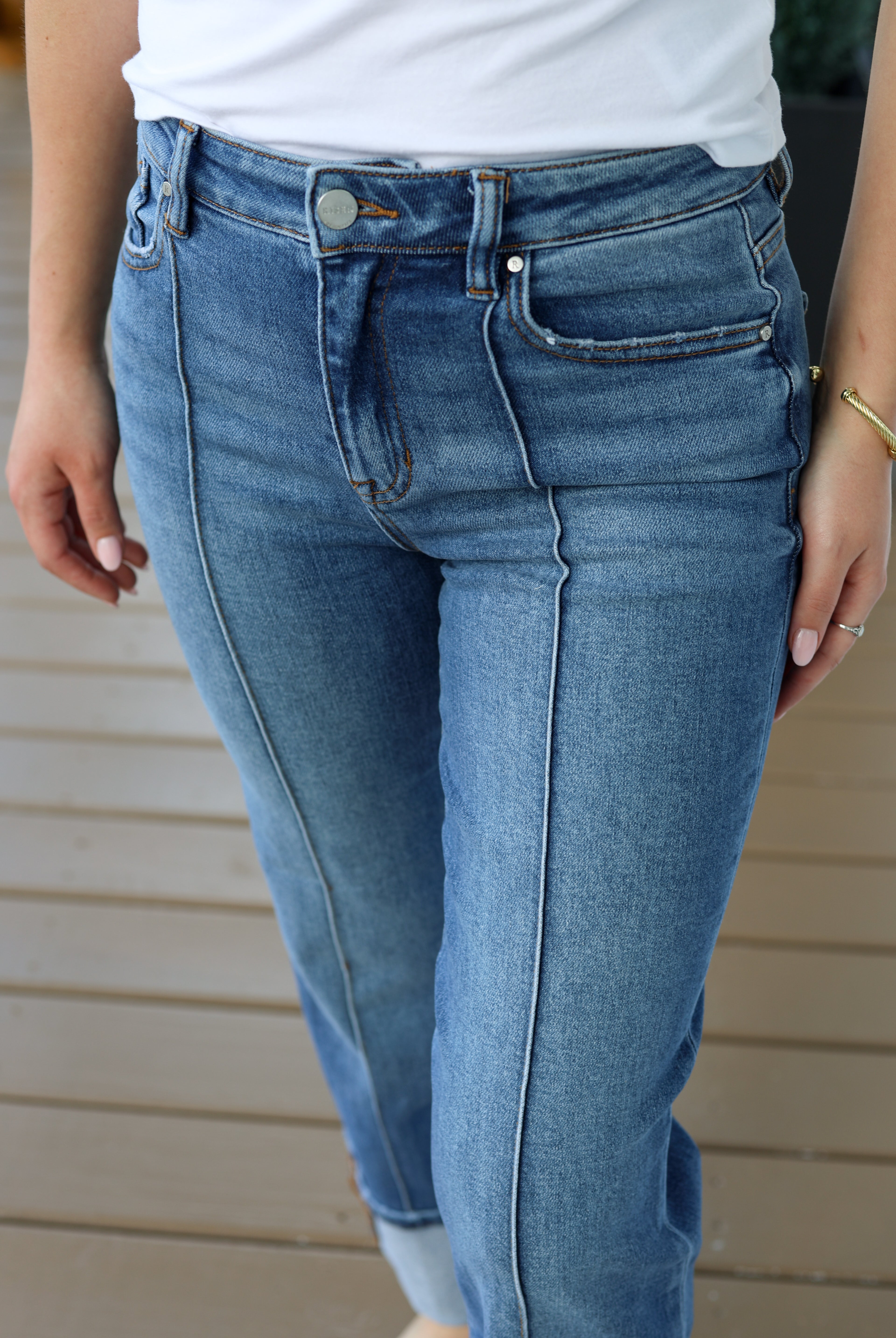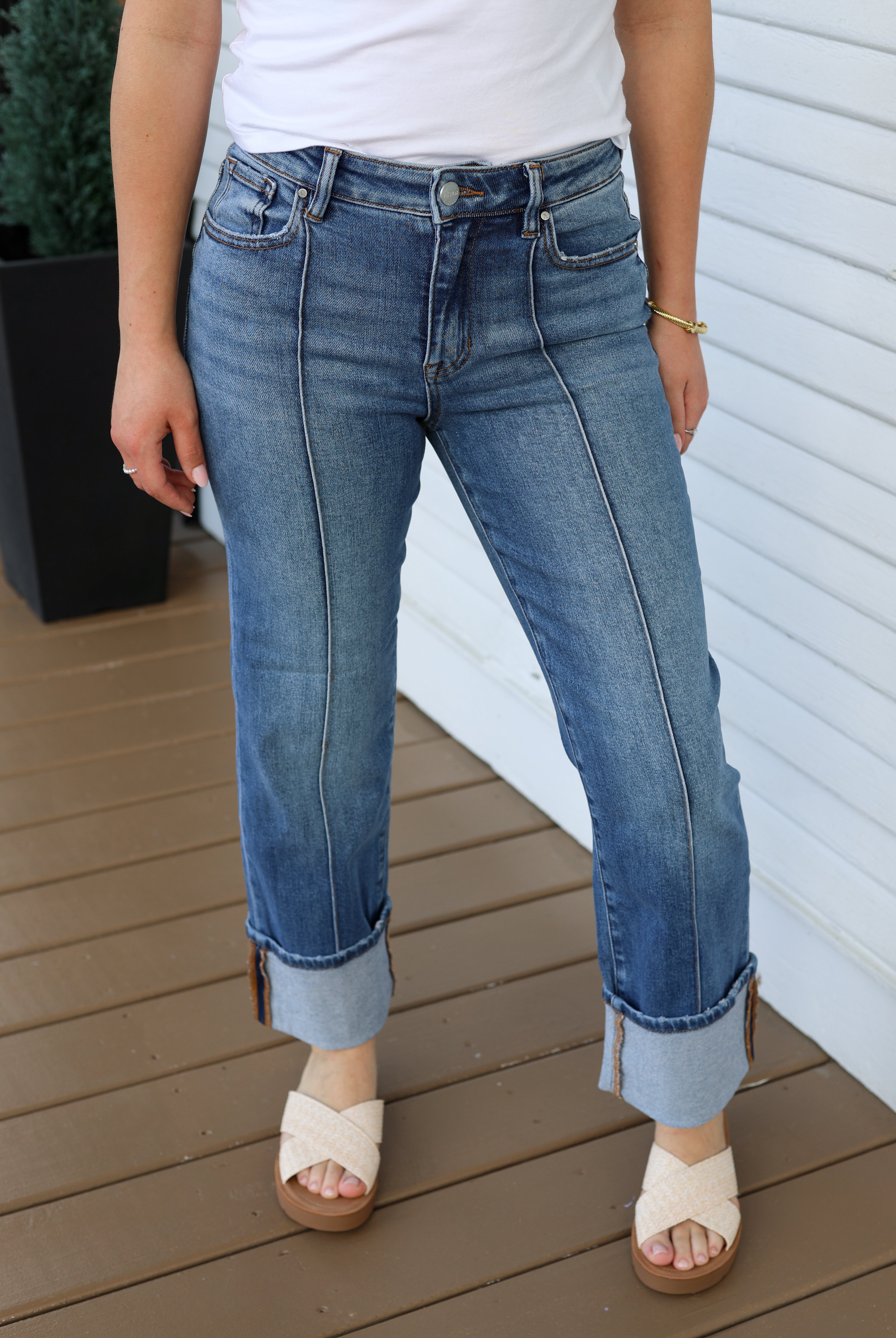 Cuffed Front Seam Denim
