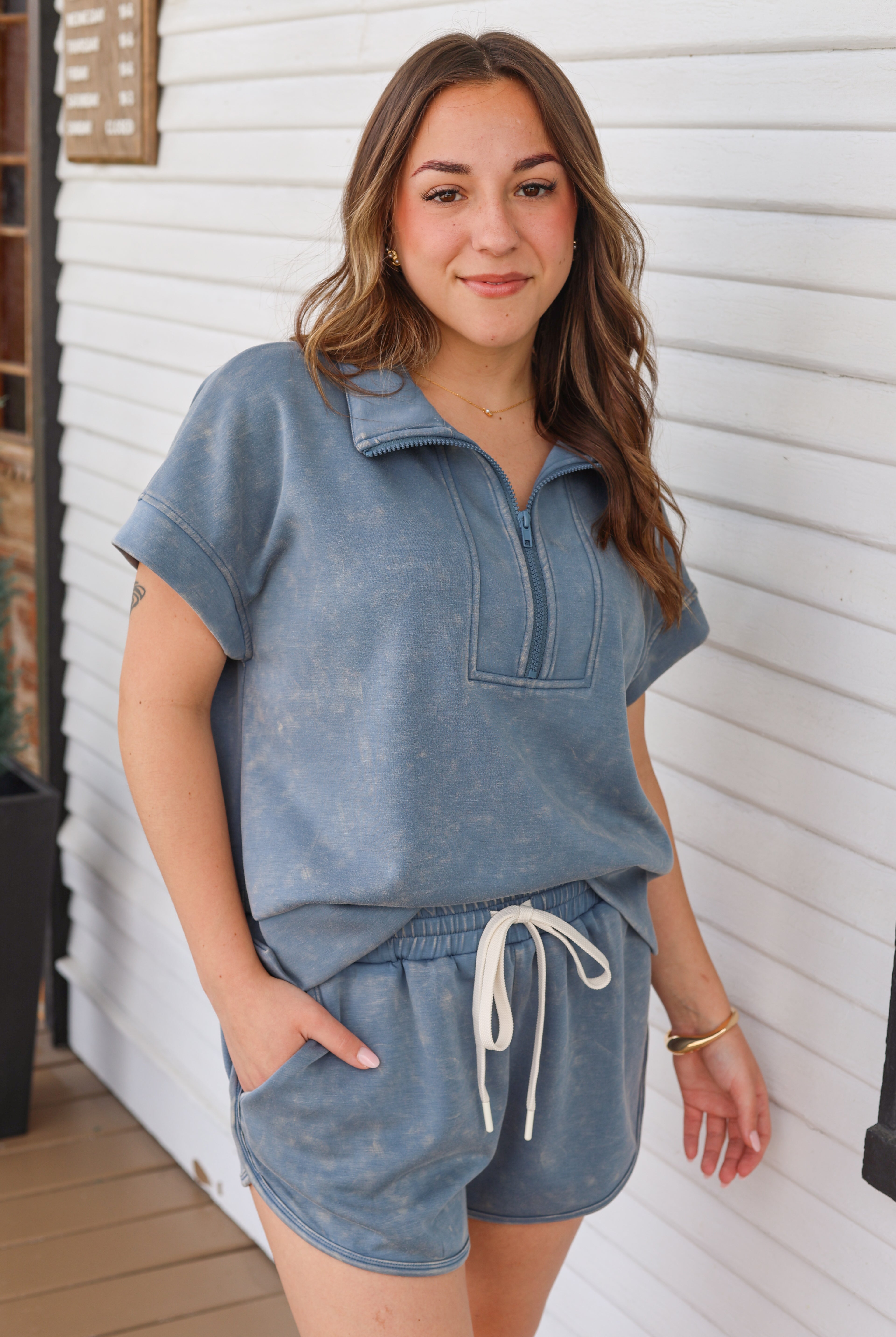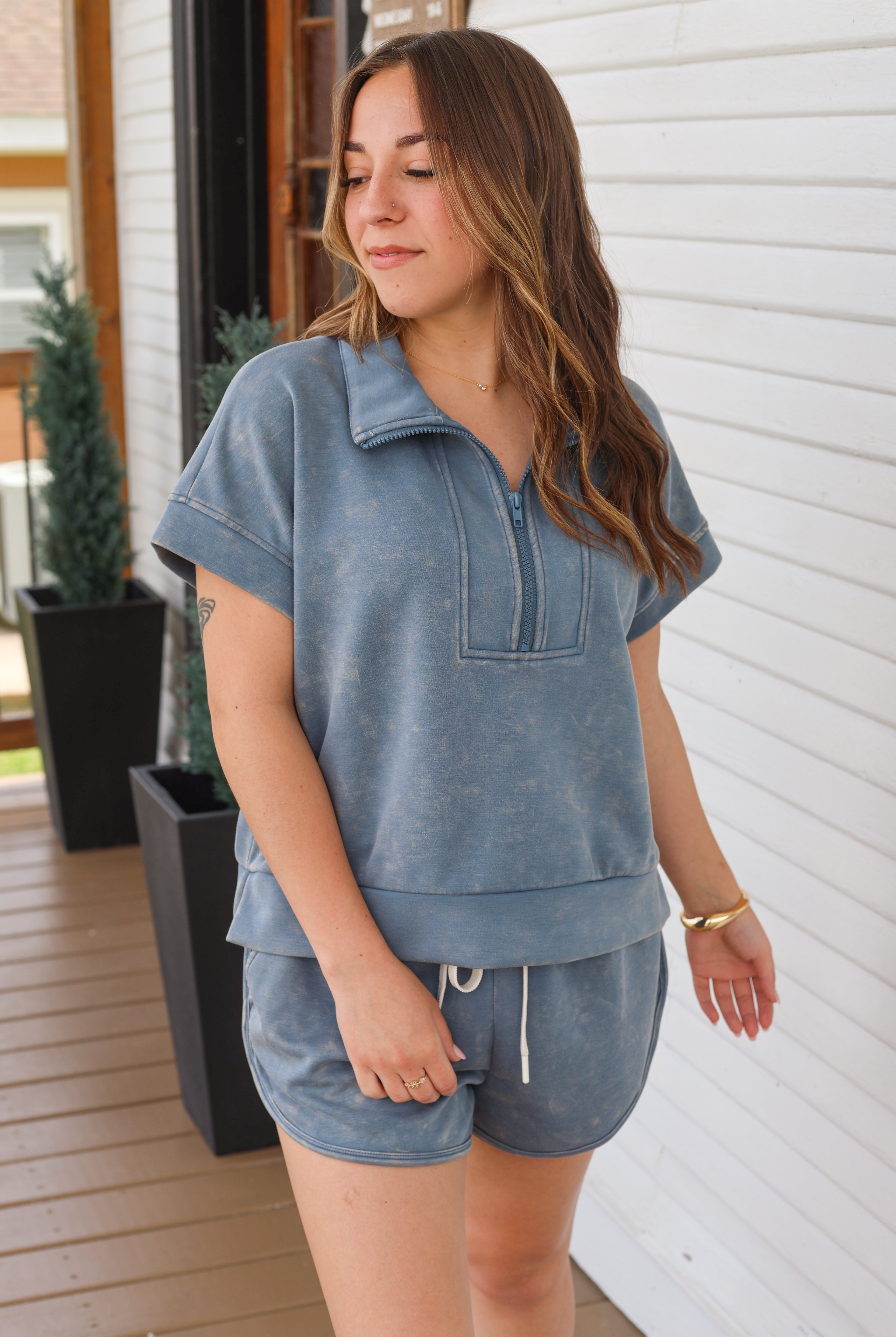 Mineral Washed Side Slit Short Set