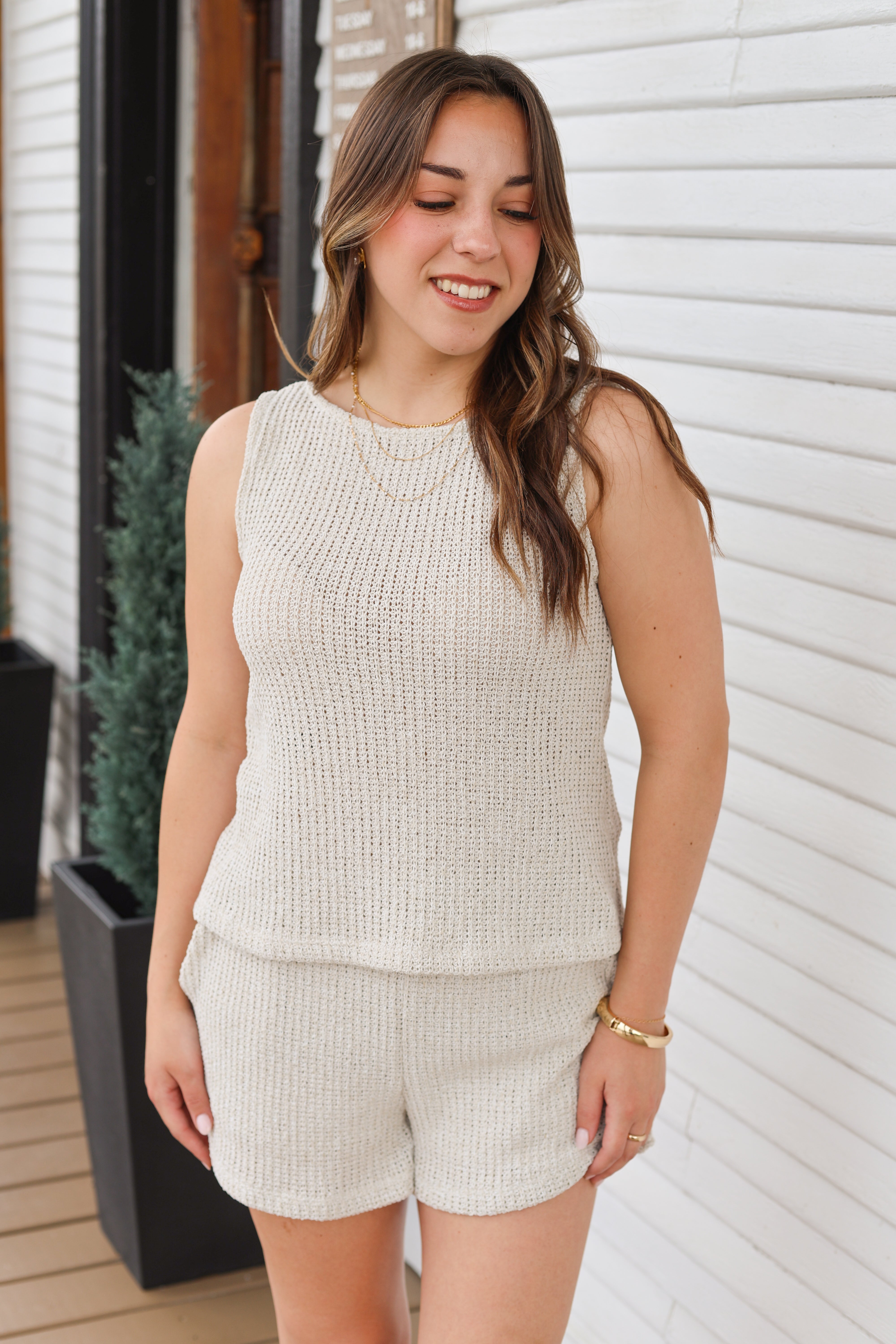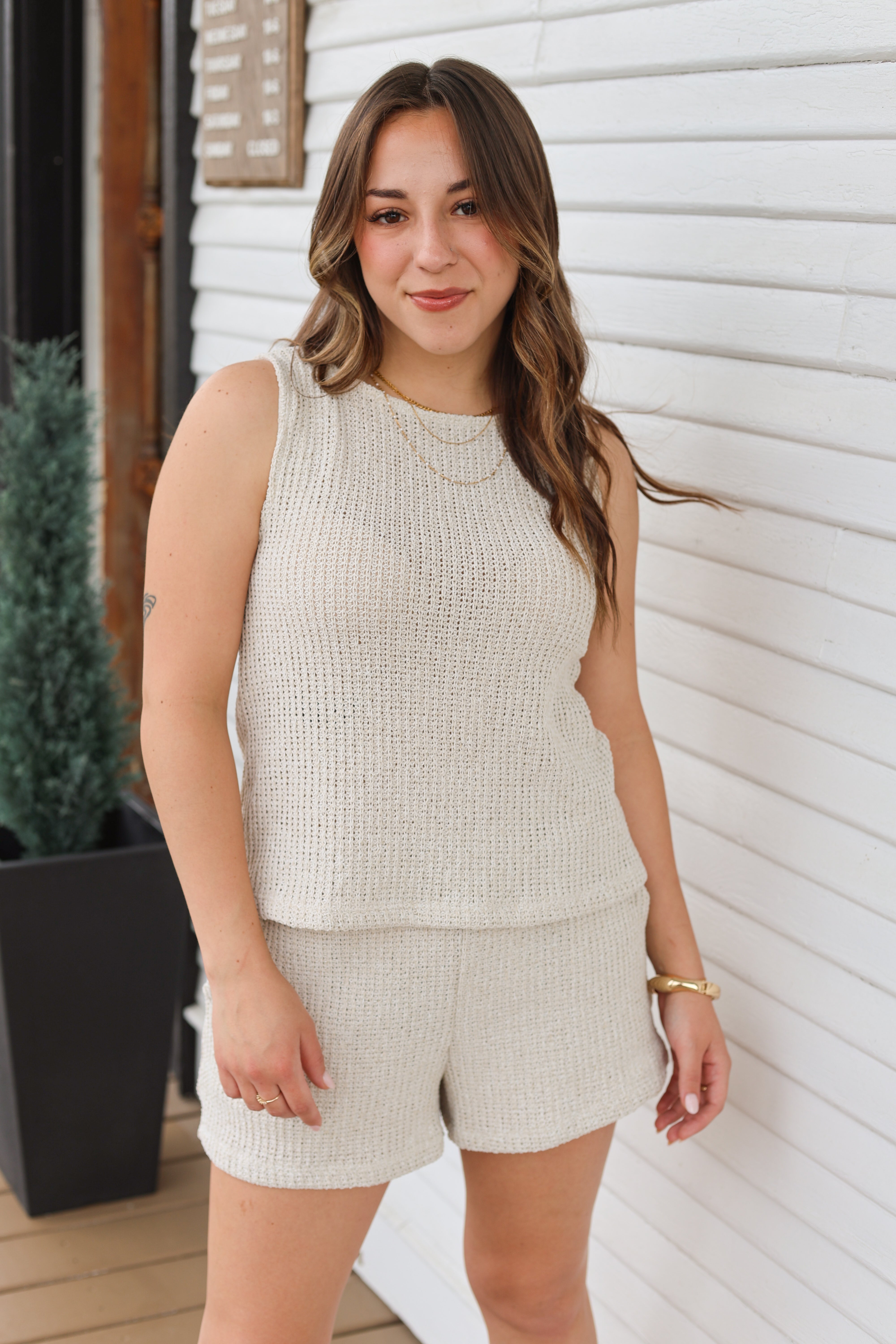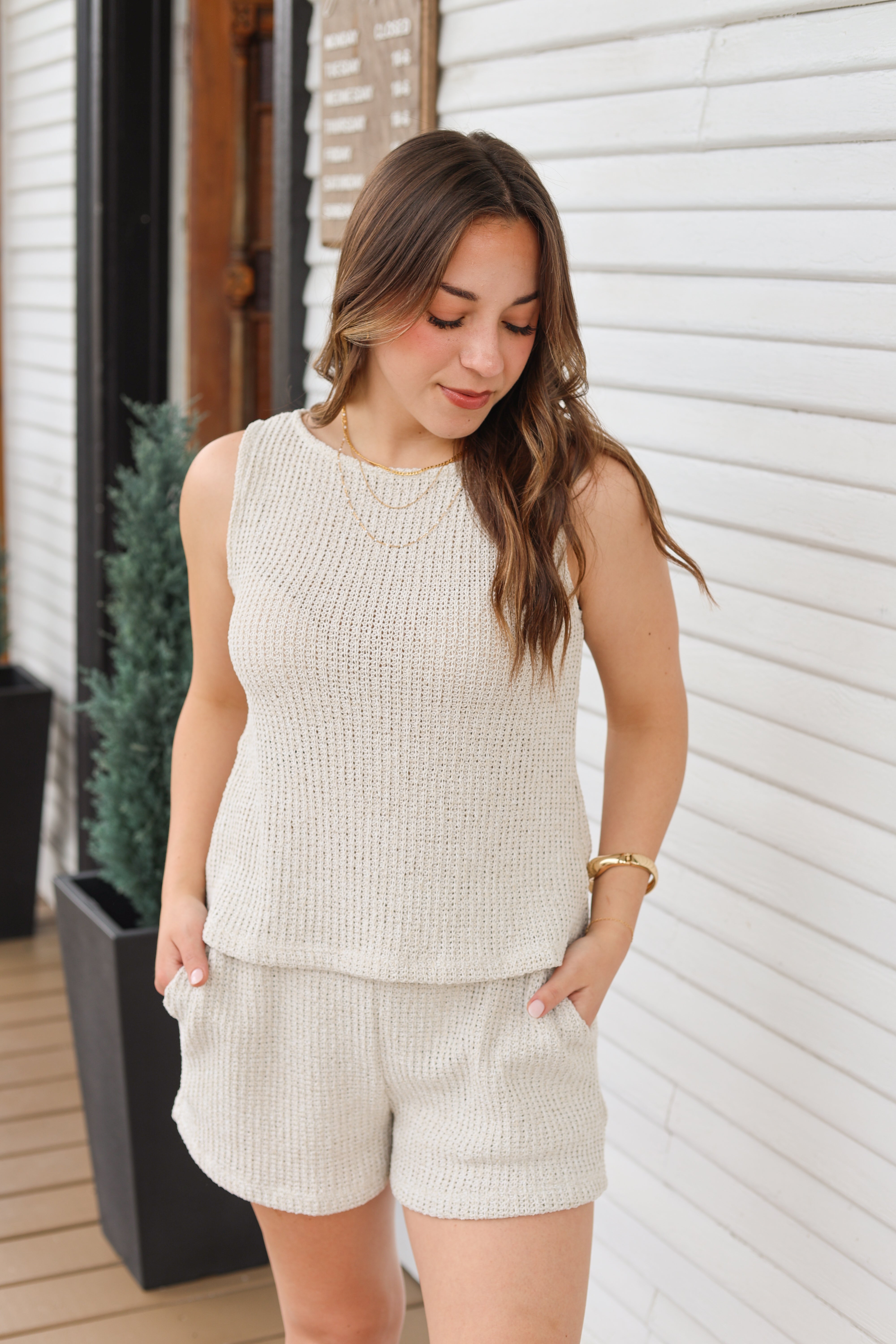 Waffle Knit Sleeveless Set