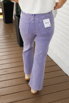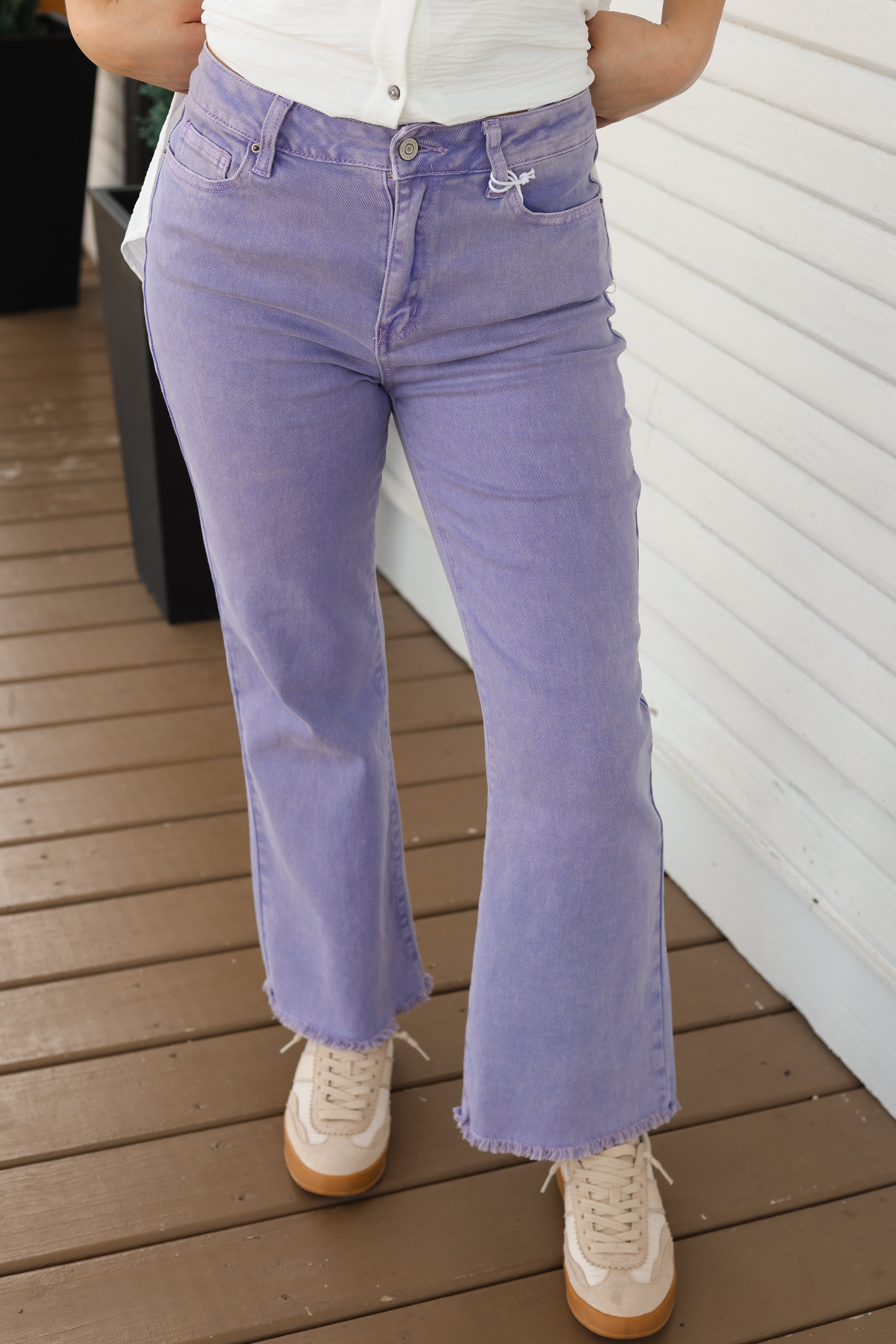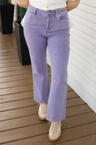 ACID WASHED HIGH WAIST FRAYED HEM BOOTCUT PANTS - GOOD STRETCH *Each item is unique, expect variations in color and finishing FRONT RISE: 10.75", INSEAM: 27" approx. LEG OPENING: 19.5" approx.