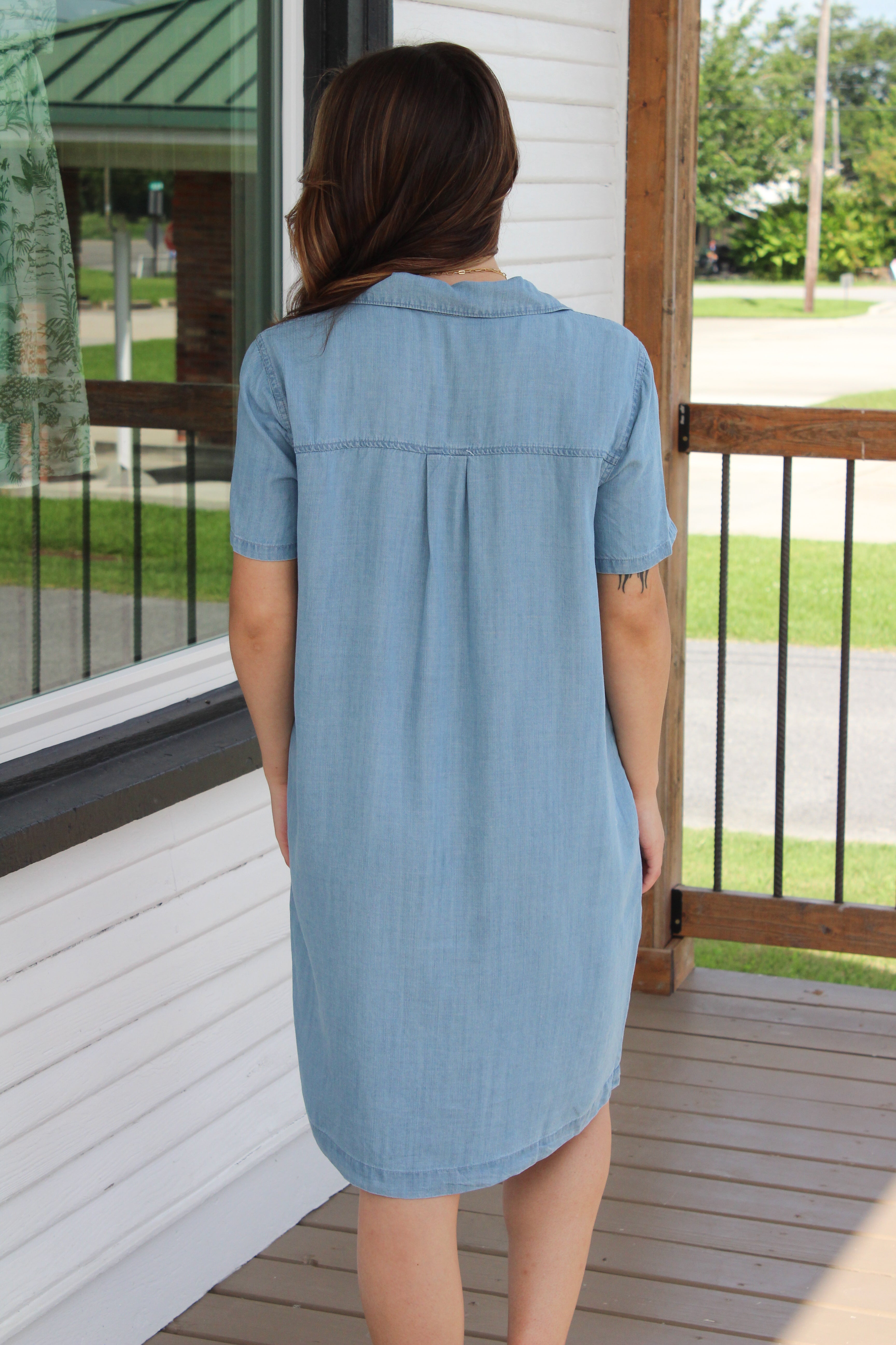 The Kaye Tencel Dress combines the classic appeal of denim with the soft, breathable feel of Tencel fabric. Featuring a button-up front, a neat collar, and handy pockets, this knee-length dress is perfect for both workdays and casual outings. Its versatile design makes it an easy go-to for everyday wear, blending comfort and style effortlessly.