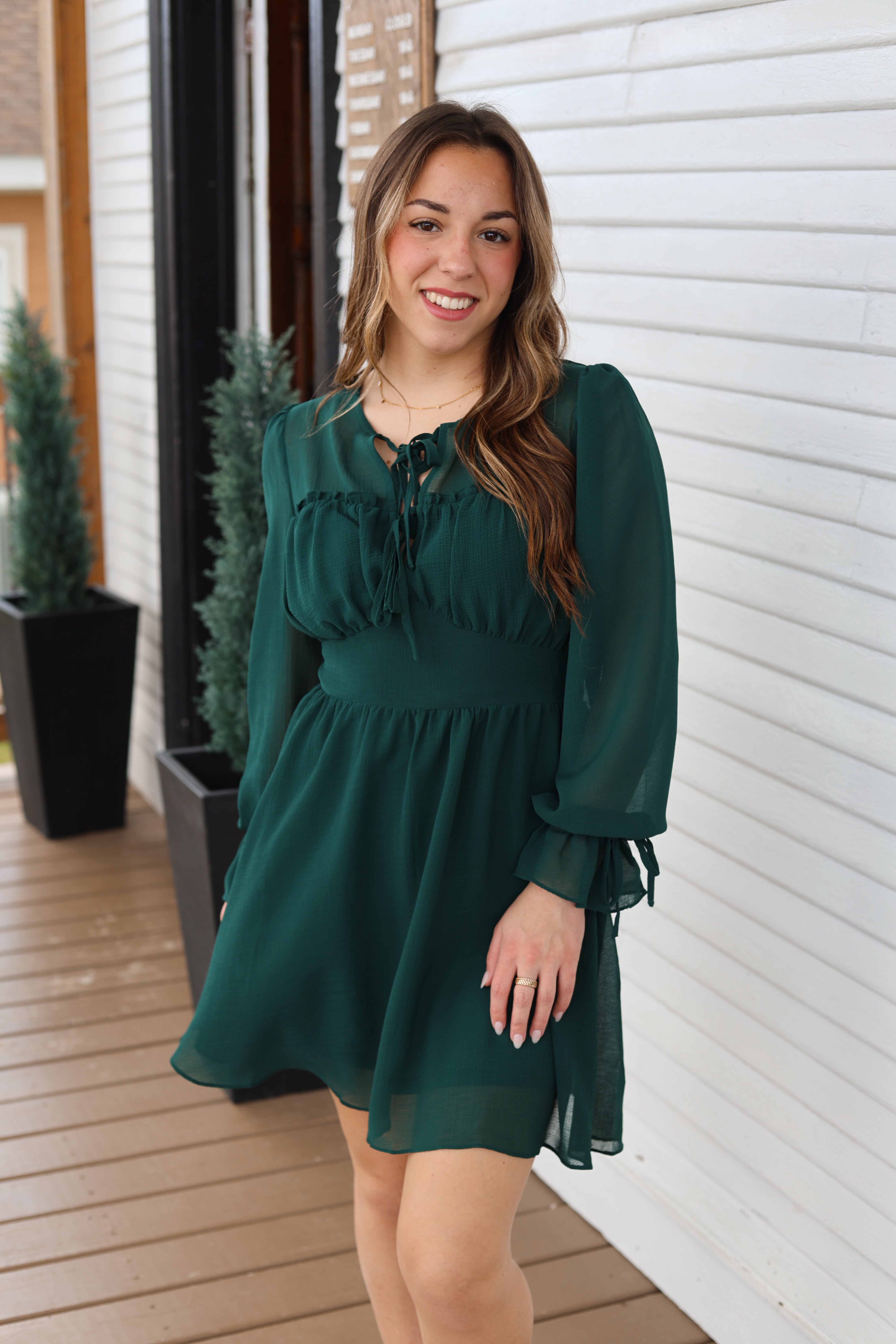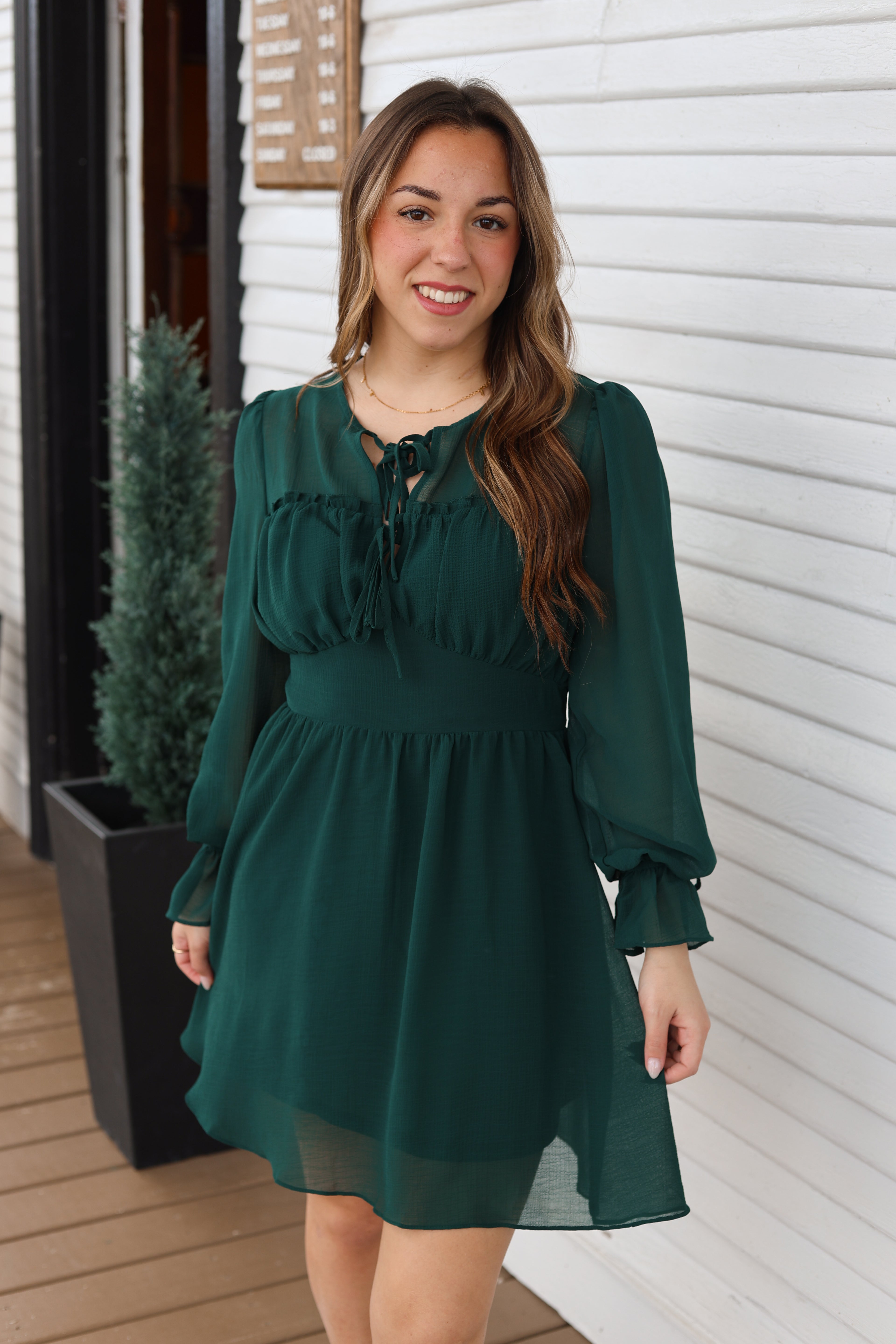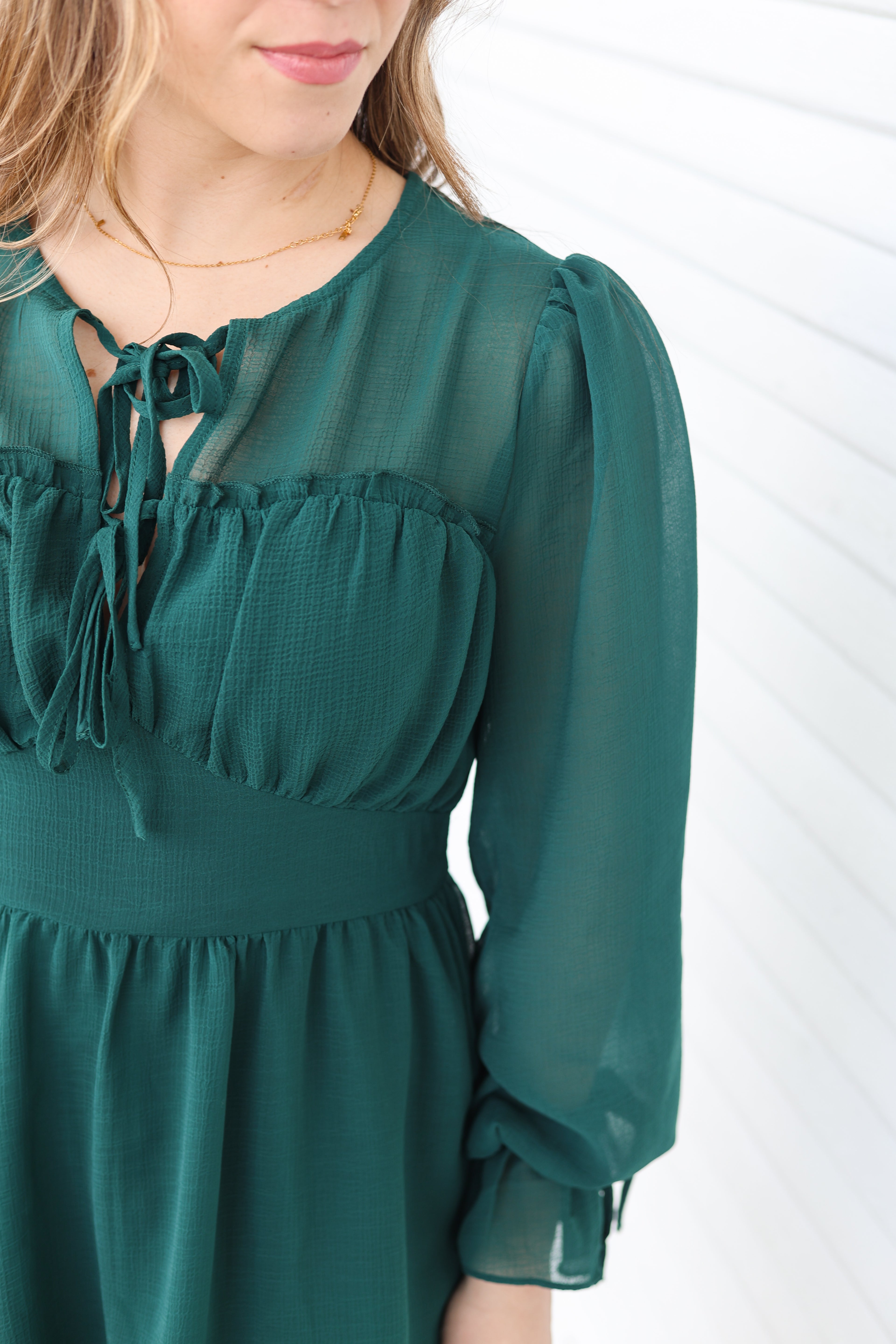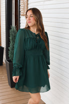 Introducing the Ollie Dress—your new go-to for effortless elegance with a playful twist. This stunning forest green midi dress features a flattering silhouette that hits just right, paired with long sleeves for versatile year-round styling. Delicate feminine details throughout add charm and personality, whether you're dressing up for a special occasion or elevating your everyday look. The rich, sophisticated green hue works beautifully with everything in your closet, making this dress a wardrobe essential that feels both timeless and fun. Slip it on and let your style do the talking.