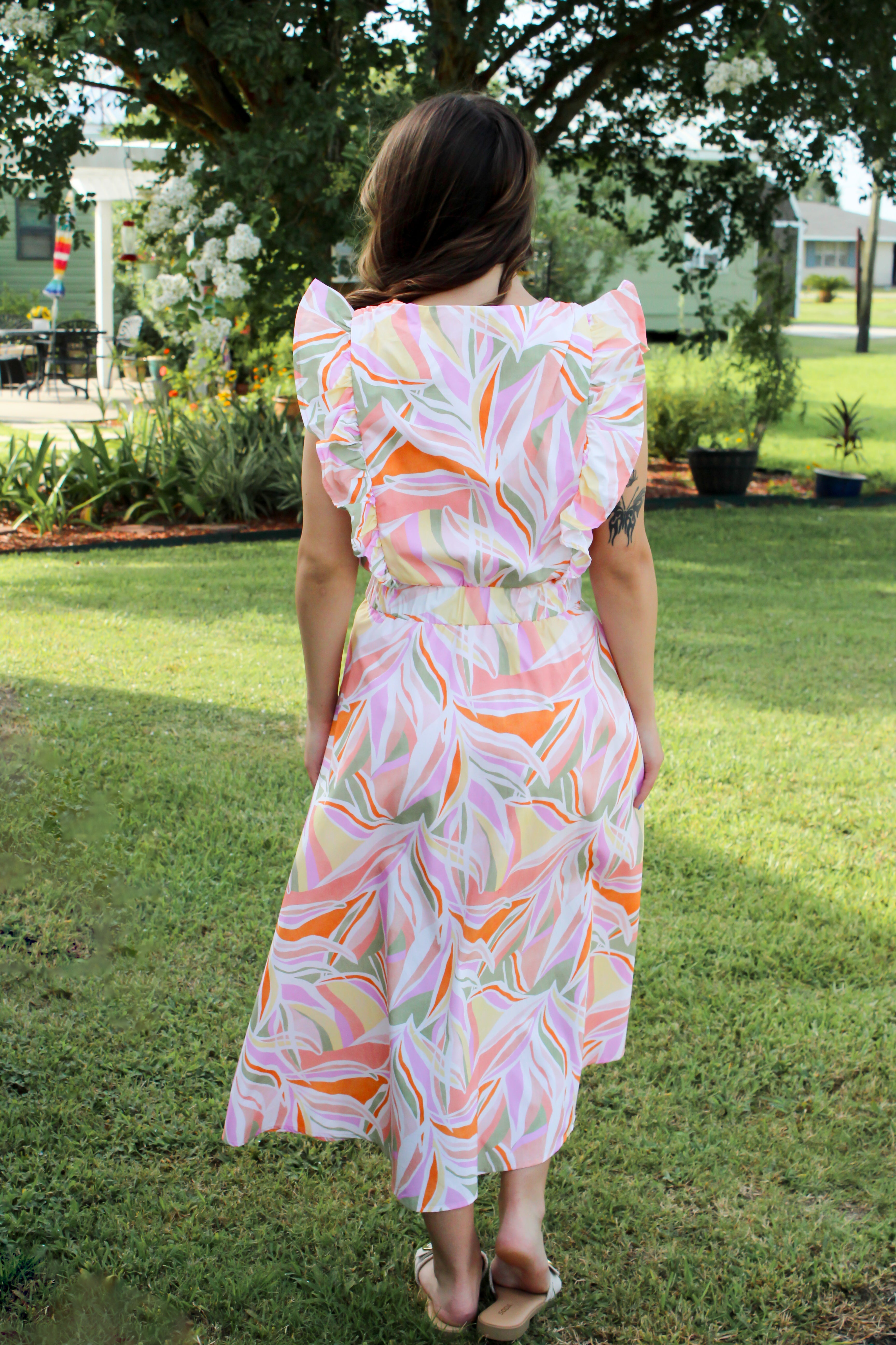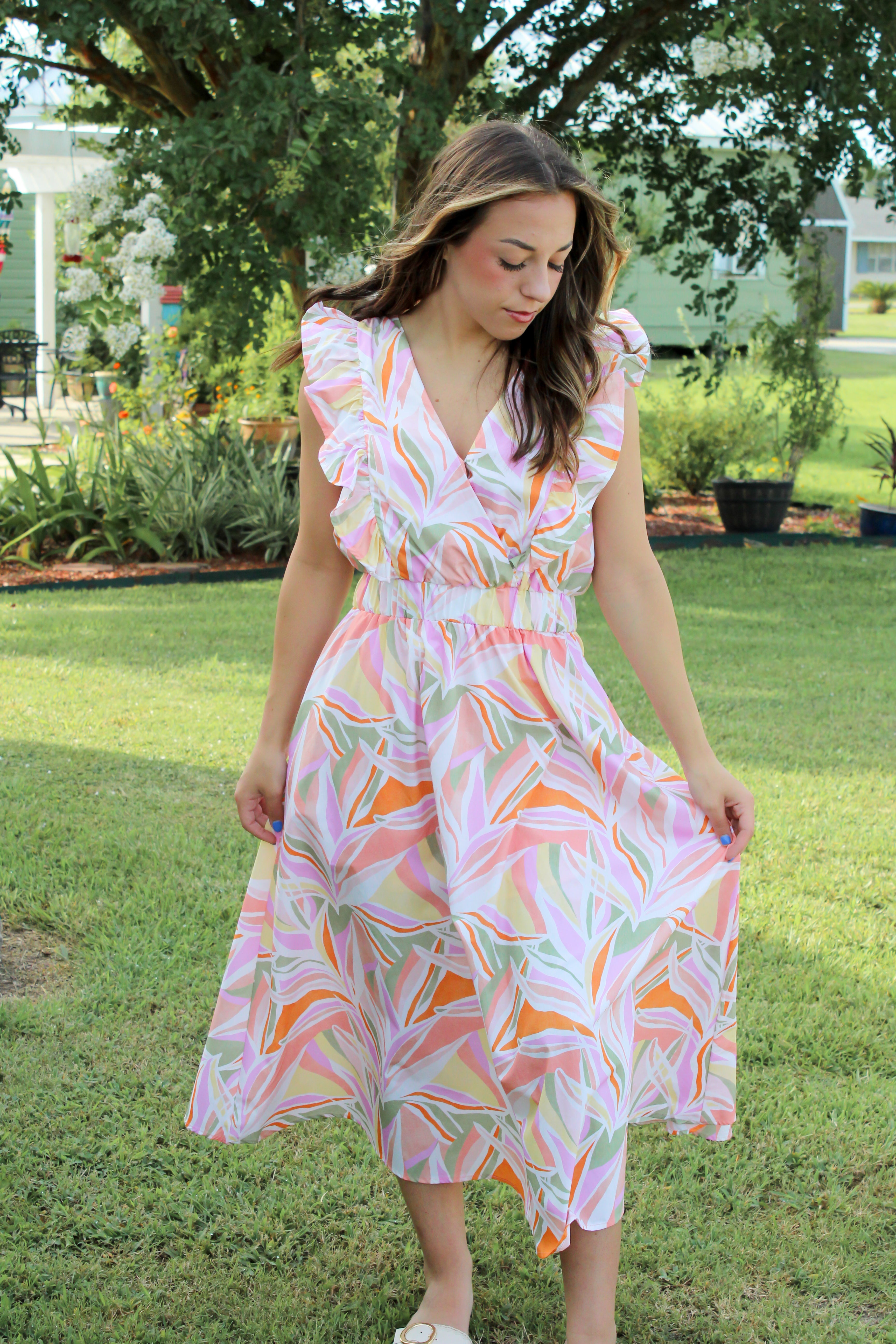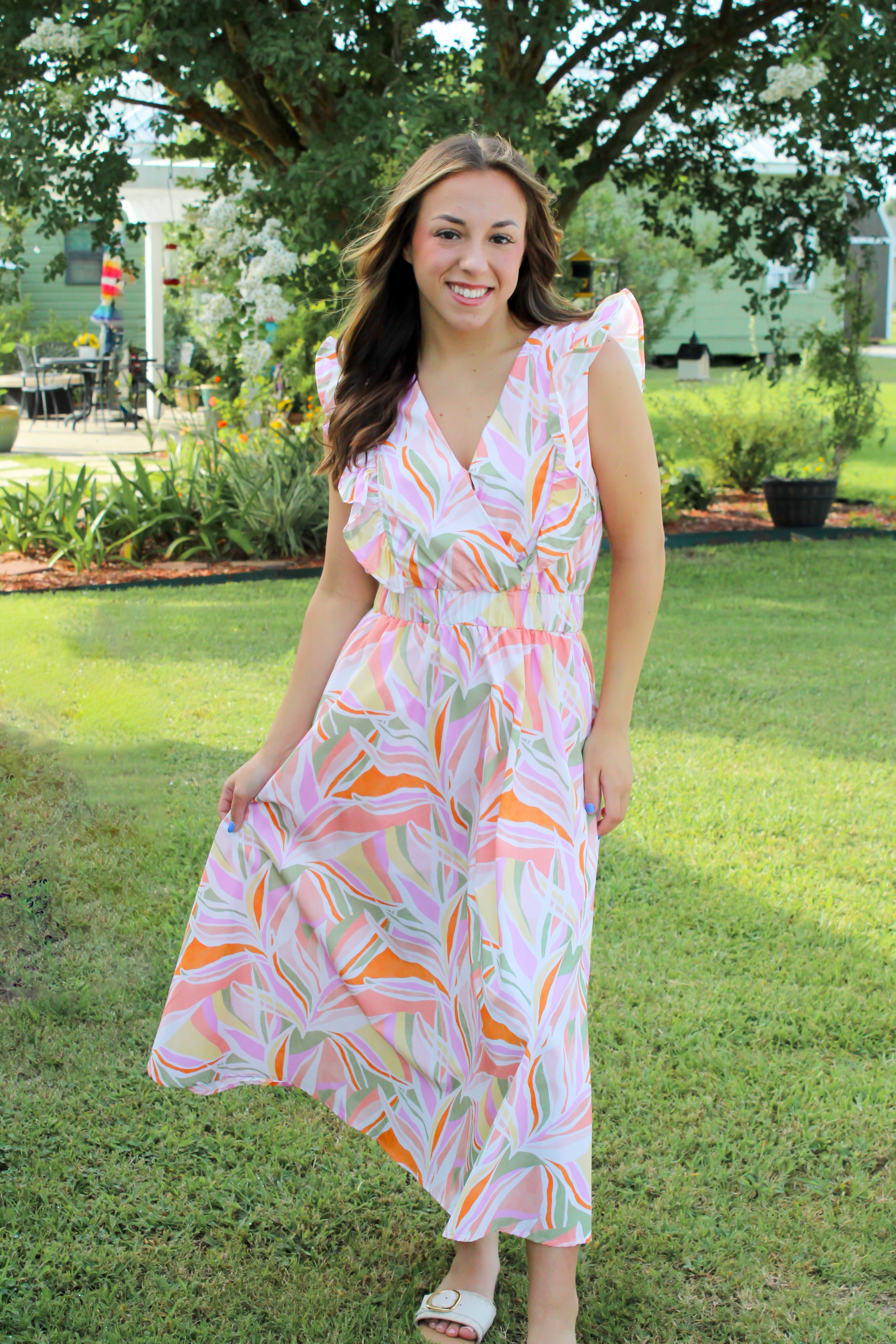 Embrace summer vibes with the Tropics Midi Dress, featuring a vibrant tropical print that brings color to any sunny day. Its sleeveless design and flare detail around the armholes offer a breezy, comfortable fit, while the thick elastic waistband ensures a flattering silhouette. Perfect for casual outings or beachside strolls, this dress combines style and ease for your warm-weather wardrobe.