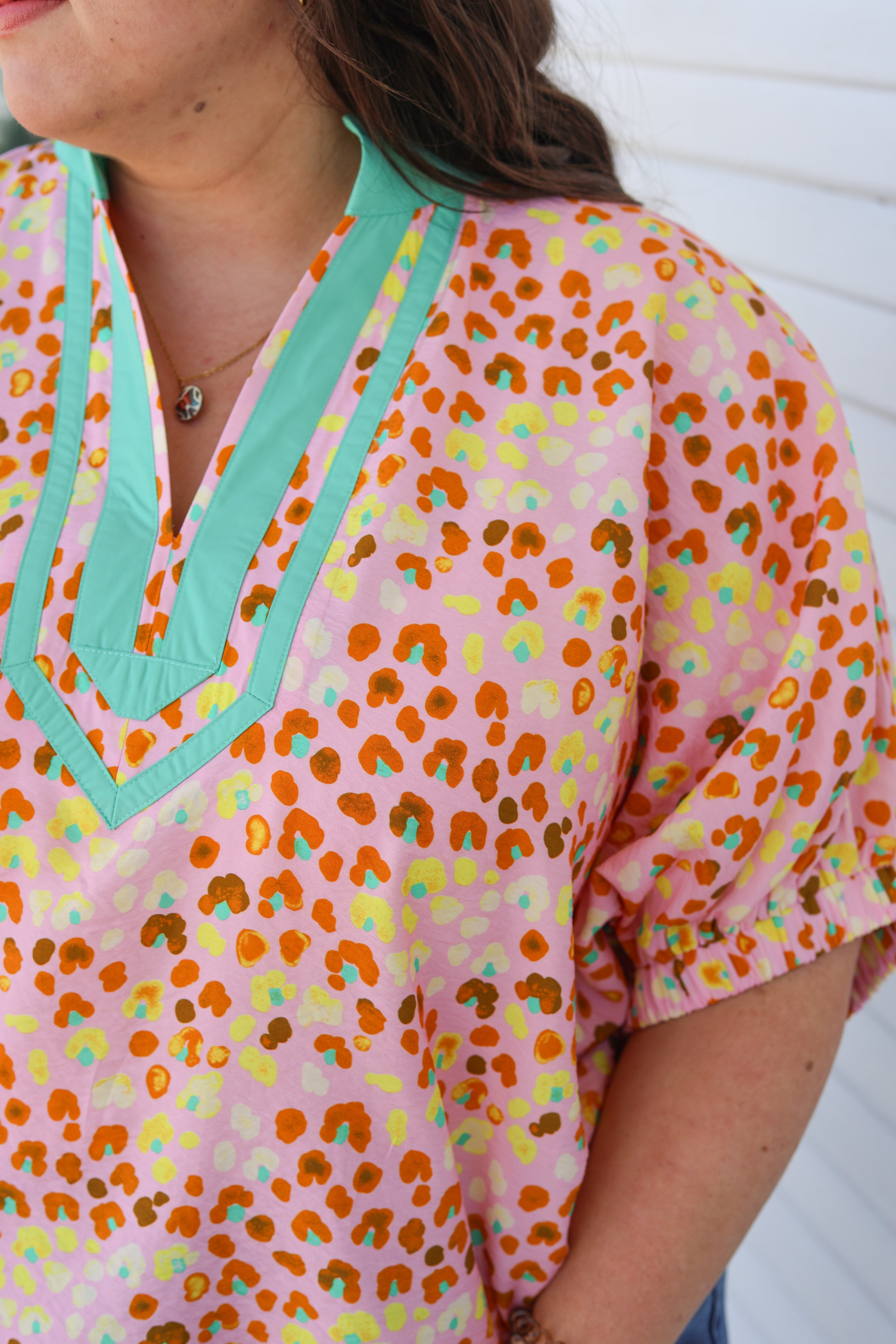 Effortless style meets playful charm in the Alice Plus Top. This relaxed dolman silhouette features short sleeves and a flattering notch neckline trimmed with contrasting binding for visual interest. The abstract Spring print brings vibrant, fun energy to your wardrobe. Comfortable and versatile, it's an easy go-to piece for casual days ahead.