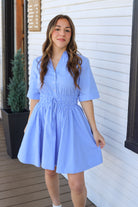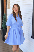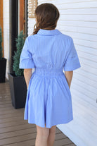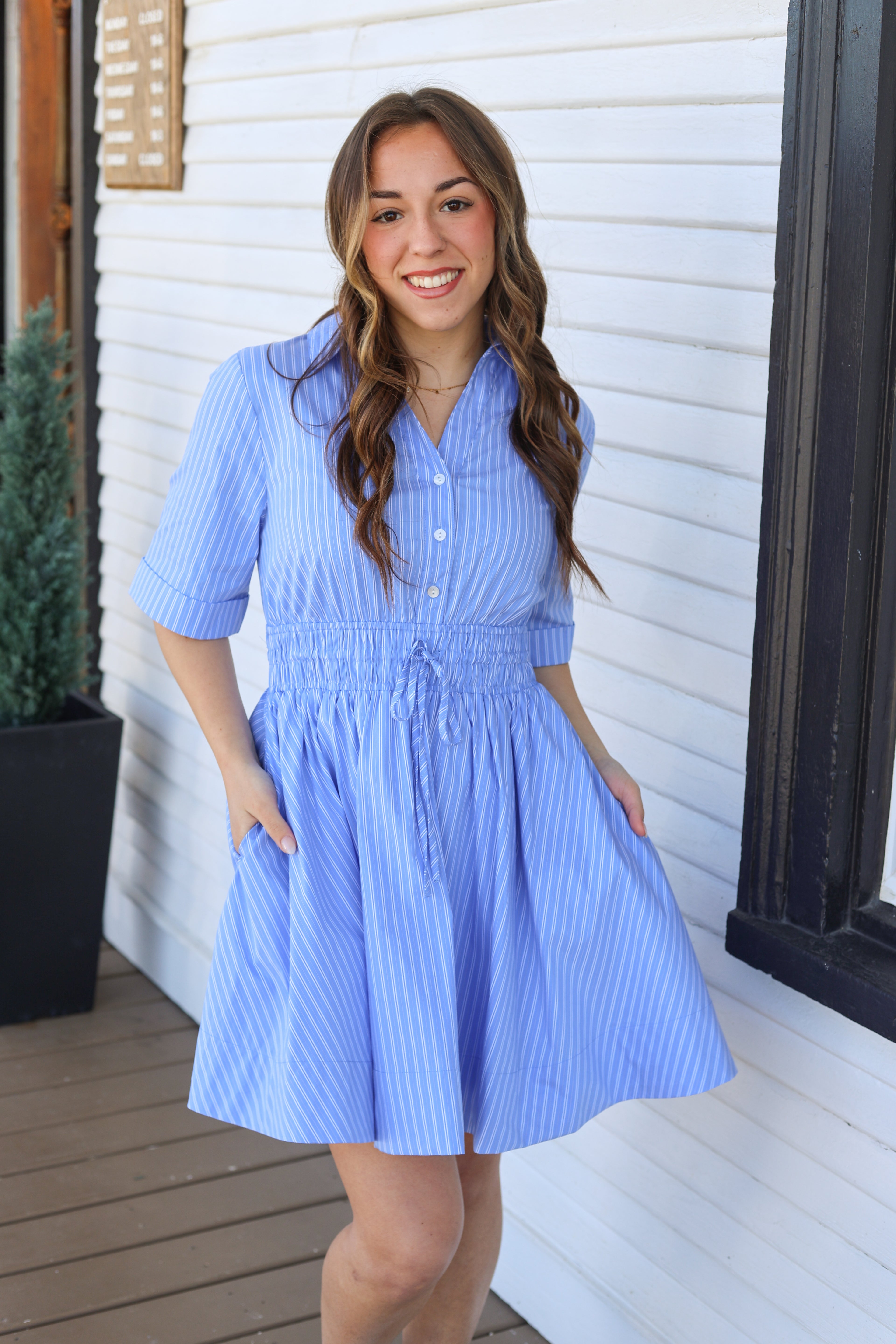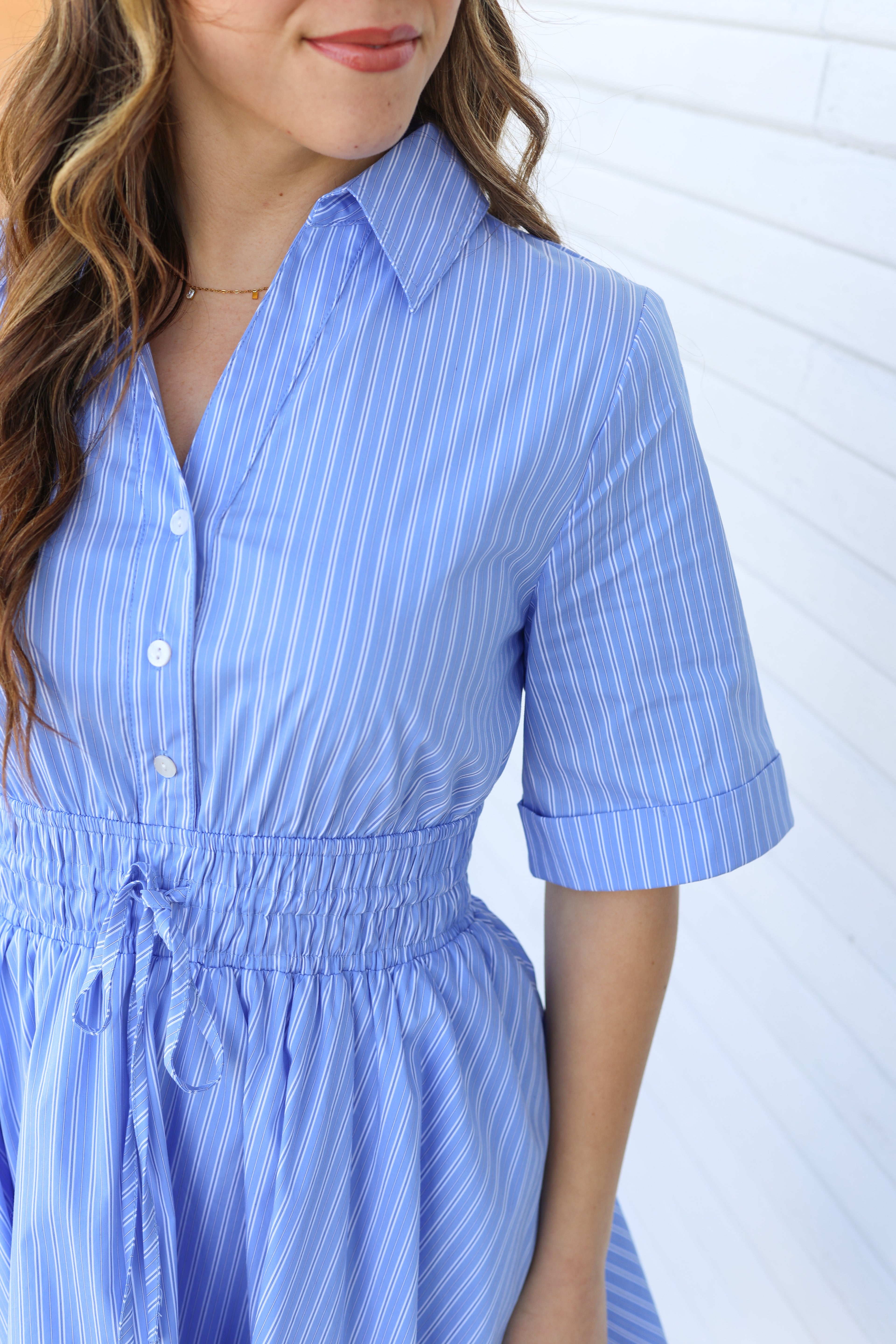 This striped short sleeve mini shirt dress combines comfort and style with its elasticated waist and drawstring detail. Featuring a button closure and handy side pockets, it’s perfect for casual outings. Plus, the lightweight, non-sheer fabric ensures you stay cool and confident all day.
