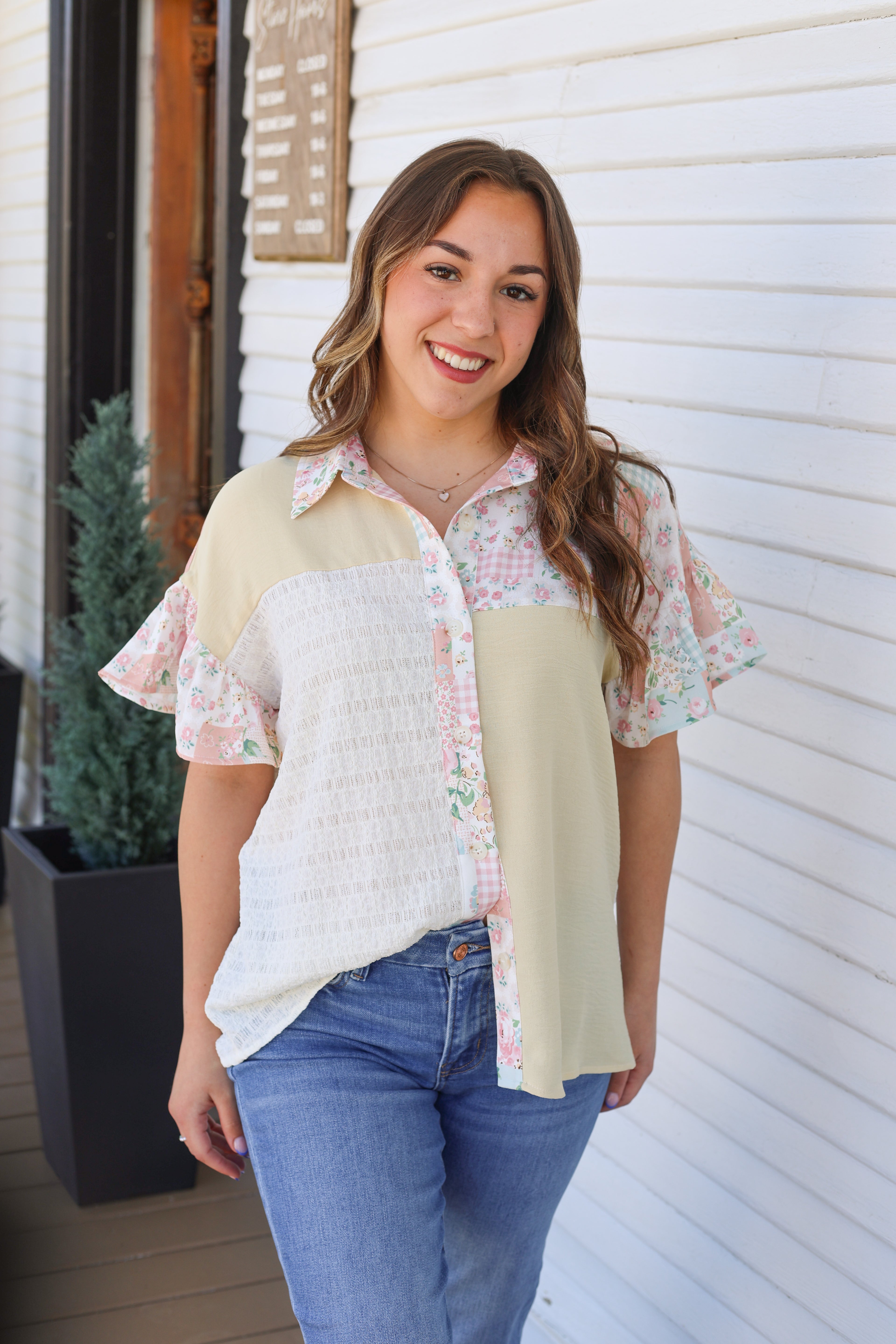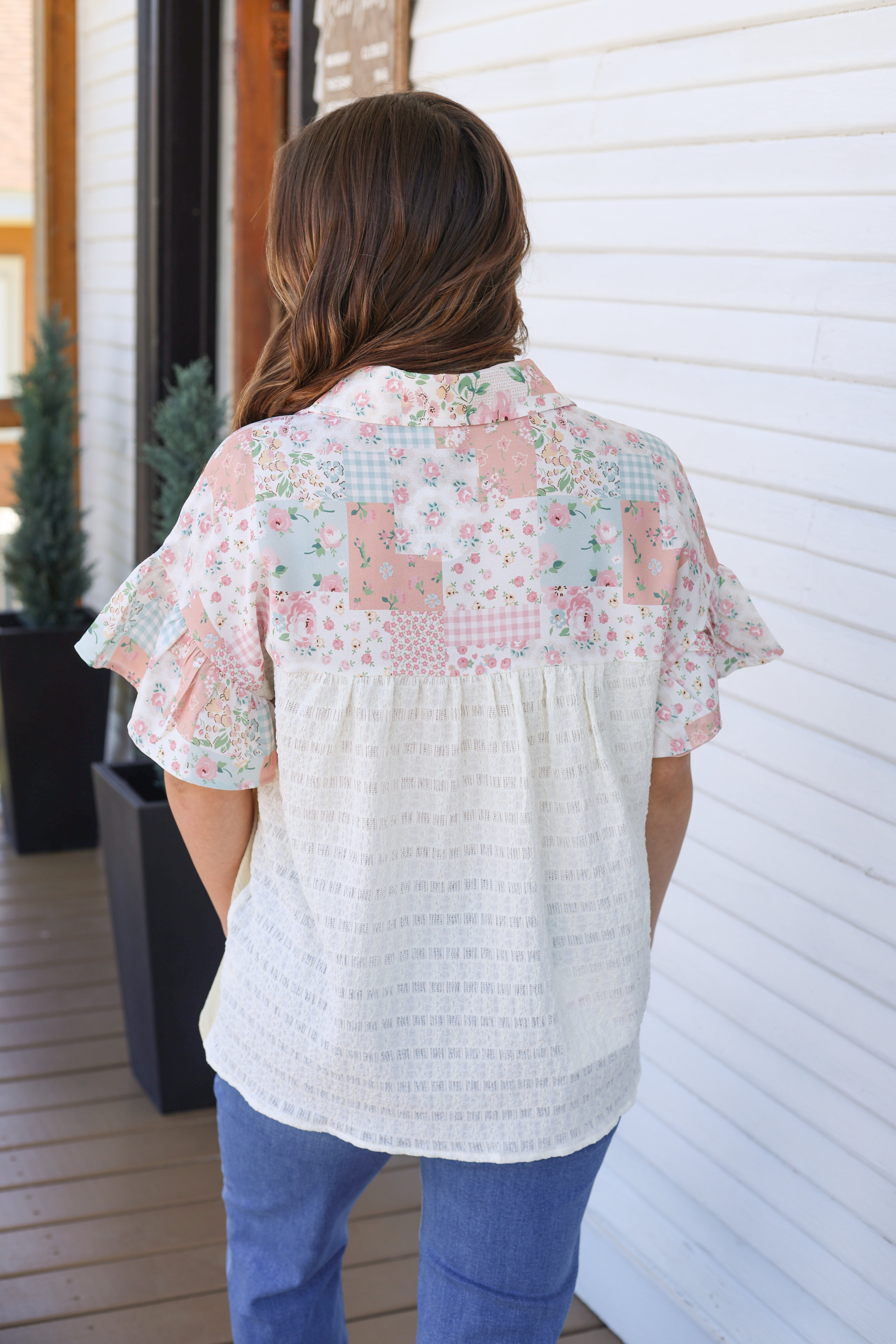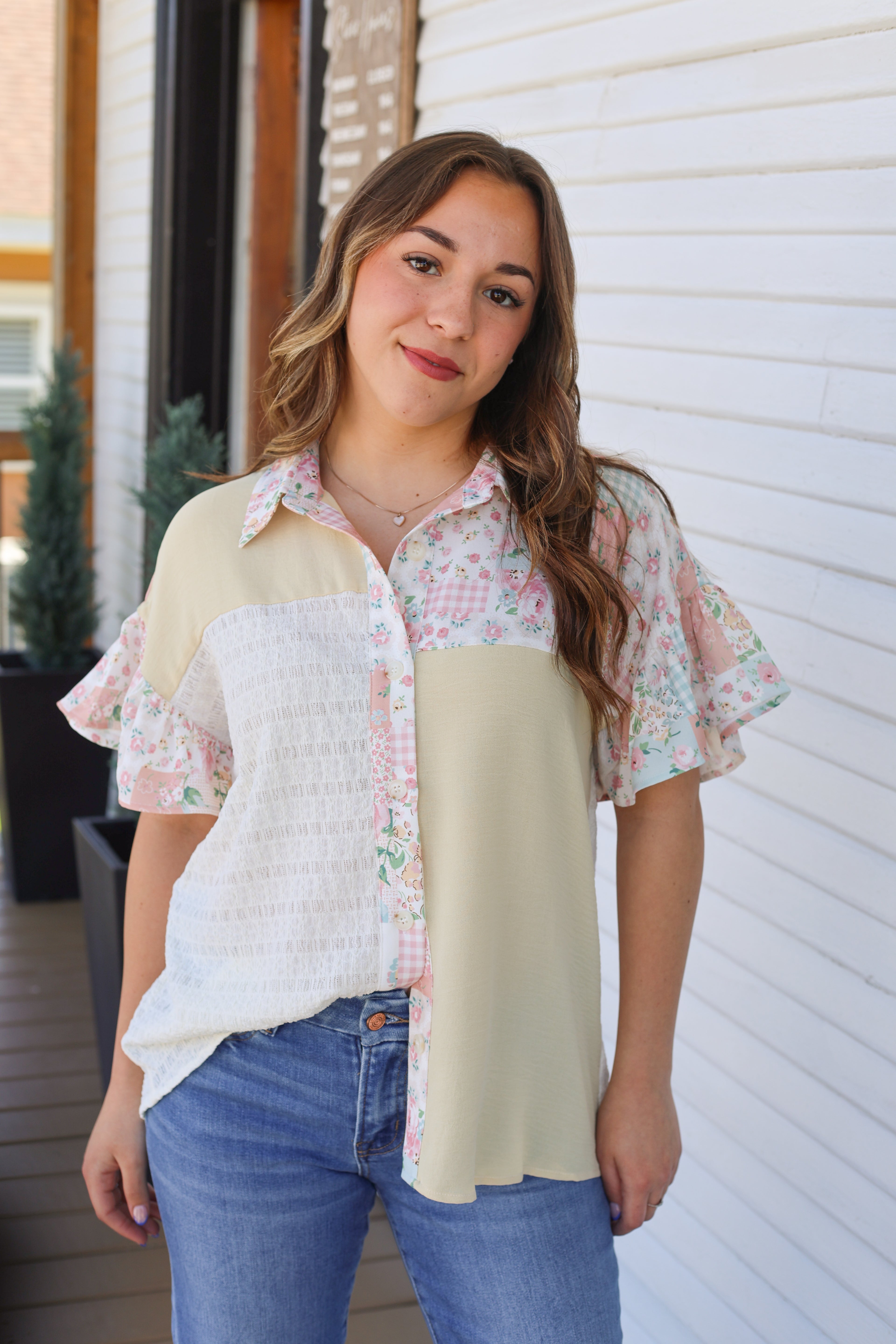 Floral & Texture Button Down Top