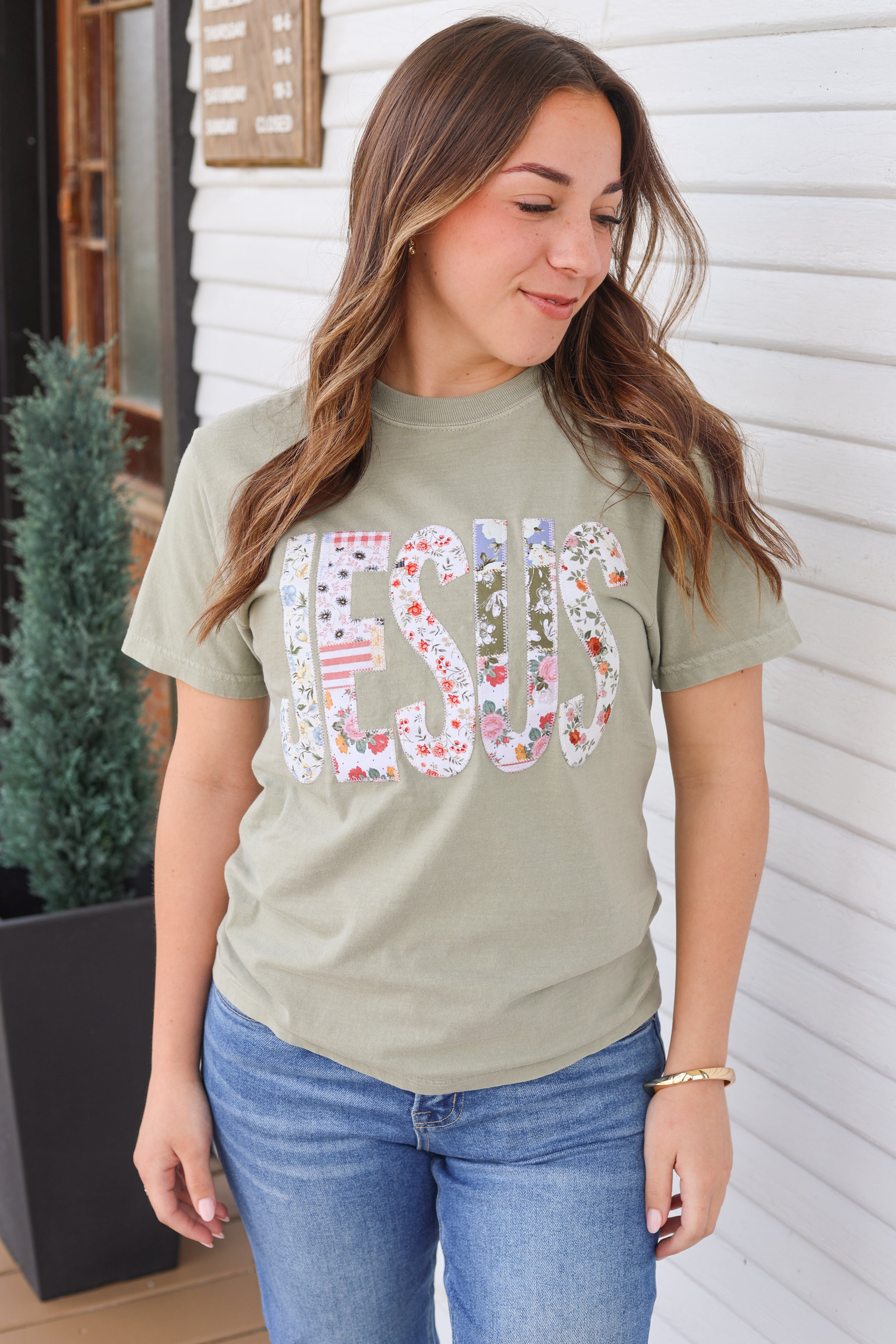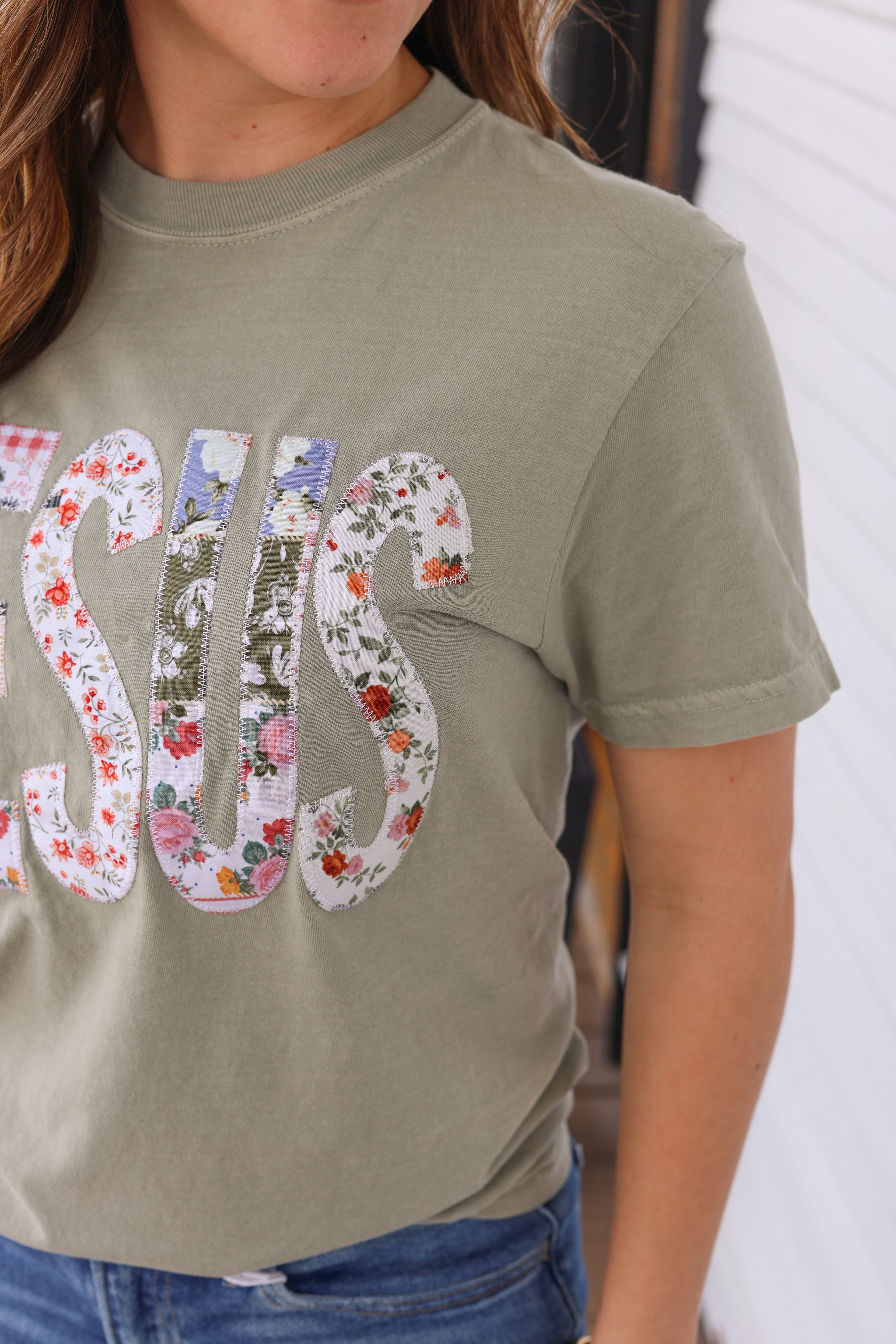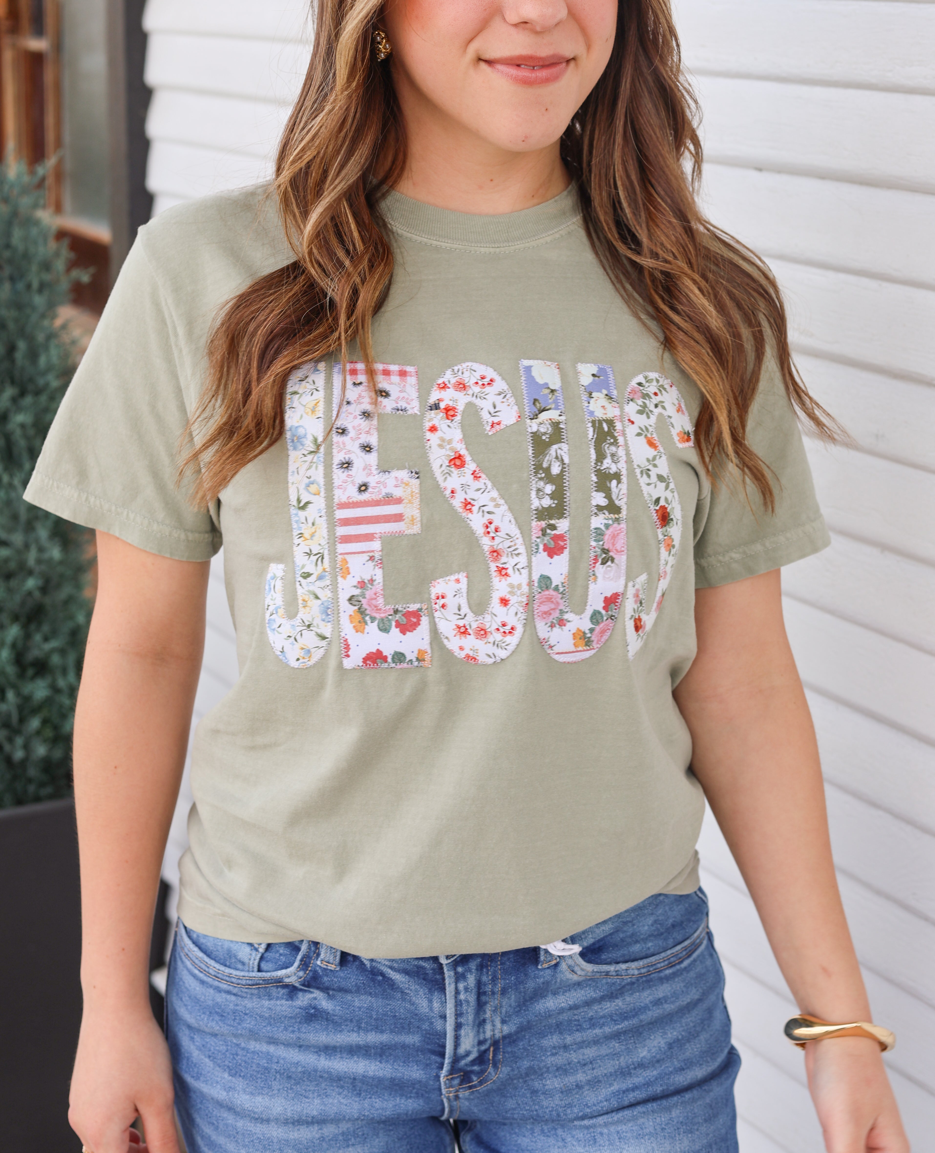 "JESUS" Graphic Tee, embroidered patch letters, Easter t-shirt, Christian tees