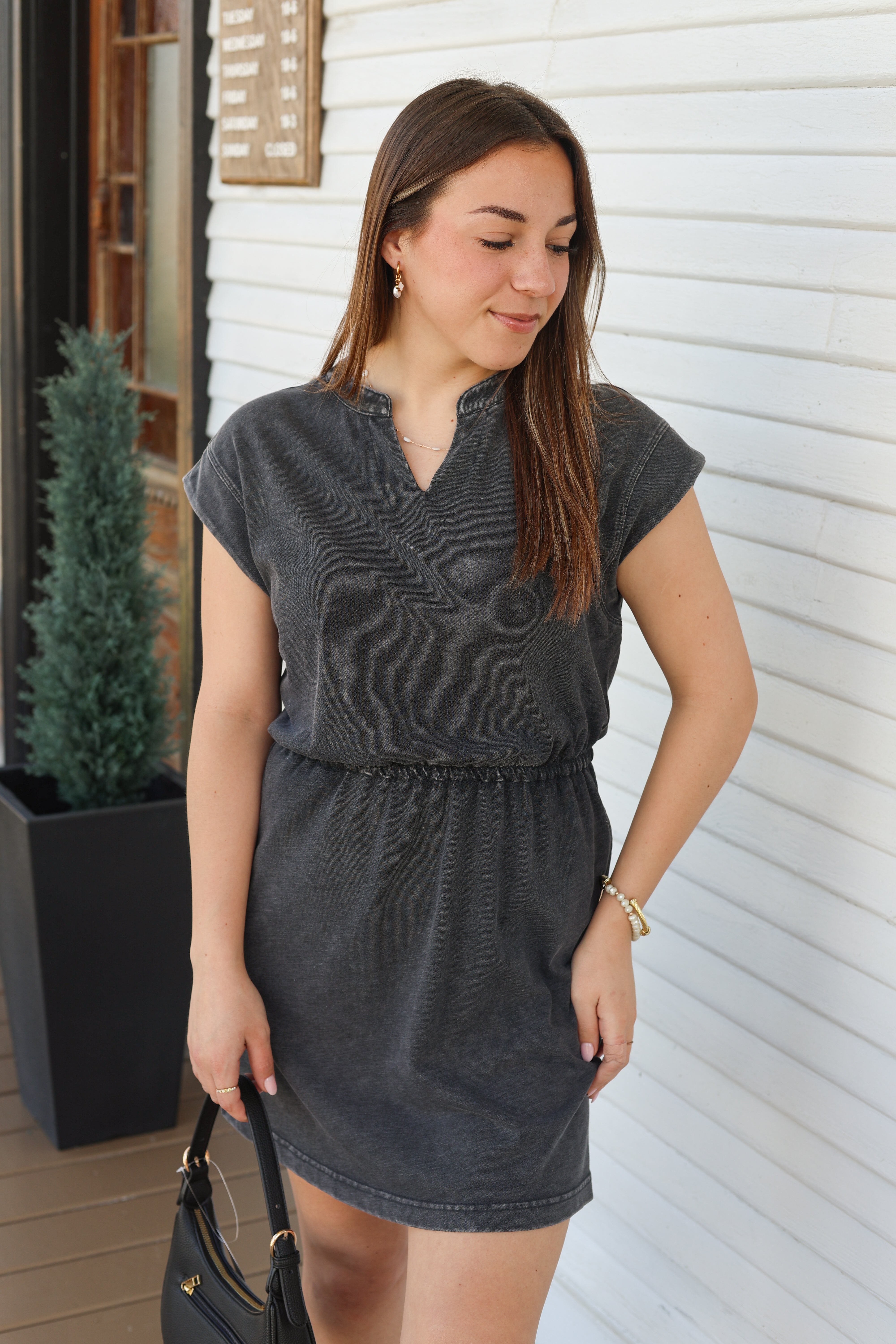 Effortlessly chic and comfortable, this mineral washed cotton sleeveless mini dress is perfect for warm weather styling. The soft, breathable fabric features a subtle vintage wash that adds character and depth to your wardrobe. With a relaxed fit and timeless silhouette, it transitions seamlessly from casual daytime looks to evening out.