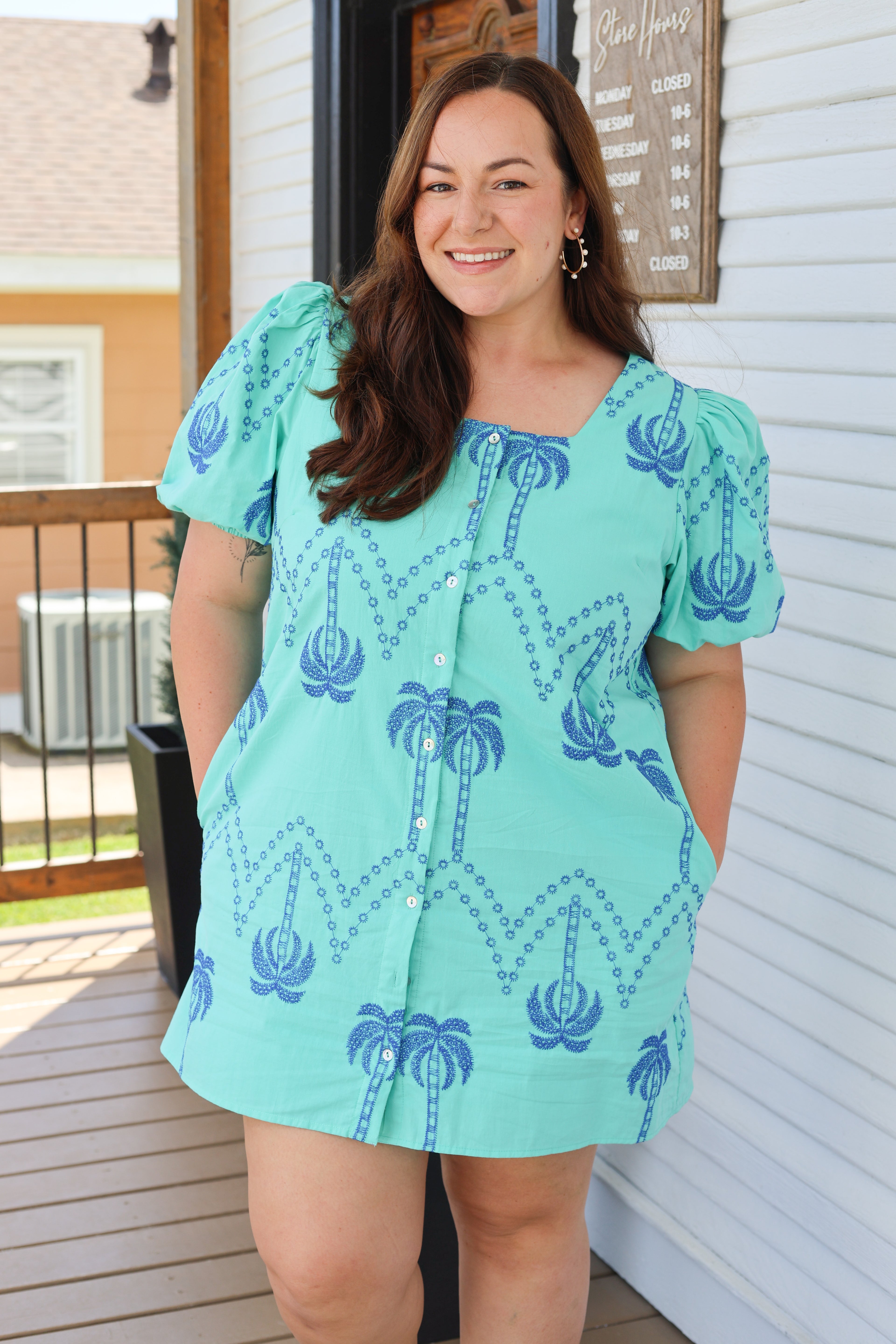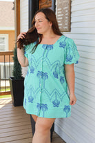 Effortless summer style meets comfort in this mint print mini dress. Designed with a flattering square neckline and playful puff sleeves, the button-down front offers easy styling versatility. The relaxed fit accommodates all sizes while keeping you cool and chic. Whether you're heading to the beach, a garden party, or a casual getaway, this dress transitions seamlessly from day to night. Perfect for warm-weather adventures and those moments when you want to feel put-together without trying too hard.