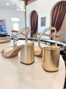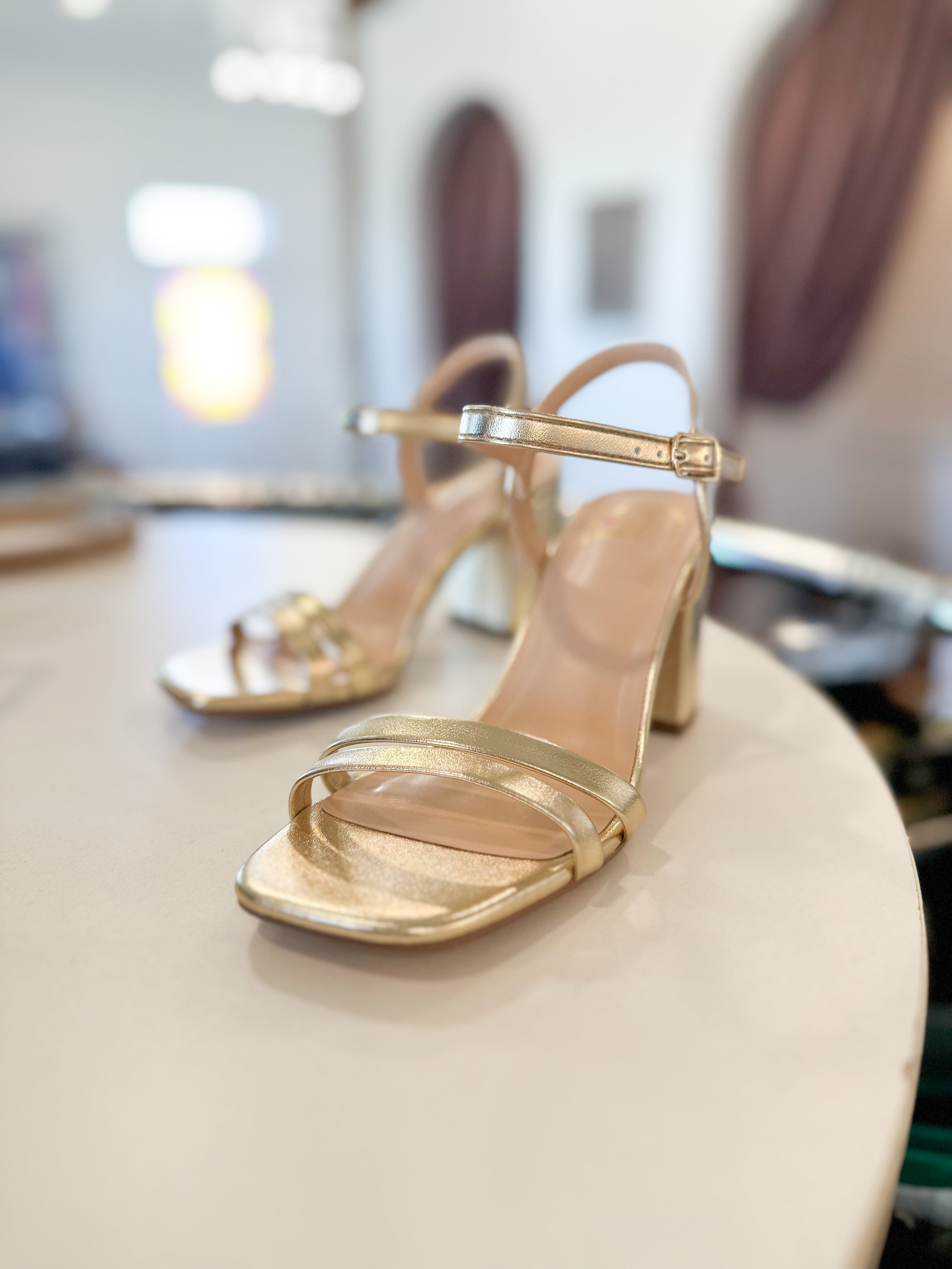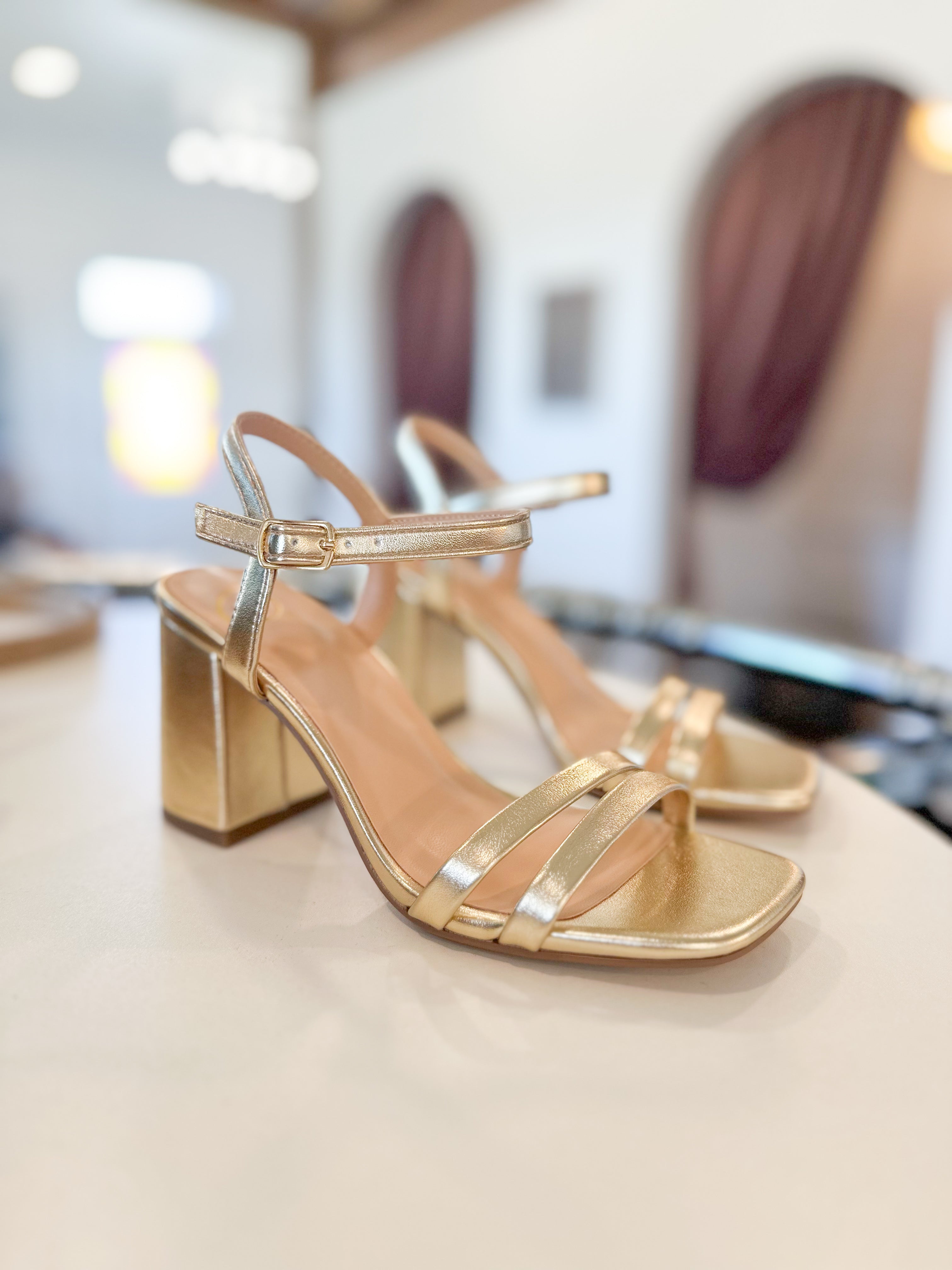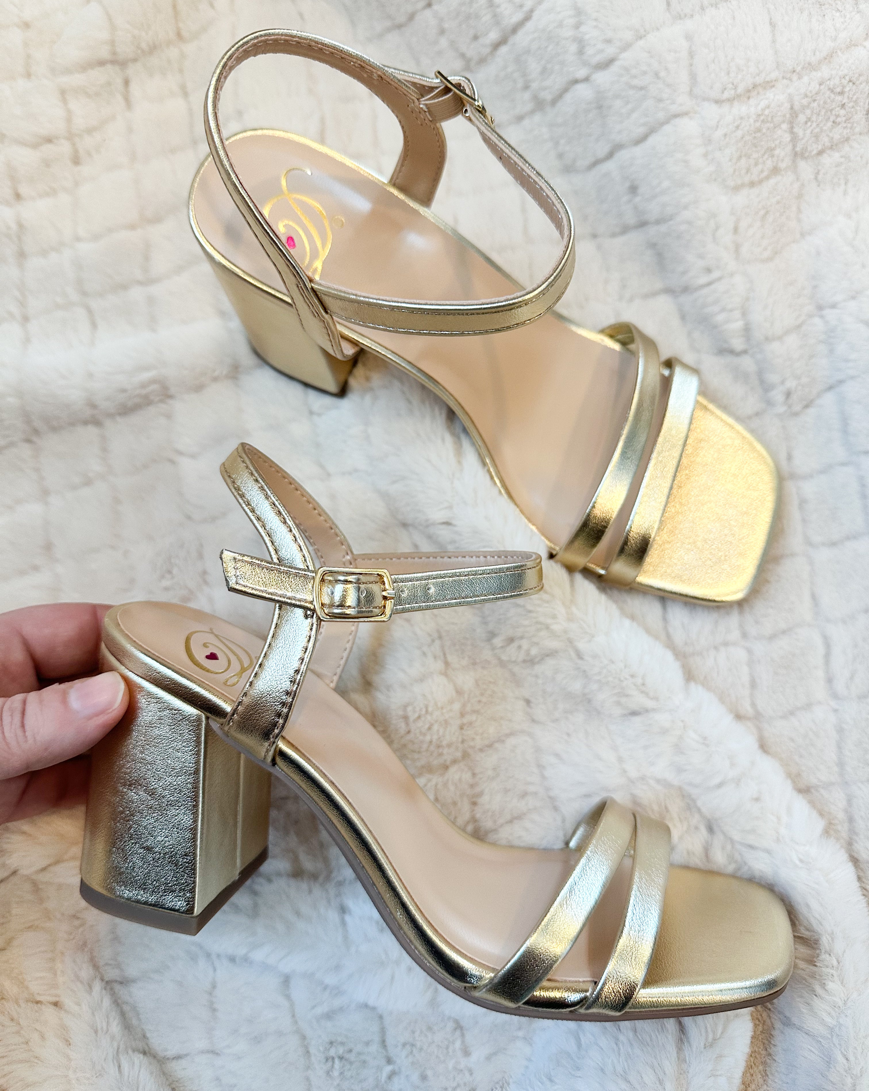 Gold double strap chunky block heel