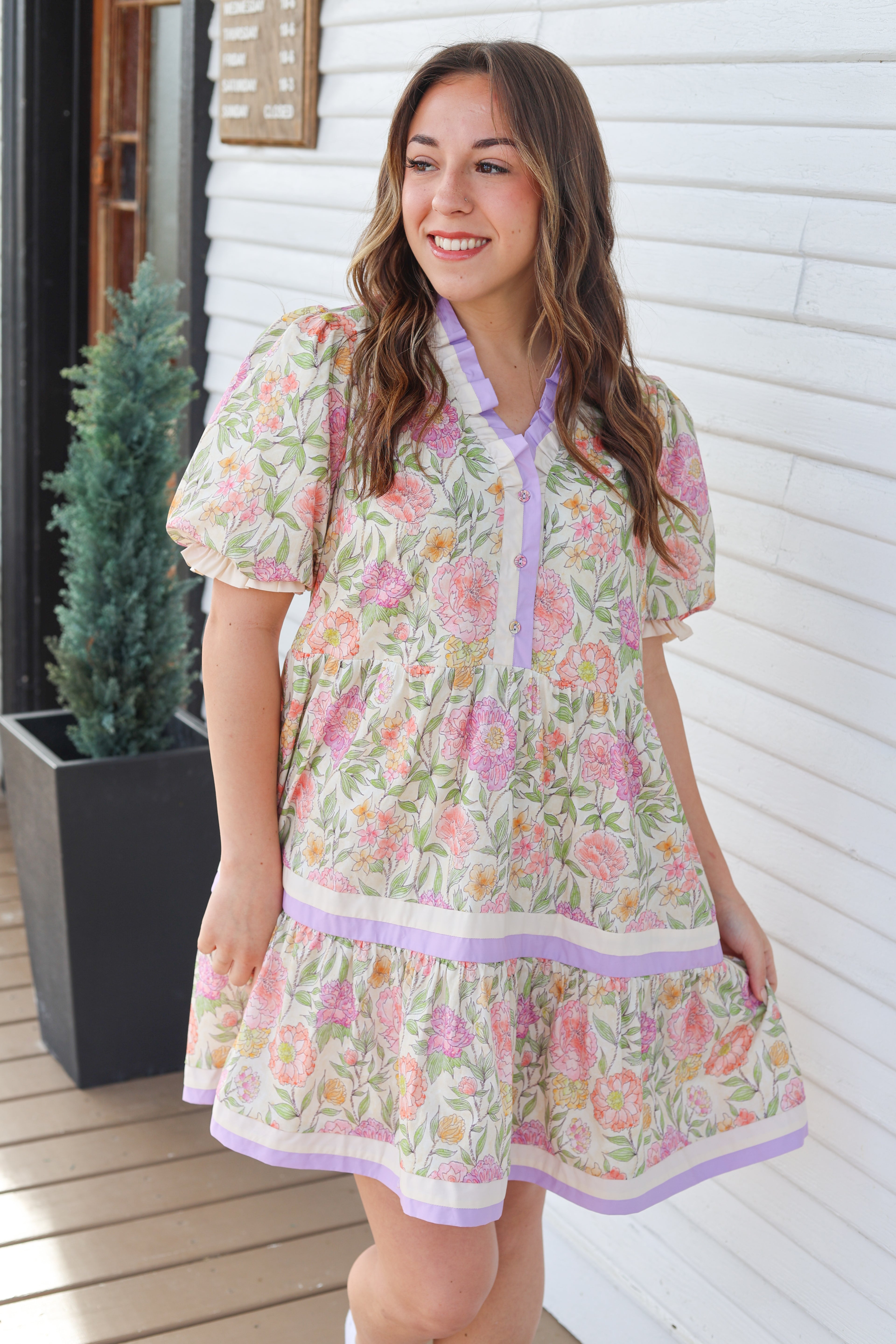Puff Sleeve Floral Tiered Dress