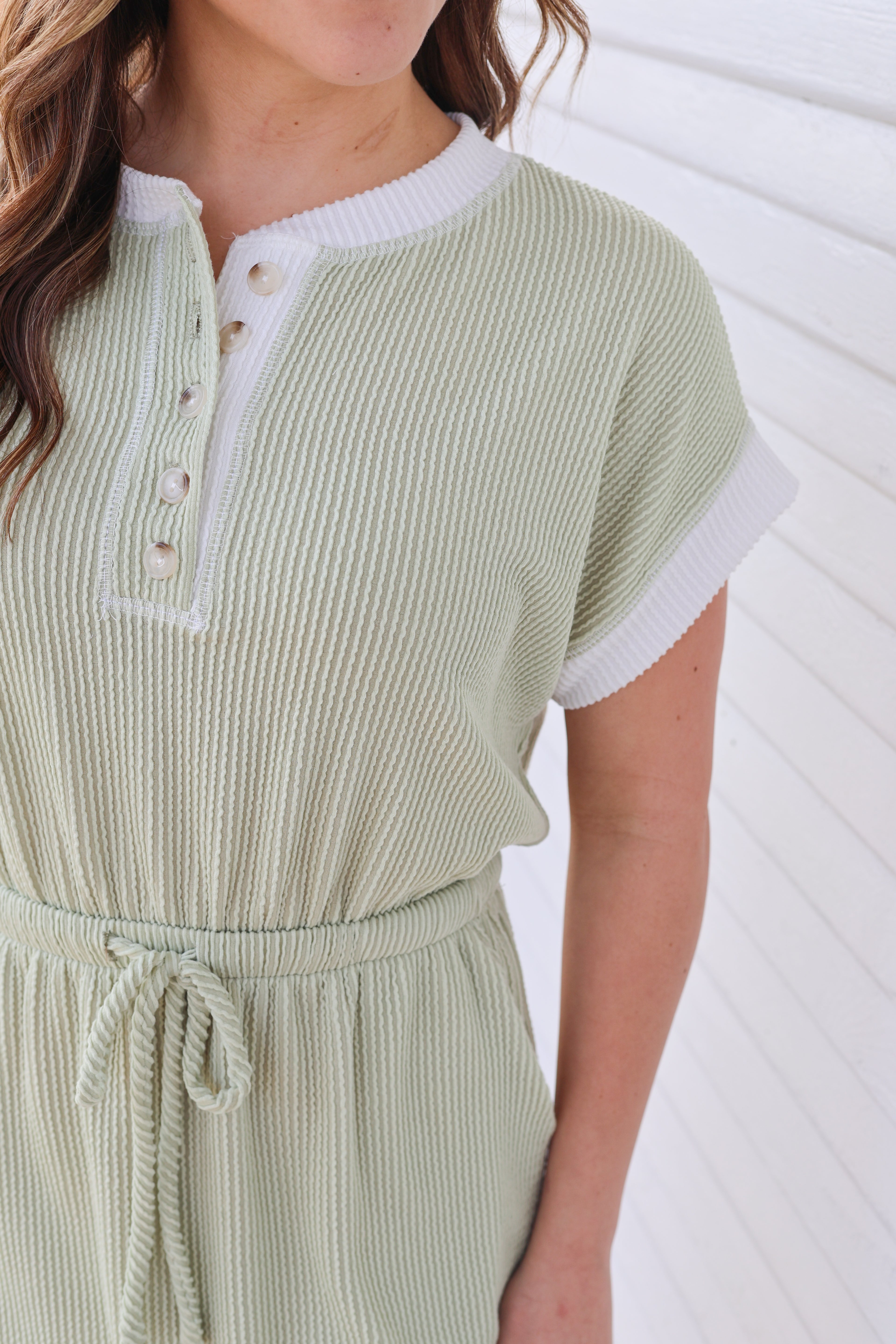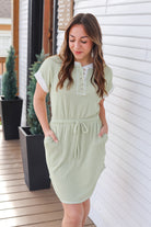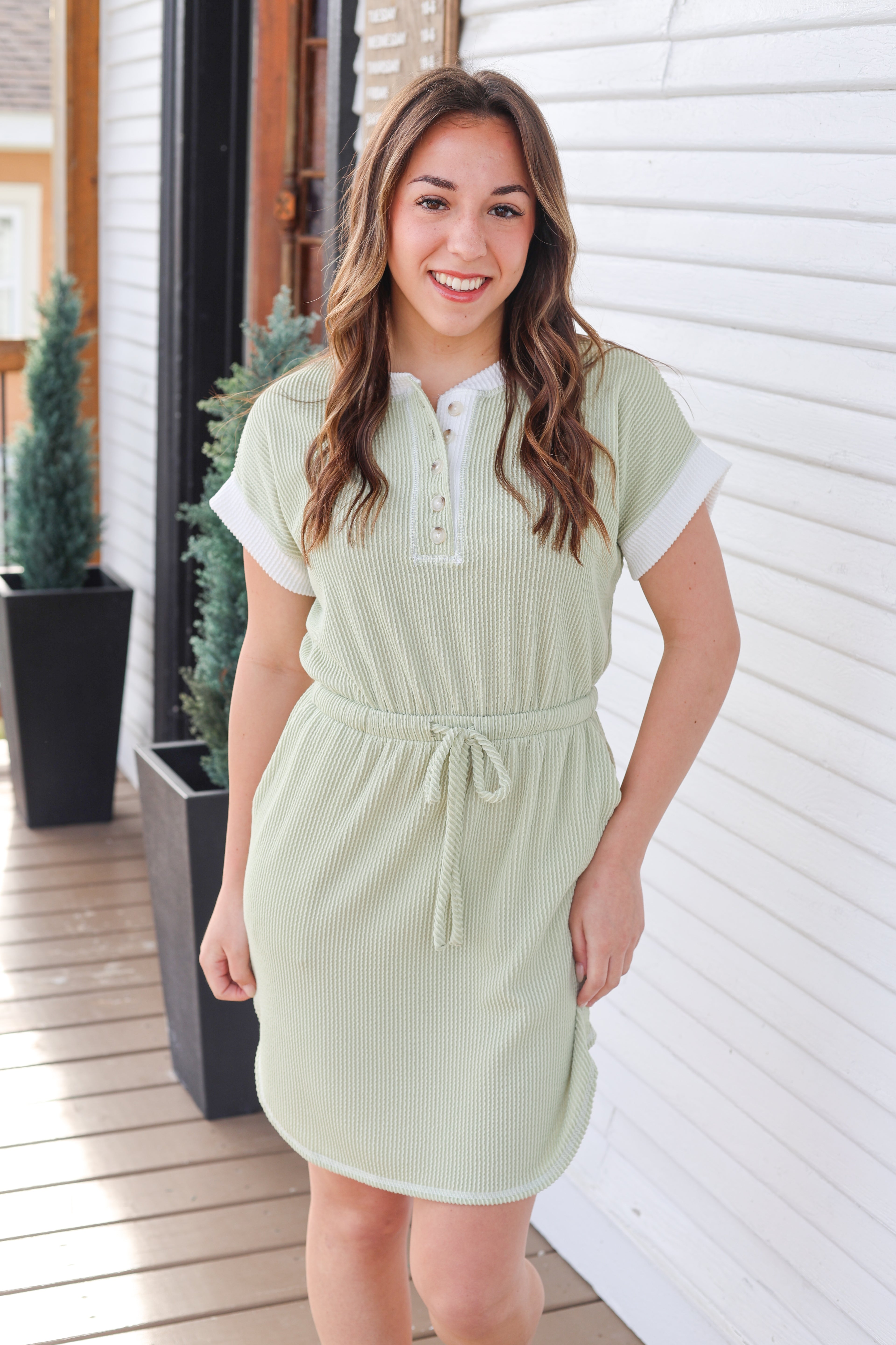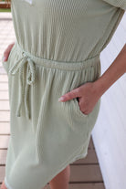 Effortless style meets comfort in this sage and white ribbed mini dress. The classic henley neckline and cap sleeves deliver a laid-back vibe, while the waist tie lets you customize your fit for a flattering silhouette. Perfect for casual days when you want to look put-together without trying too hard. Soft ribbed fabric moves with you, making it ideal for everything from coffee runs to weekend hangouts.