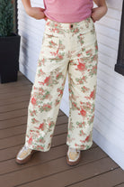 Step out in style with these cream floral print pants. Featuring a mid-rise fit and ankle-length design, they offer both comfort and a fresh look. The button zip-fly closure ensures a secure fit, while handy patch pockets add practicality. Perfect for making a statement on any occasion!