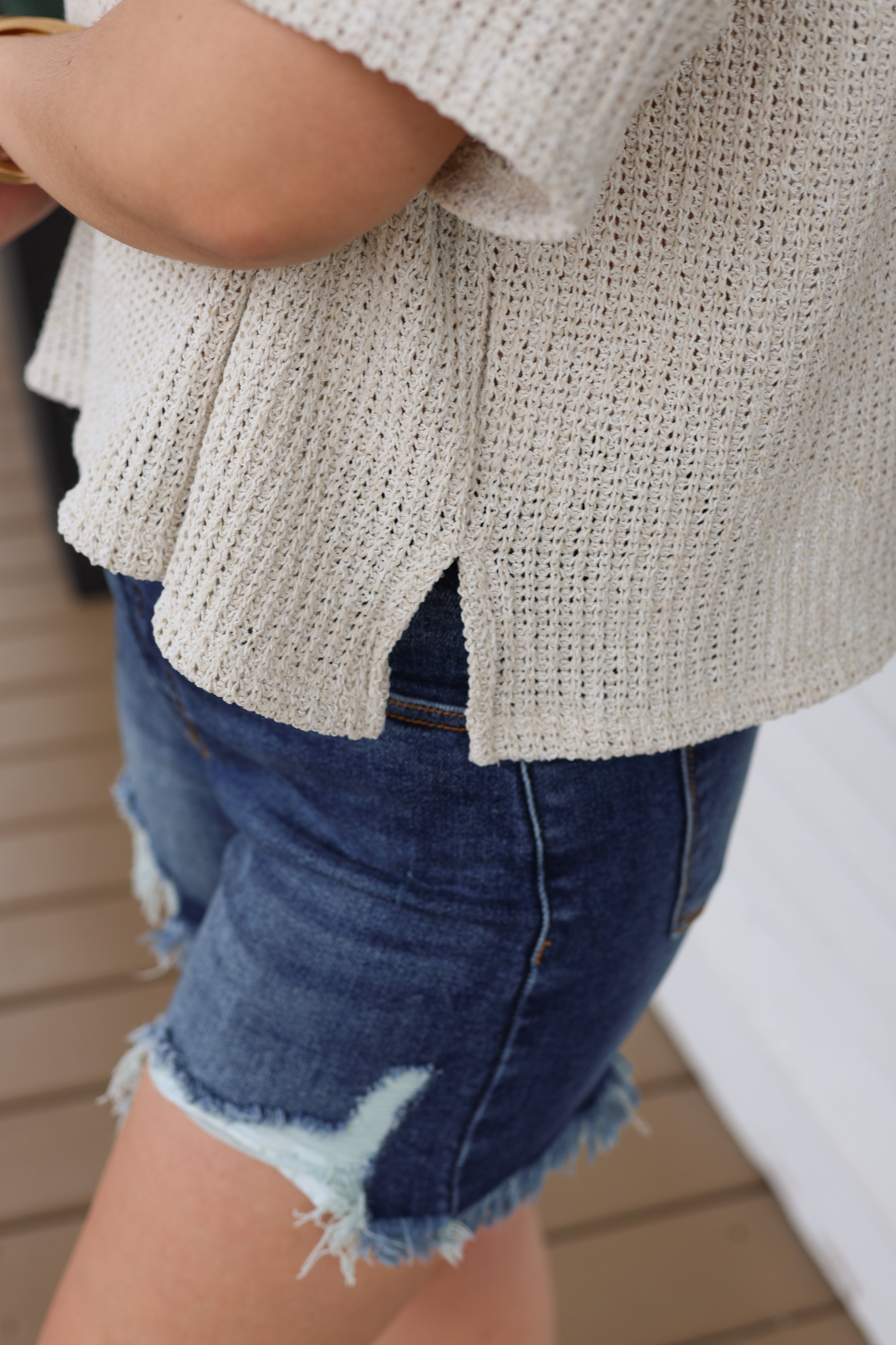 Effortless coastal style meets everyday comfort in this short sleeve waffle knit top. The relaxed fit and subtle side slit create a breezy, laid-back silhouette that's perfect for warm weather. Pair it with denim shorts for an instantly put-together look that works from beach days to casual outings. The textured waffle knit adds visual interest while remaining lightweight and breathable.