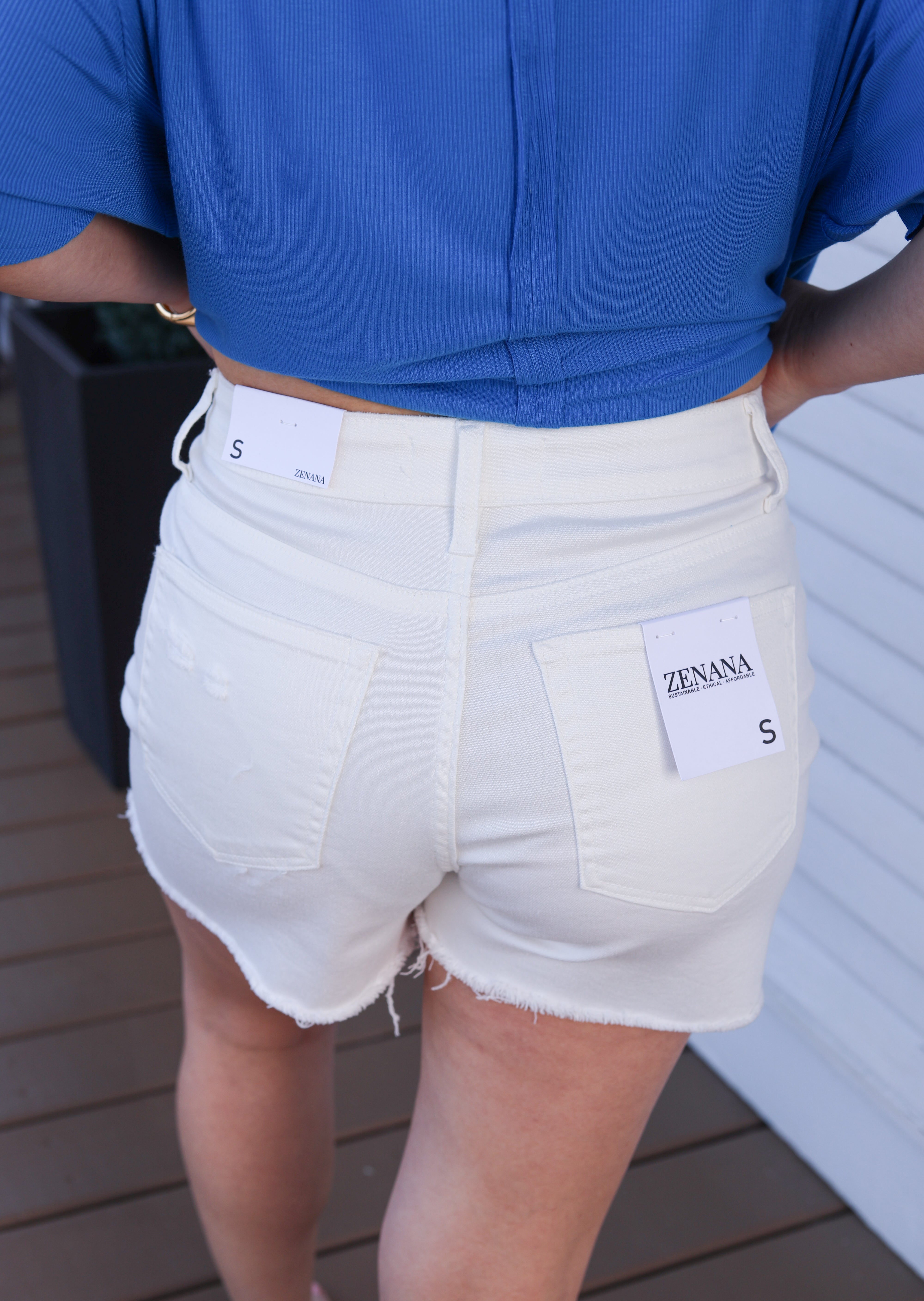 Raw hem white denim shorts, perfect for spring and summer looks!