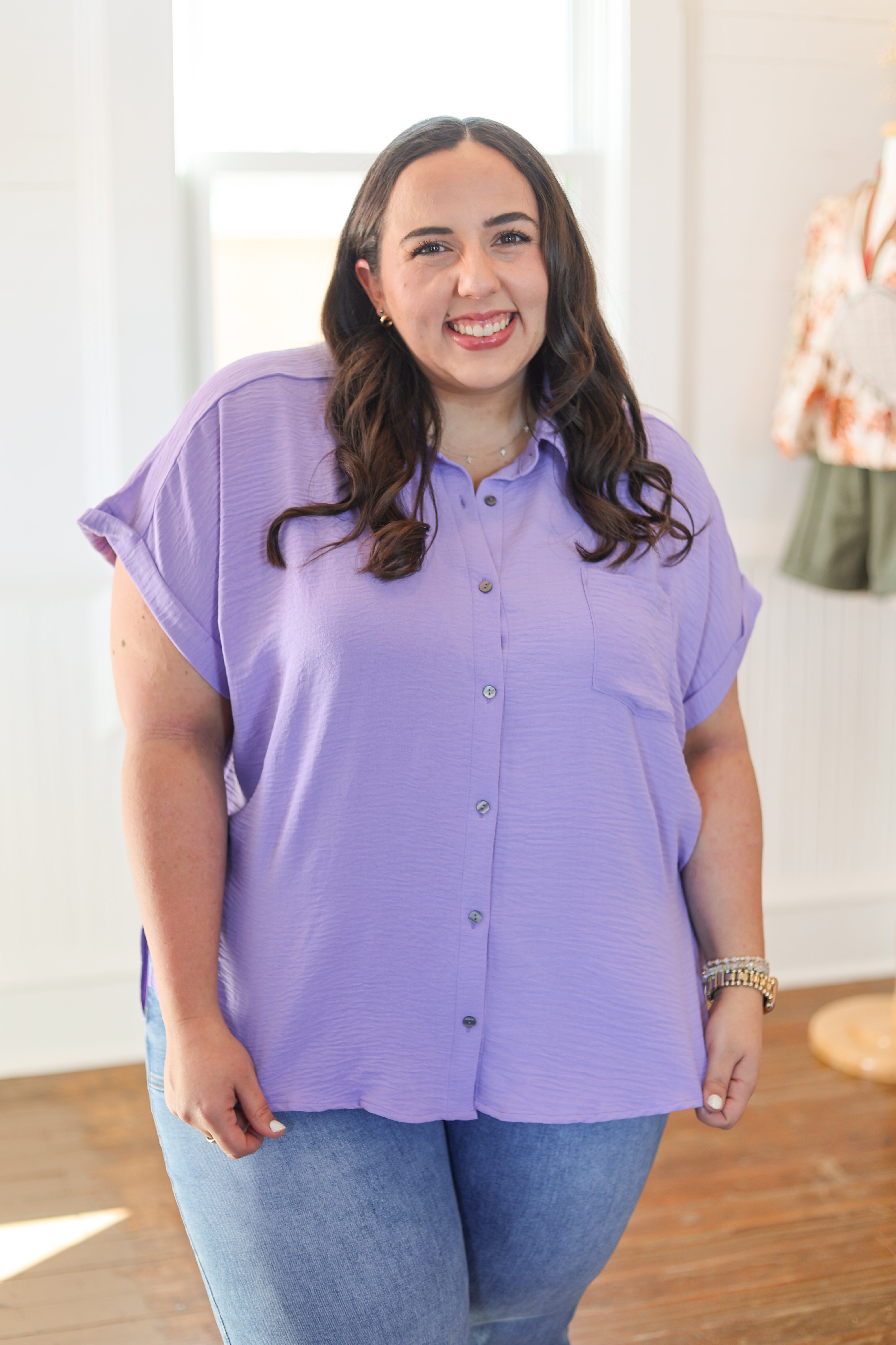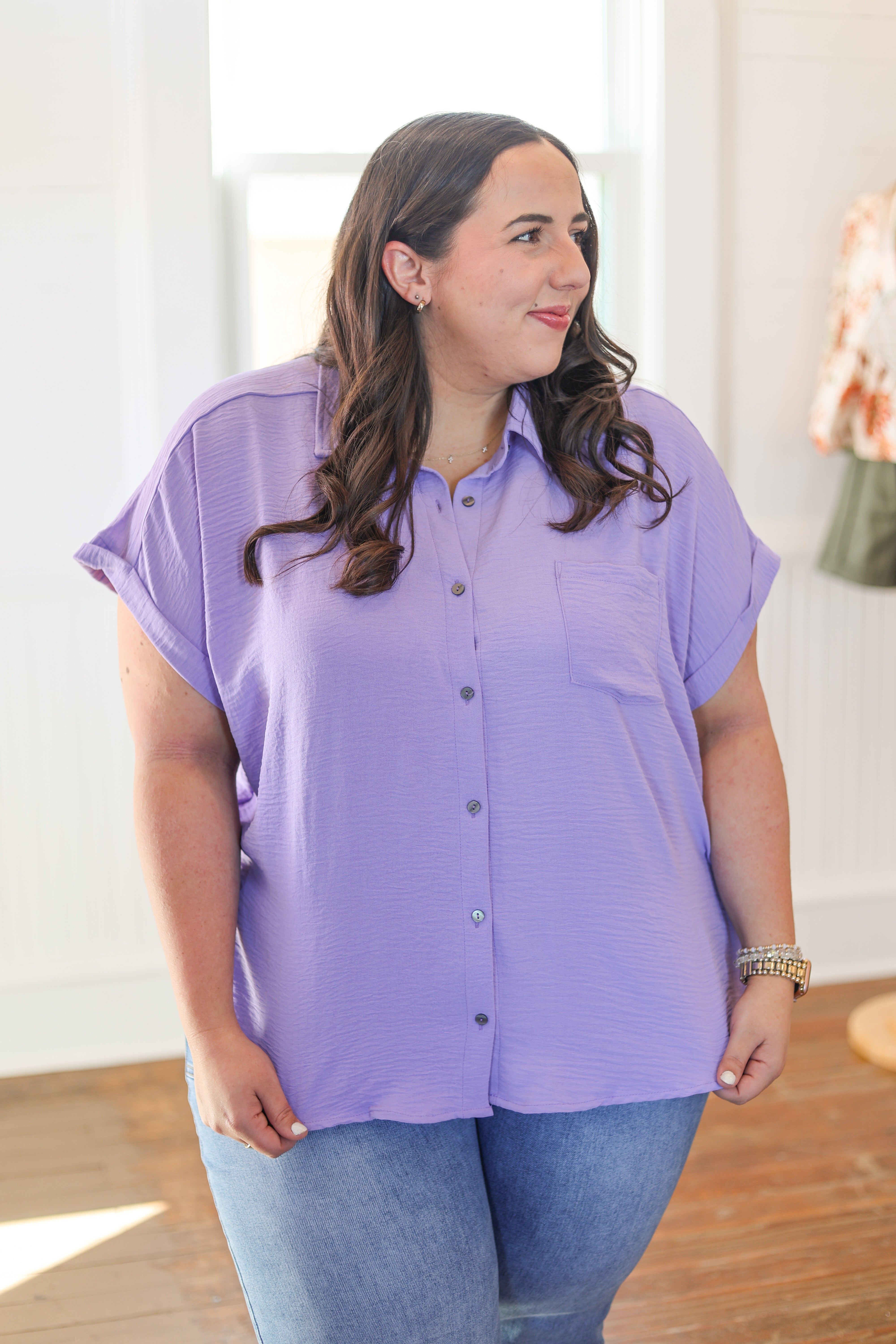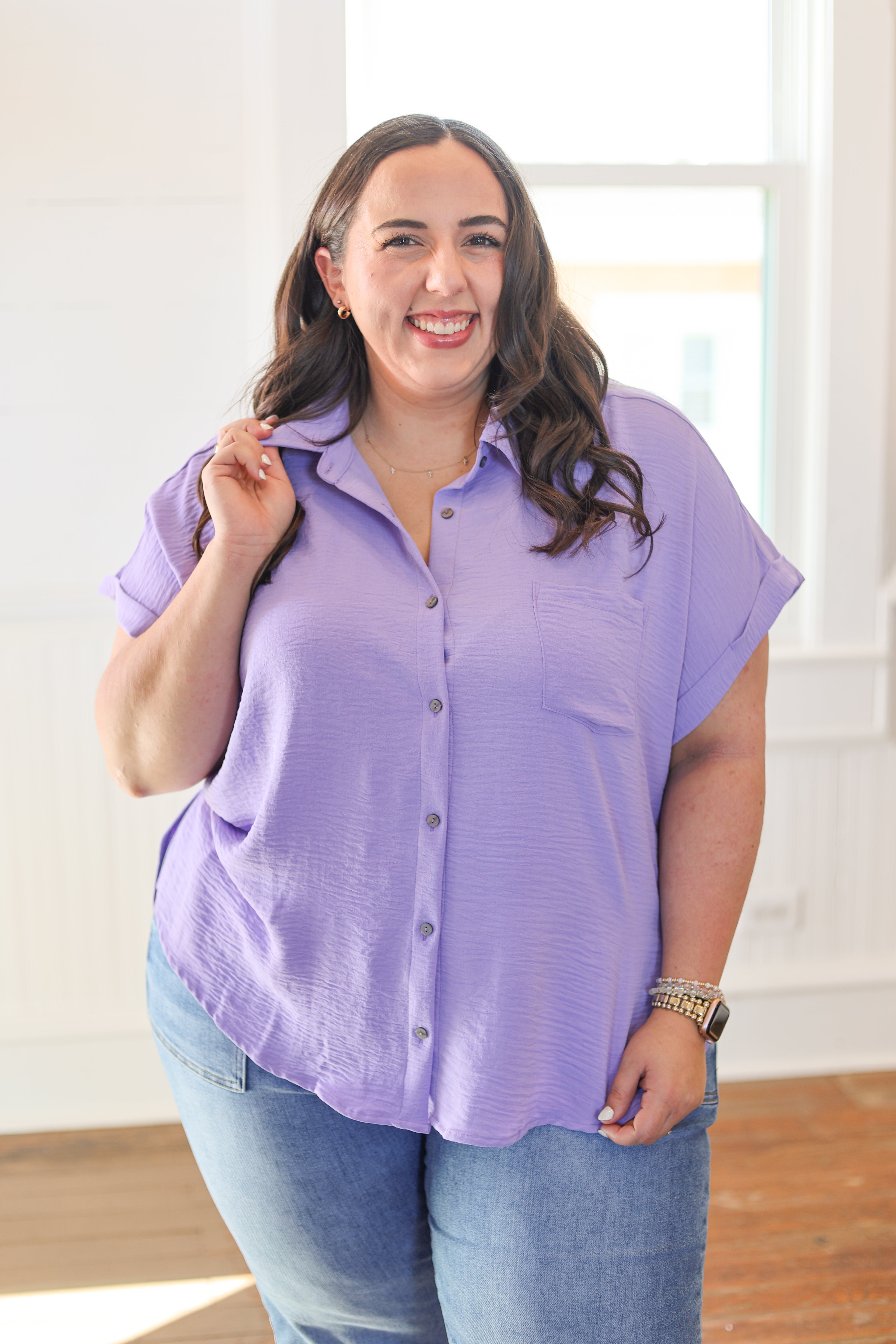 Breathe easy in this woven airflow button-down top, designed for curves and comfort. The lightweight fabric keeps you cool while the classic button-front style works for everything from casual weekends to dressed-up occasions. Perfect for layering or wearing solo, this plus-size essential delivers effortless style without the fuss. Slip it on and feel the difference quality construction makes.