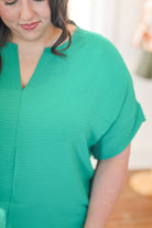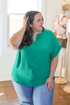 WOVEN AIRFLOW SPLIT NECK SHORT SLEEVE TOP