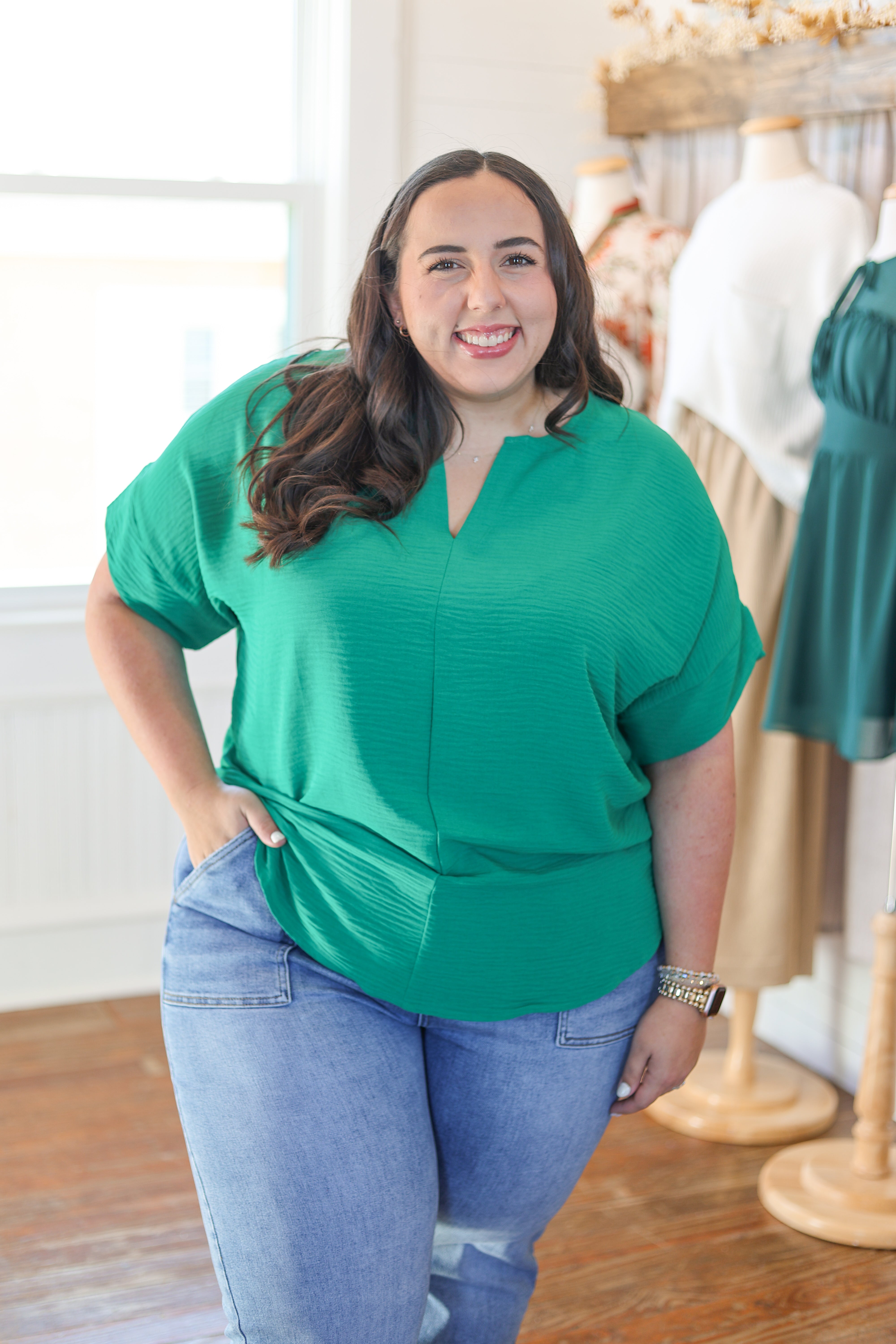 Bethany is in the smallest plus size available in each given style! She wears a size 18 in denim!