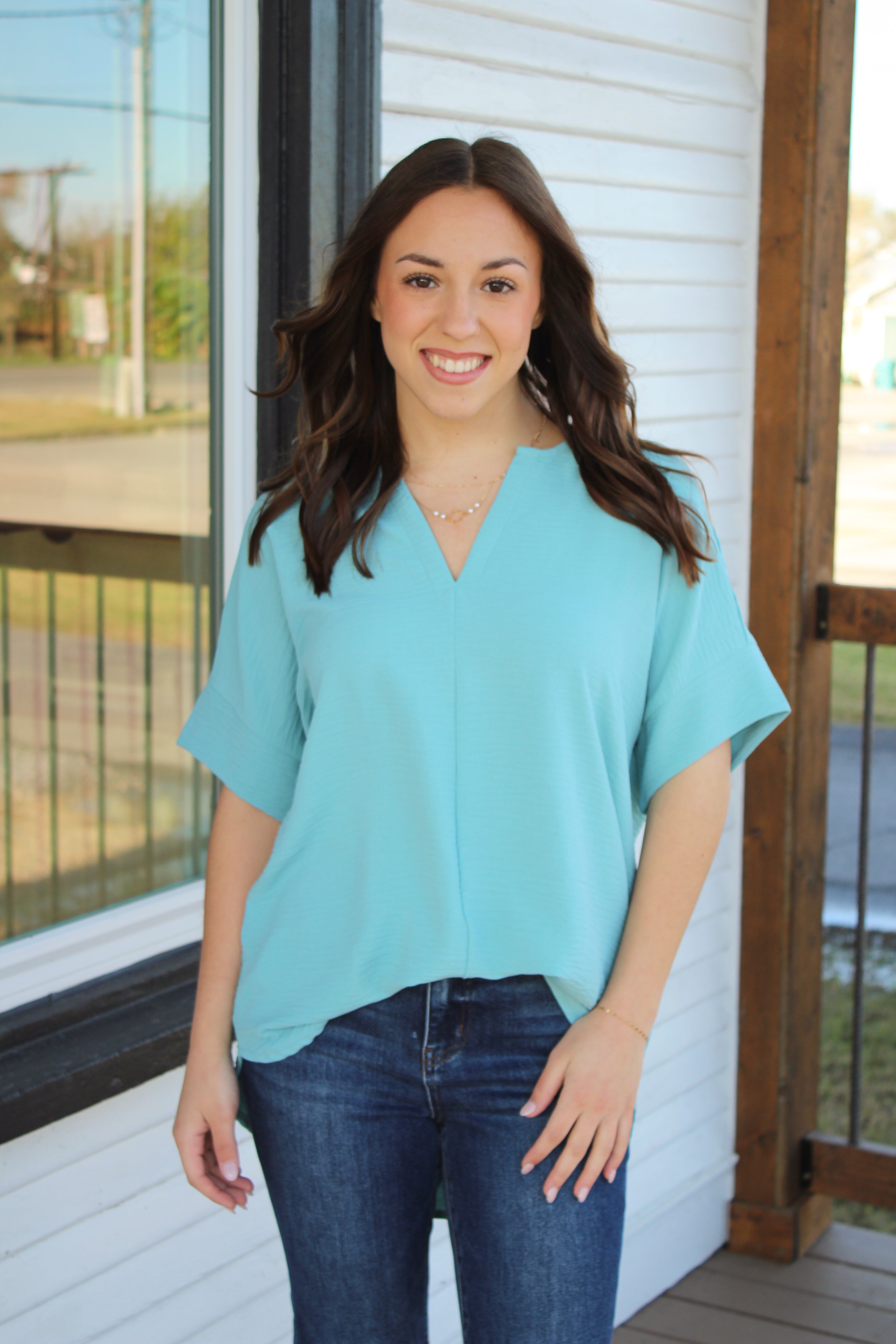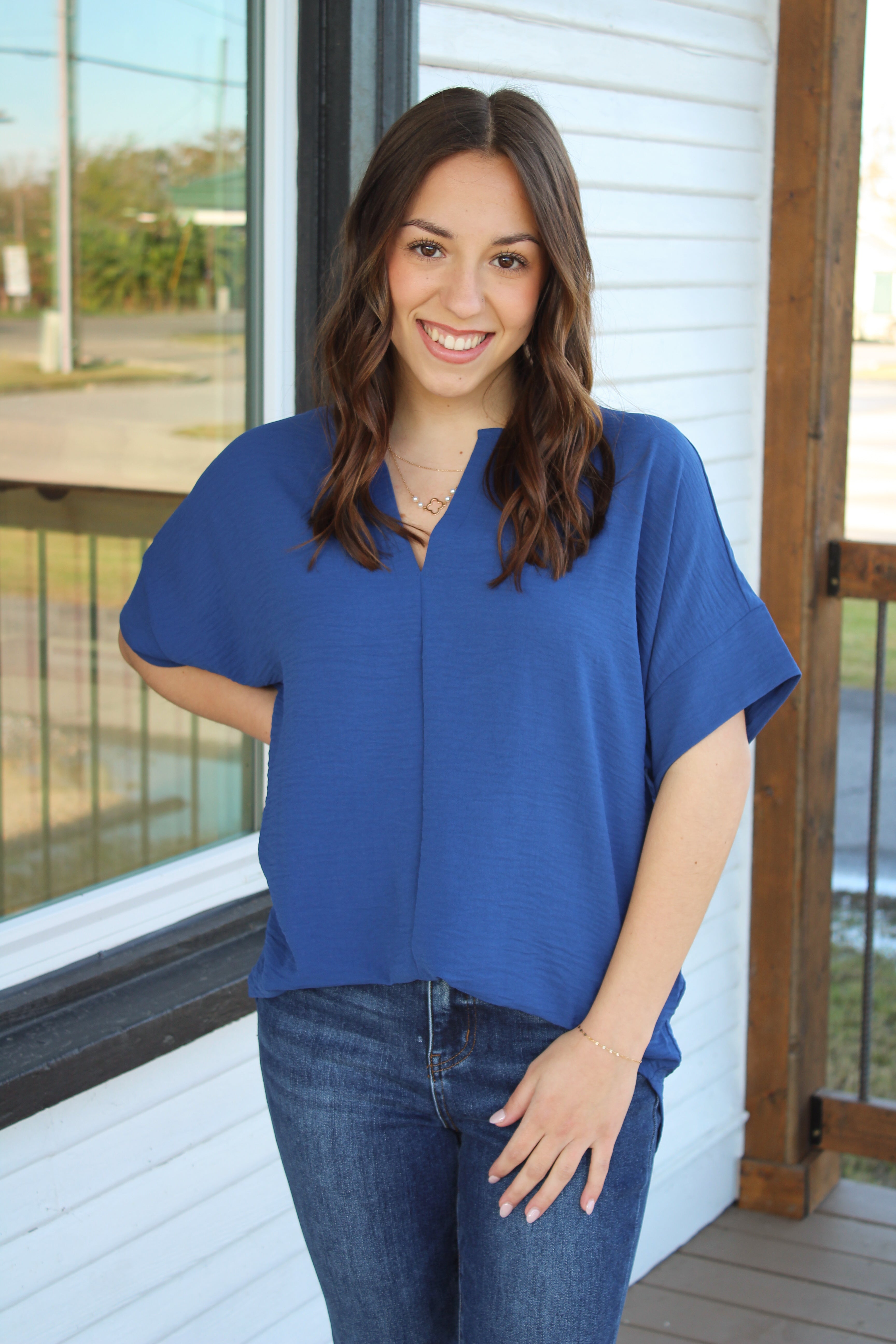 Effortlessly transition from work to play with our WOVEN AIRFLOW SPLIT NECK SHORT SLEEVE TOP. This versatile top strikes the perfect balance between casual and dressy, ensuring you look stylish in any setting. Stay cool and comfortable with its breathable fabric. A must-have for any wardrobe!