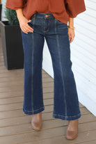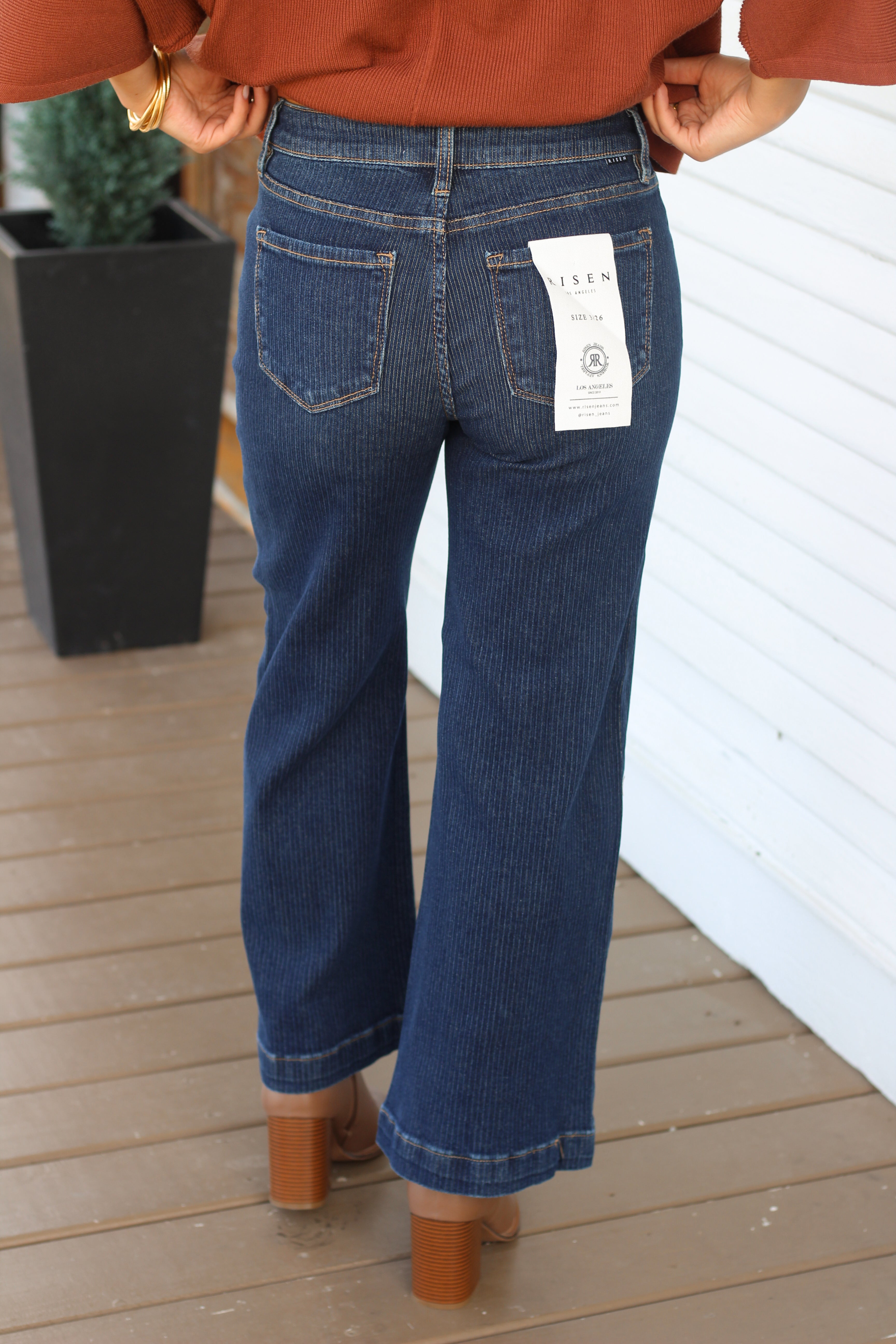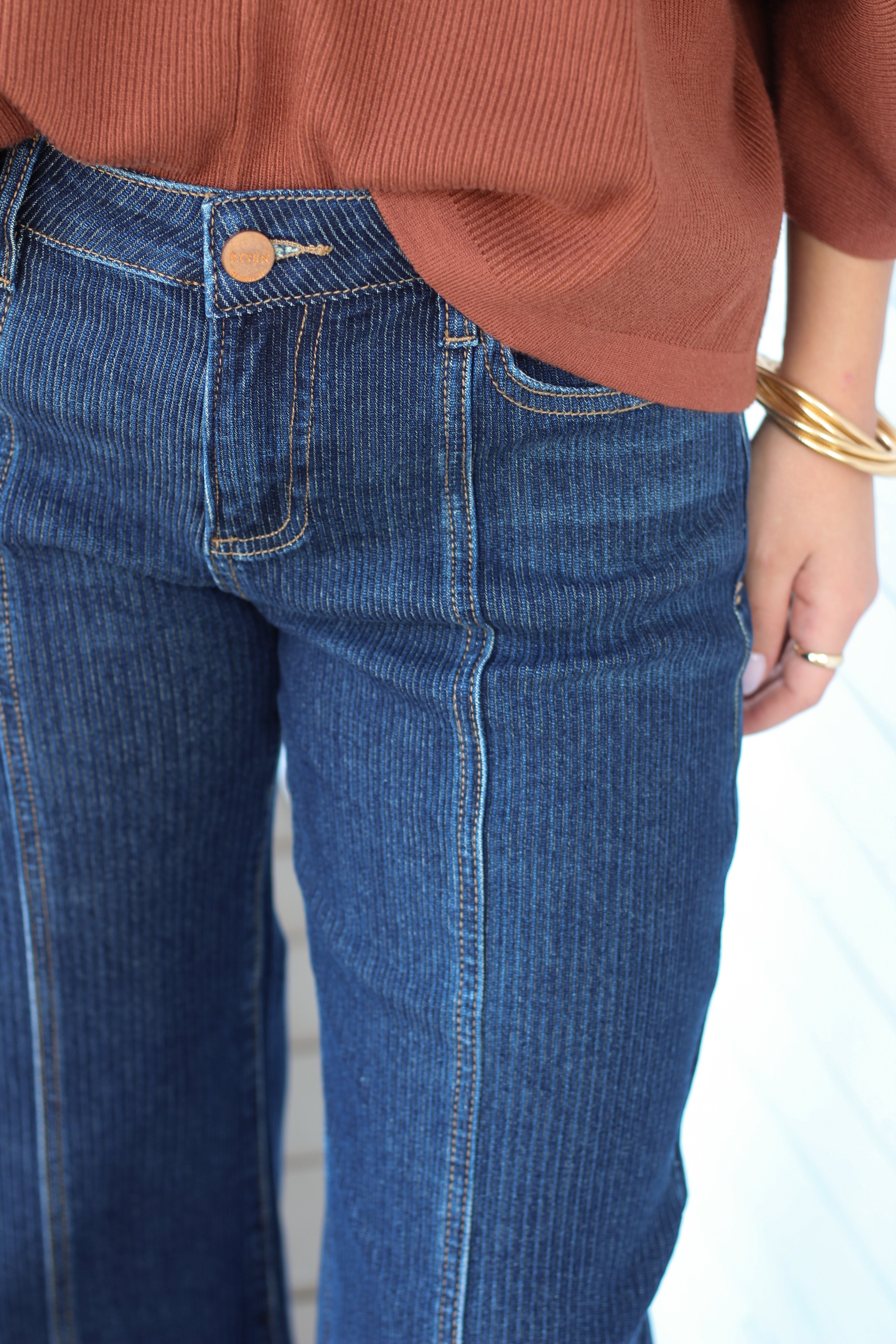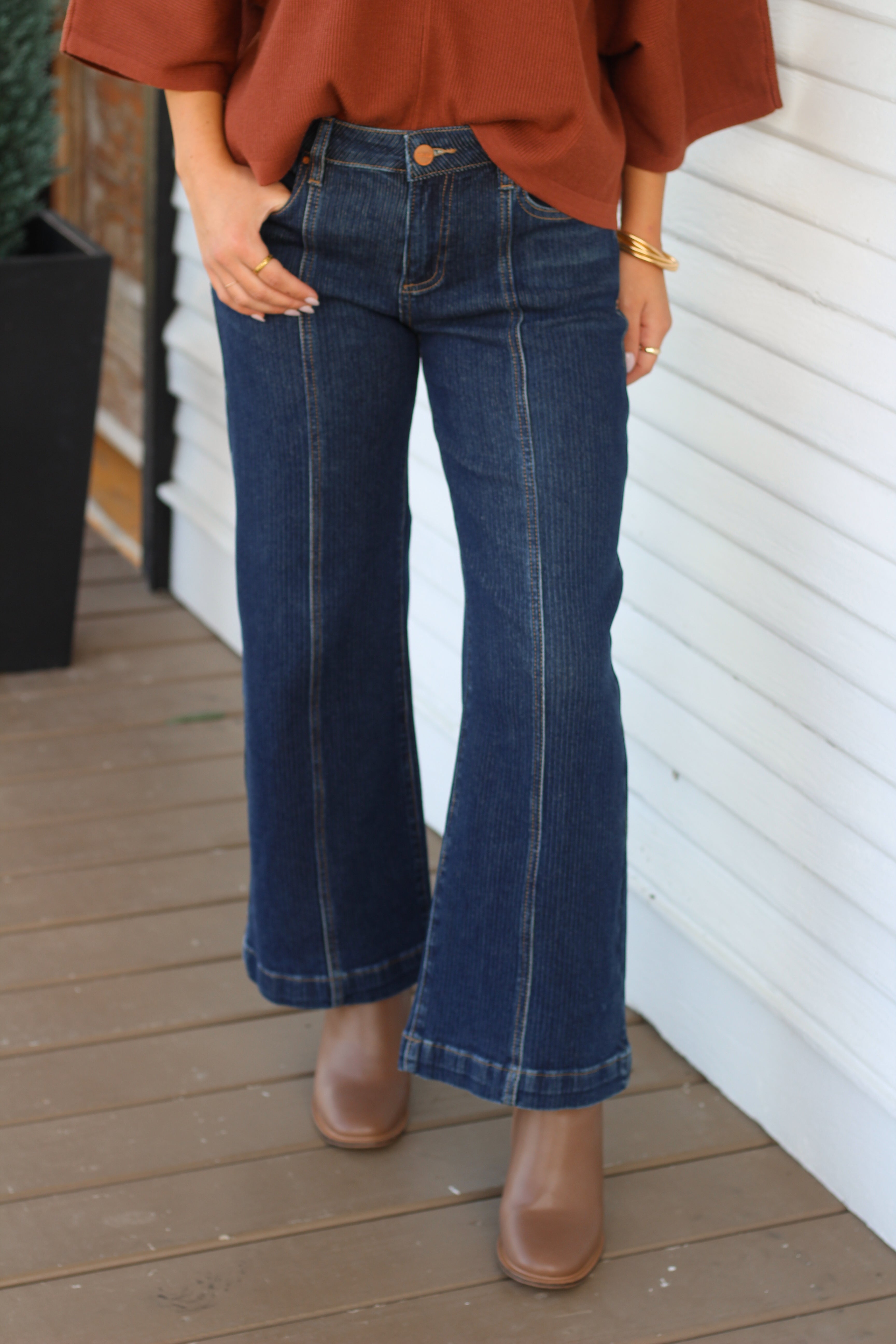 These Carrie Denim jeans offer a perfect blend of comfort and style with their mid-rise fit and cropped length. The wide legs add a relaxed vibe, while the front seam detail brings a trendy edge. Crafted with a ribbed texture, they’re ideal for casual days when you want to look effortlessly cool. Pair them with your favorite tees or sweaters for an easy, everyday look or keep it elevated with a nicer top.