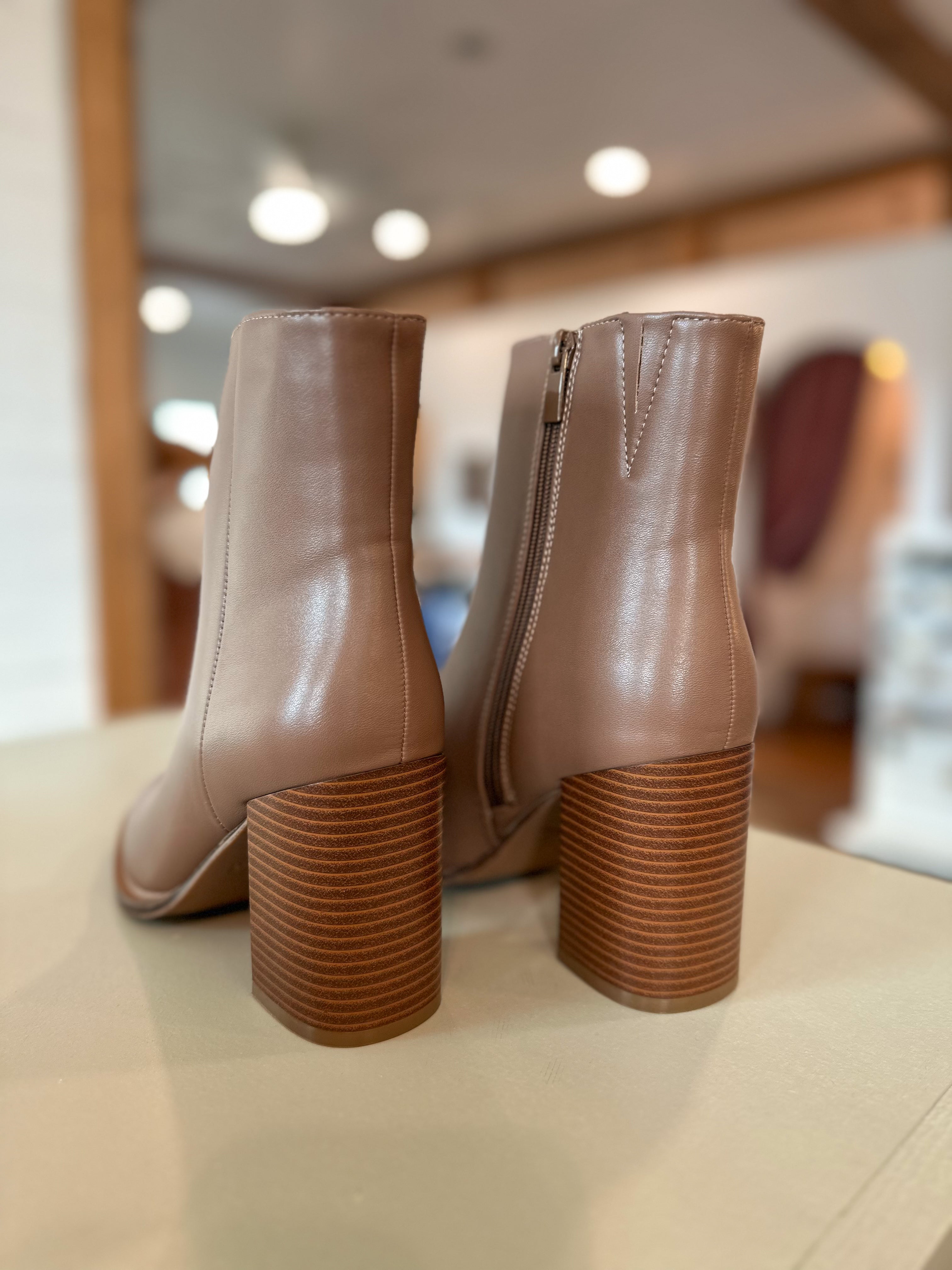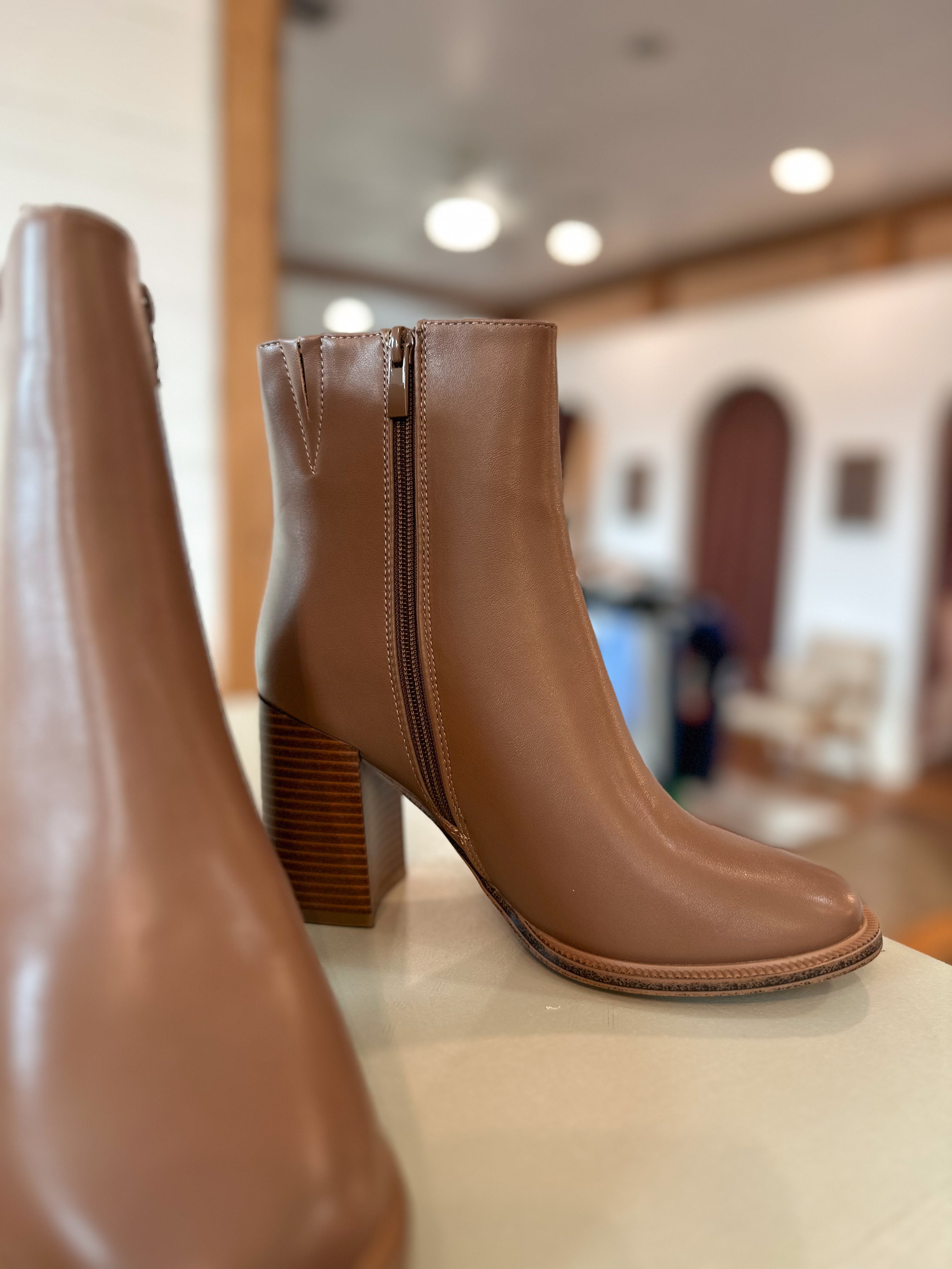Step into effortless style with these brown booties crafted from smooth PU leather. Featuring a convenient zipper closure for easy wear and a faux wooden block heel that adds just the right amount of lift and charm. Perfect for casual outings or dressing up your favorite jeans, these booties blend comfort and trendy design with ease.