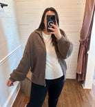 The Mocha Cozy Jacket is your go-to oversized layering piece this season. Featuring a comfy sweater knit fabric and a stylish collar, it easily zips up to keep you warm without sacrificing style. Perfect for adding a relaxed, cozy vibe to any outfit, this jacket is a must-have for effortless layering on chilly days.