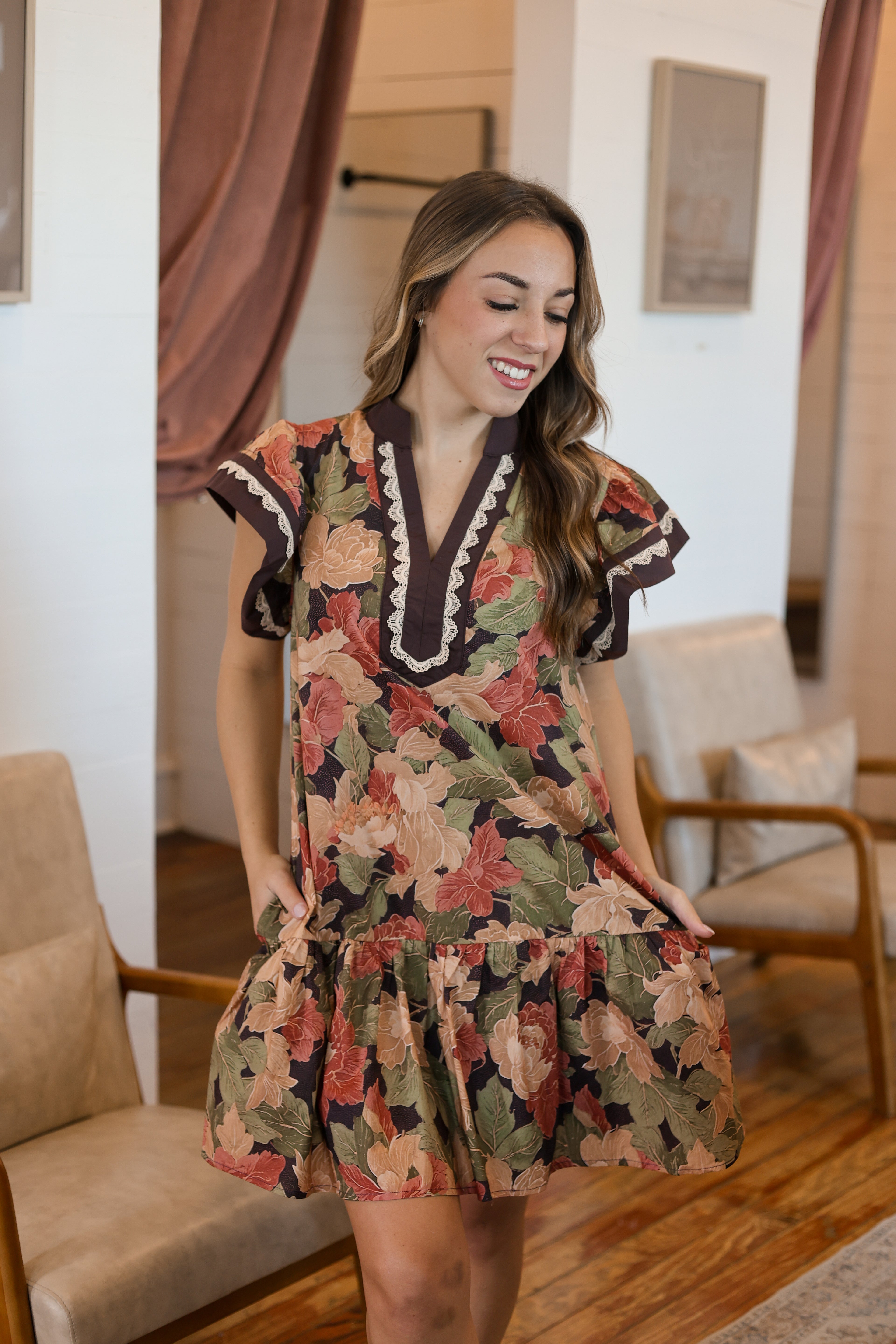 Capture the essence of fall with the Amber Dress, featuring a moody floral print that perfectly blends rich autumn hues. This mini-length dress is ideal for casual outings or cozy gatherings, offering a comfortable fit without sacrificing style. Embrace the season’s vibe with a piece that’s both playful and chic!