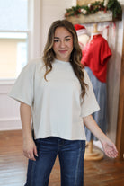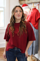 DOUBLE KNIT SIDE SLITS HI-LOW SHORT SLEEVE TOP TOTAL BODY LENGTH: 21.5"(FRT),24"(BACK) BUST: 44.5" approx. - MEASURED FROM SMALL