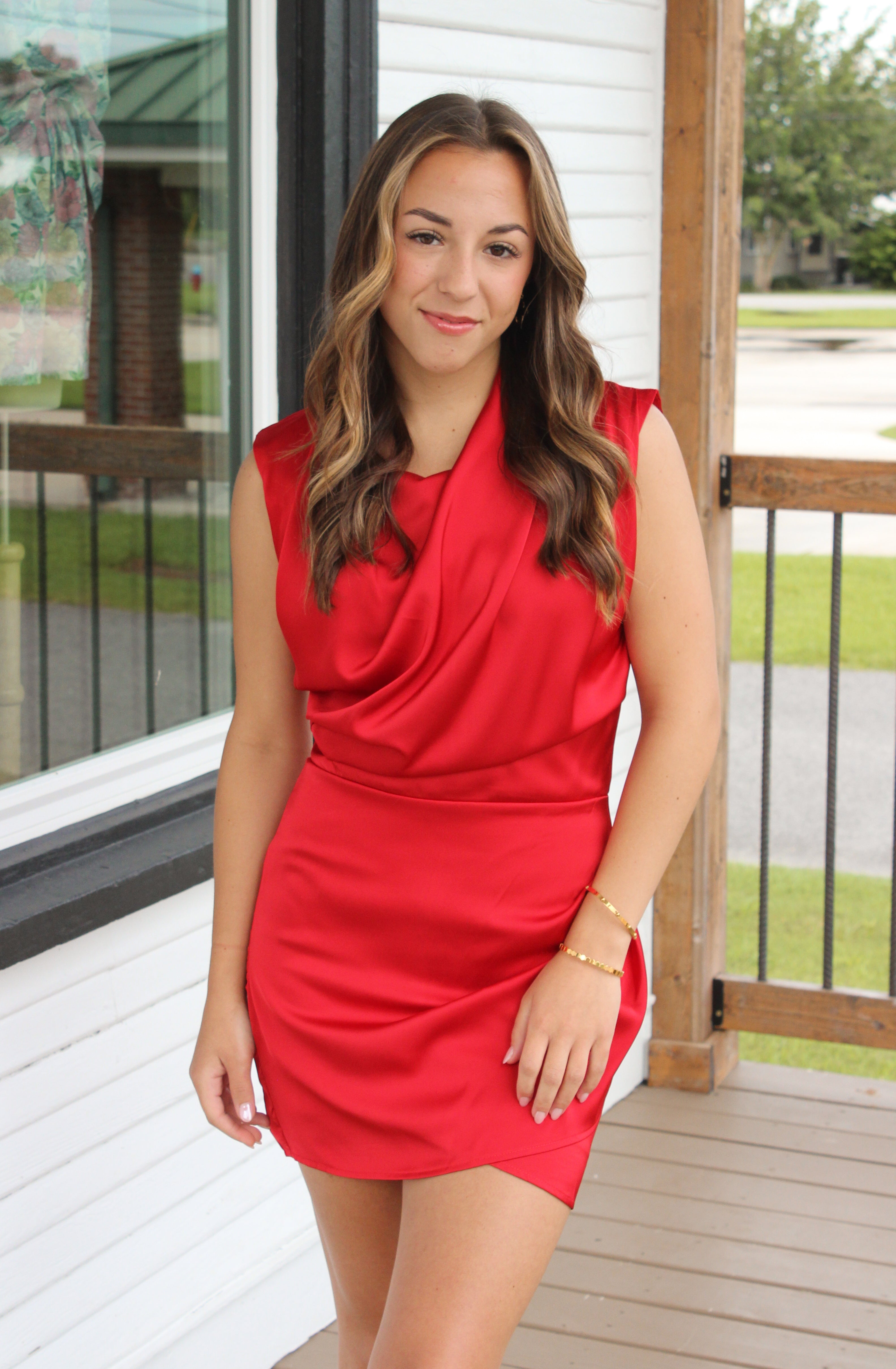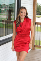 The Scarlett Dress is a sleek satin mini that’s perfect for turning heads. Its sleeveless design and draped neckline add a touch of effortless elegance, making it ideal for wedding guests or a stylish date night. Feel confident and chic in this versatile piece that’s ready to elevate any occasion.