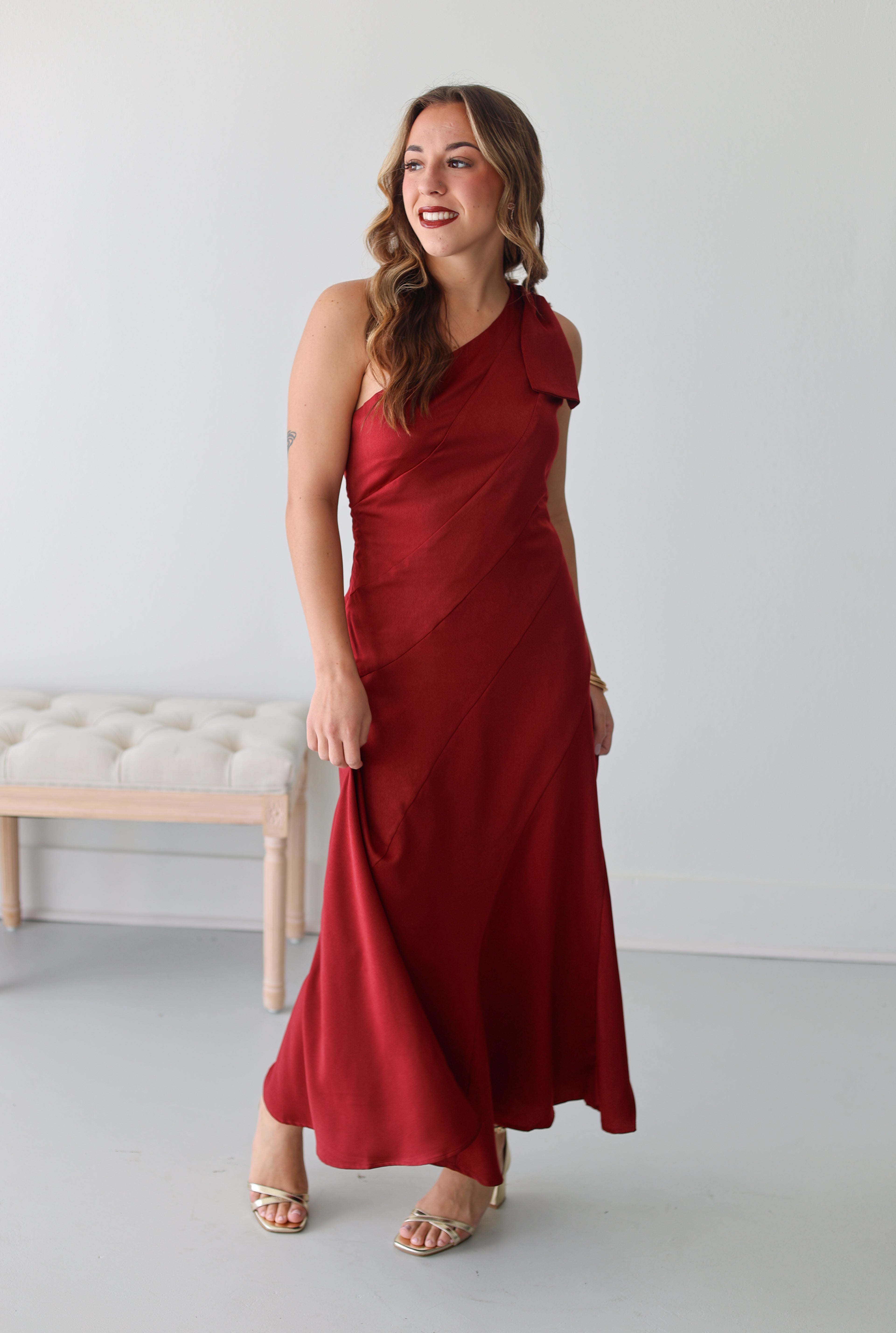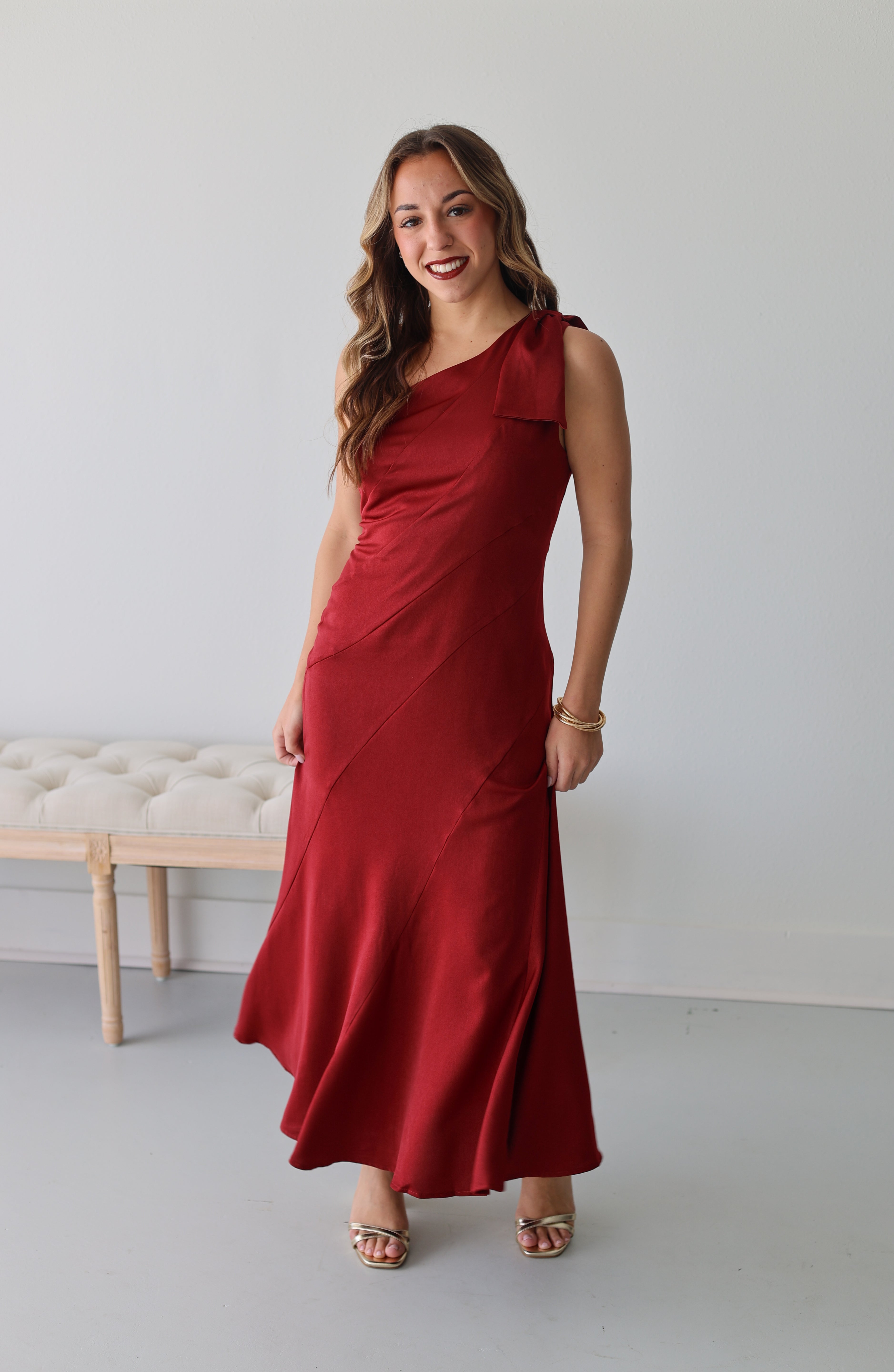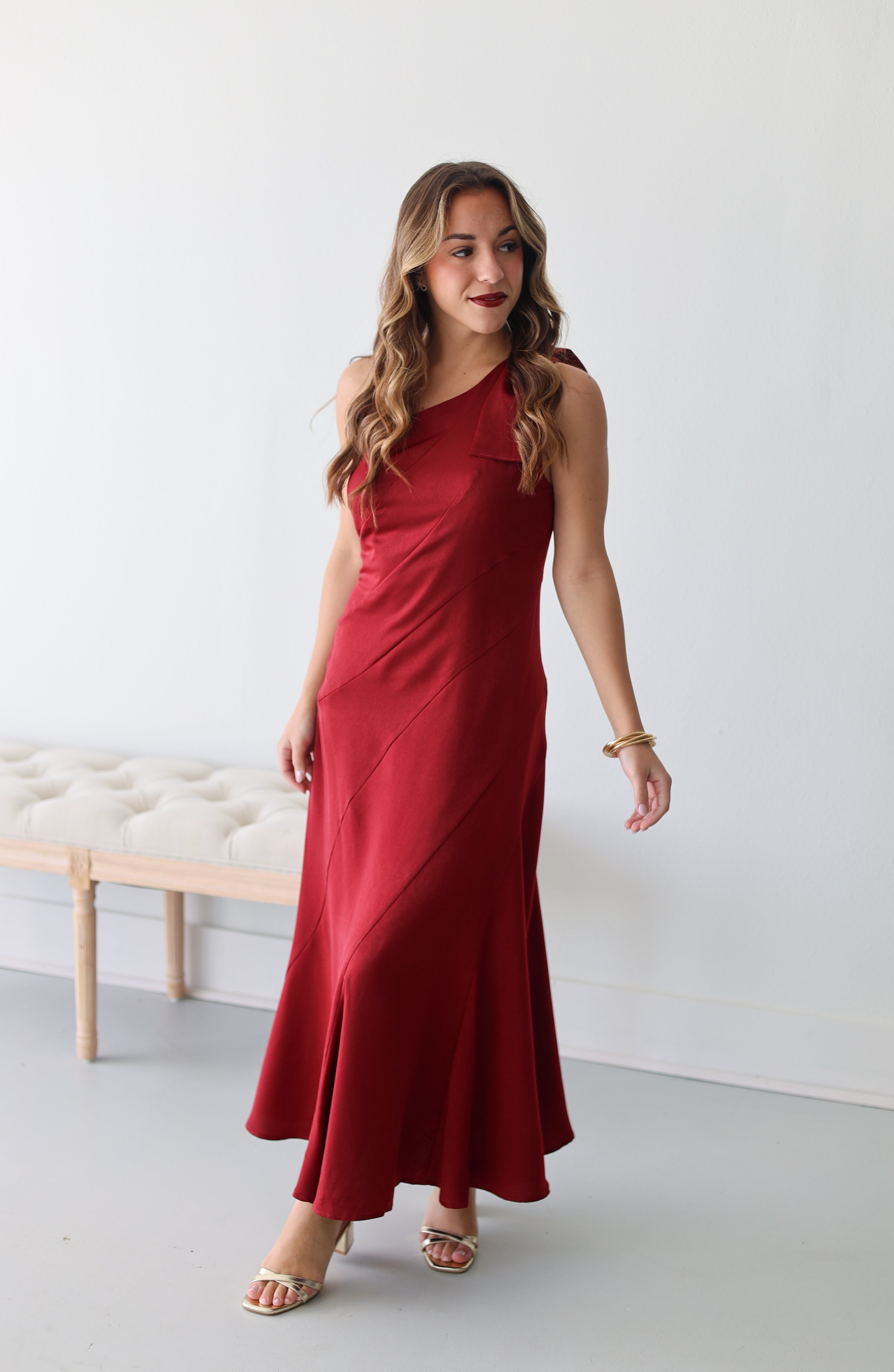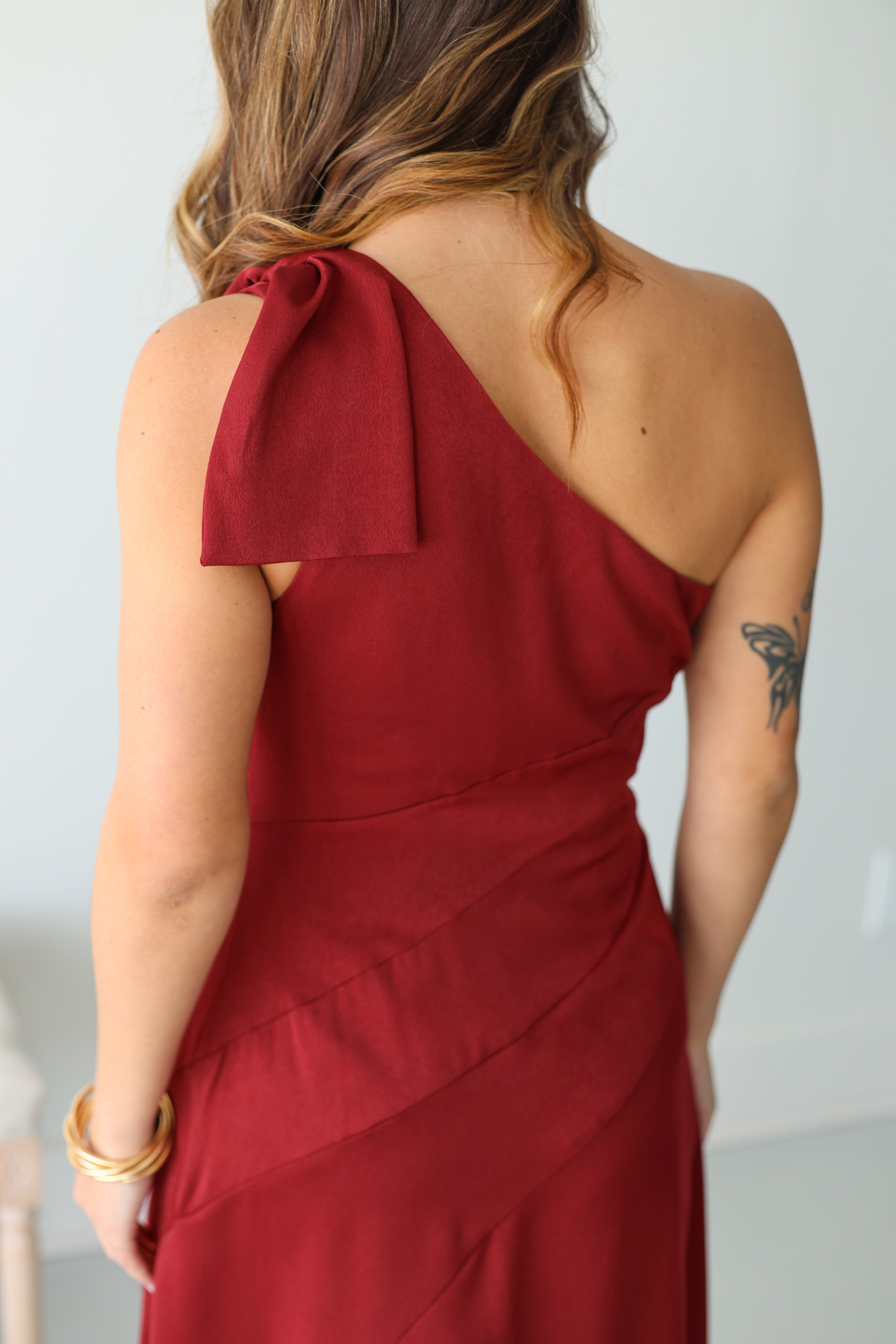 Turn heads this season with our Holiday Glam Midi Dress in a rich burgundy shade. Featuring a stylish one-shoulder design and flattering slanted seamwork, this dress highlights your silhouette perfectly. Whether you’re attending a wedding or celebrating Christmas, its versatile midi length makes it an ideal choice for festive occasions. Feel confident and effortlessly chic at every holiday event!