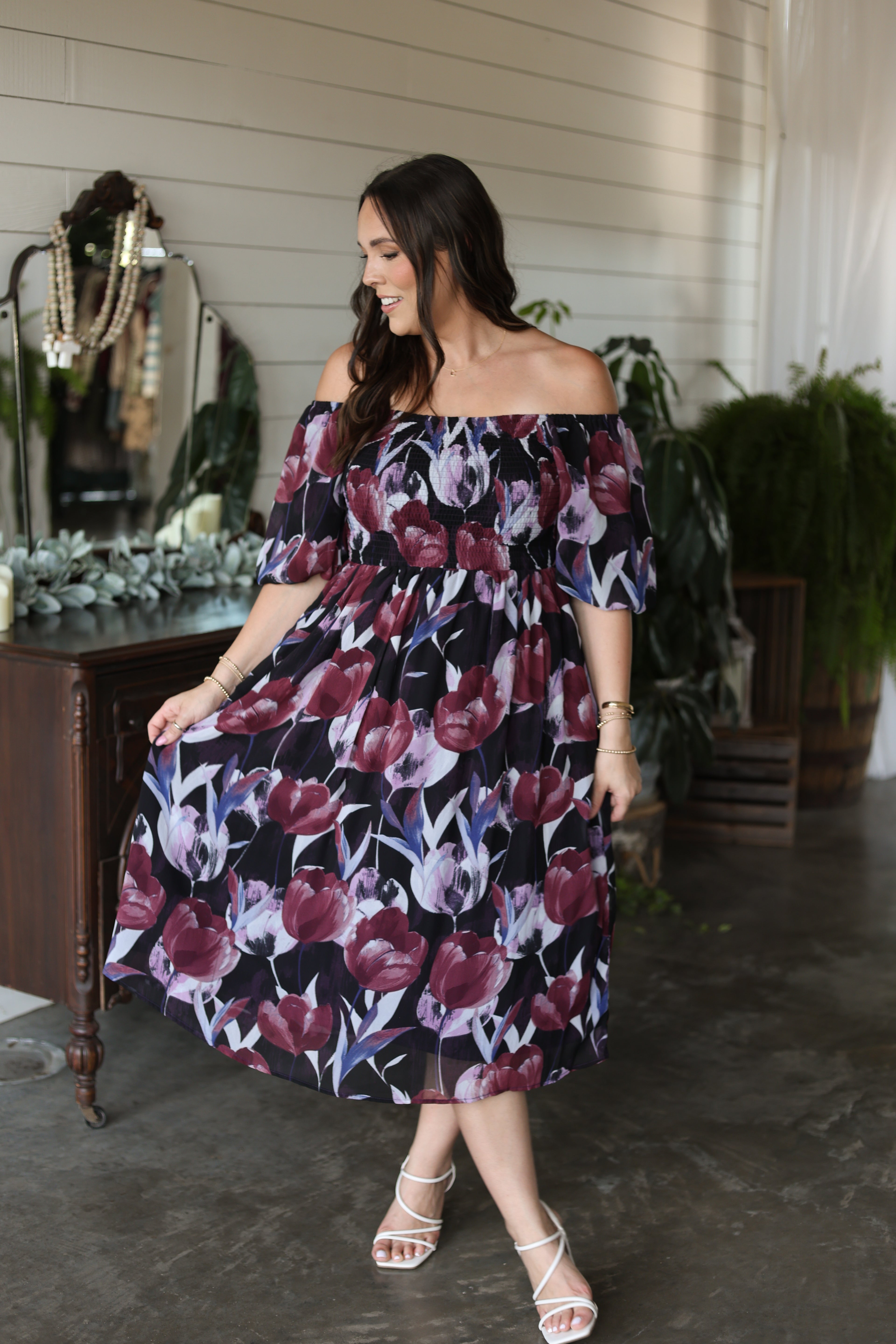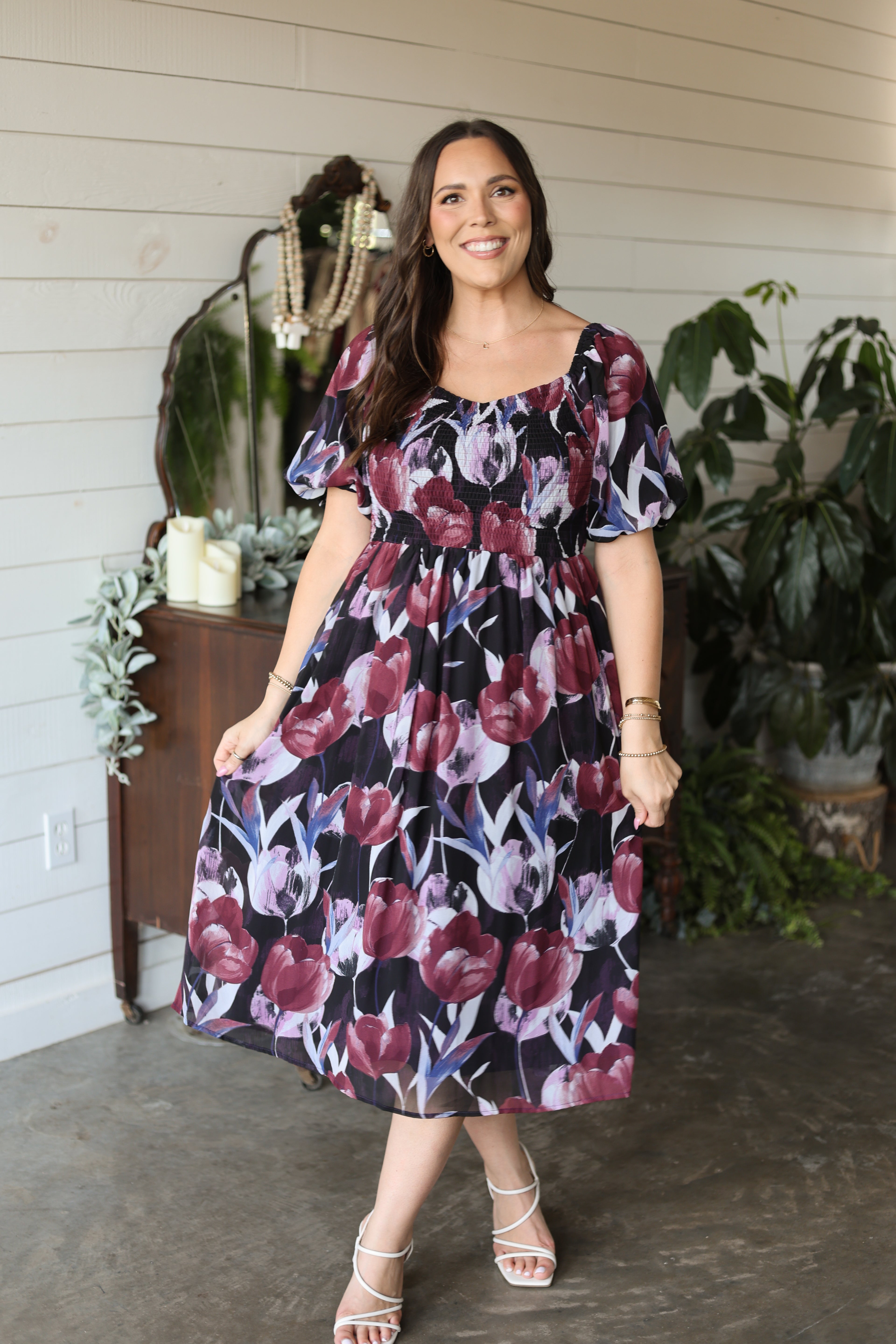 Moody Florals Midi Dress