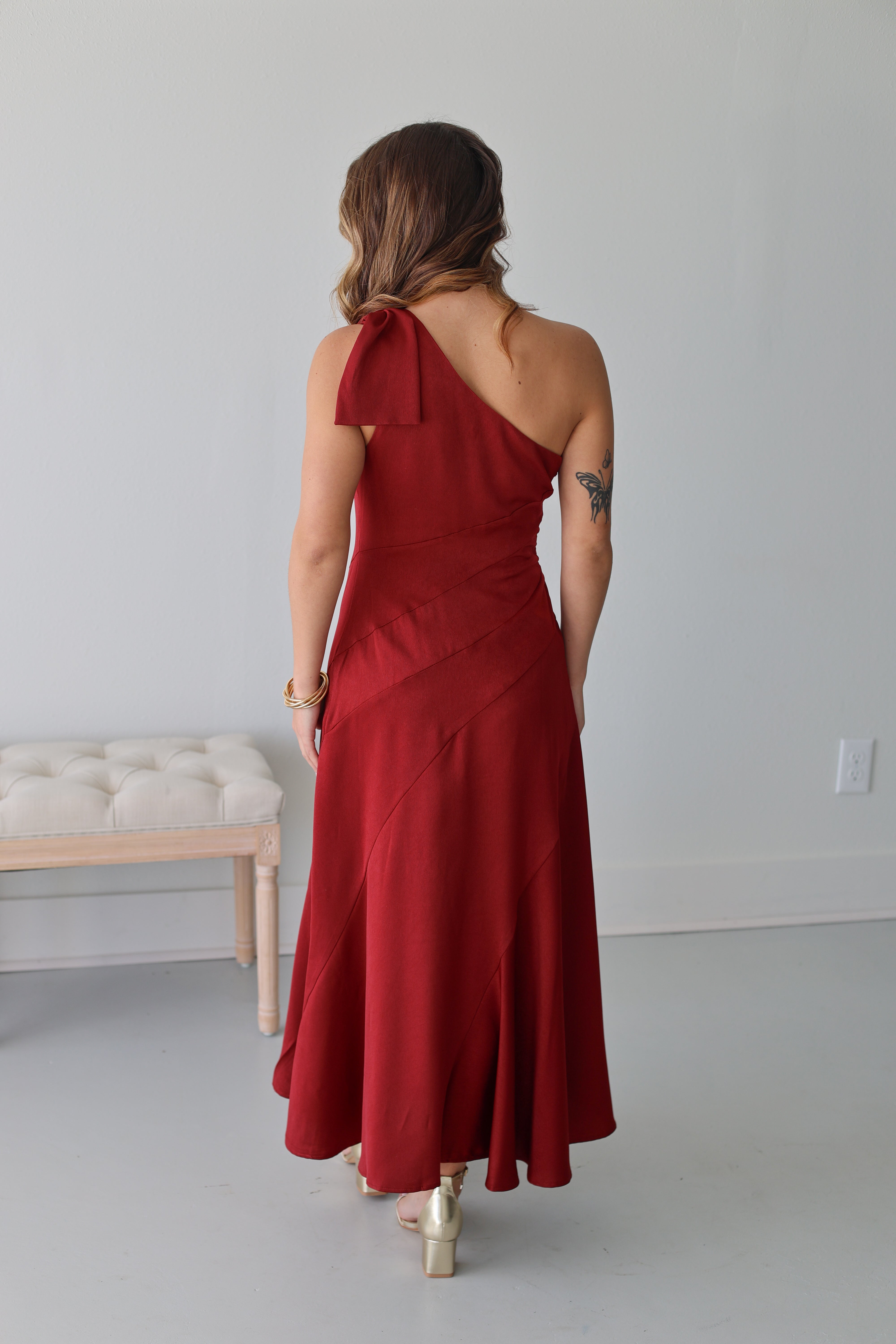 Turn heads this season with our Holiday Glam Midi Dress in a rich burgundy shade. Featuring a stylish one-shoulder design and flattering slanted seamwork, this dress highlights your silhouette perfectly. Whether you’re attending a wedding or celebrating Christmas, its versatile midi length makes it an ideal choice for festive occasions. Feel confident and effortlessly chic at every holiday event!