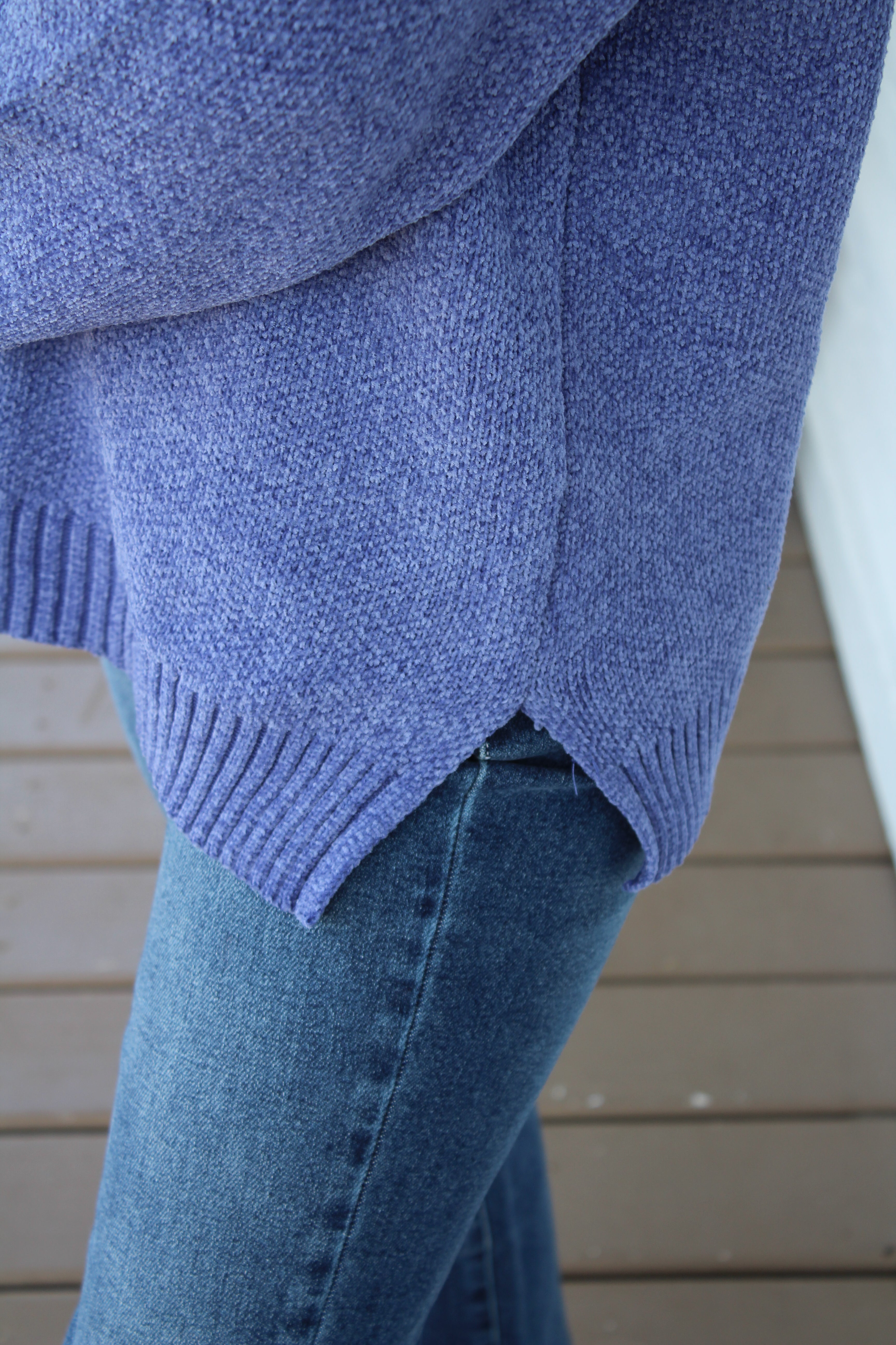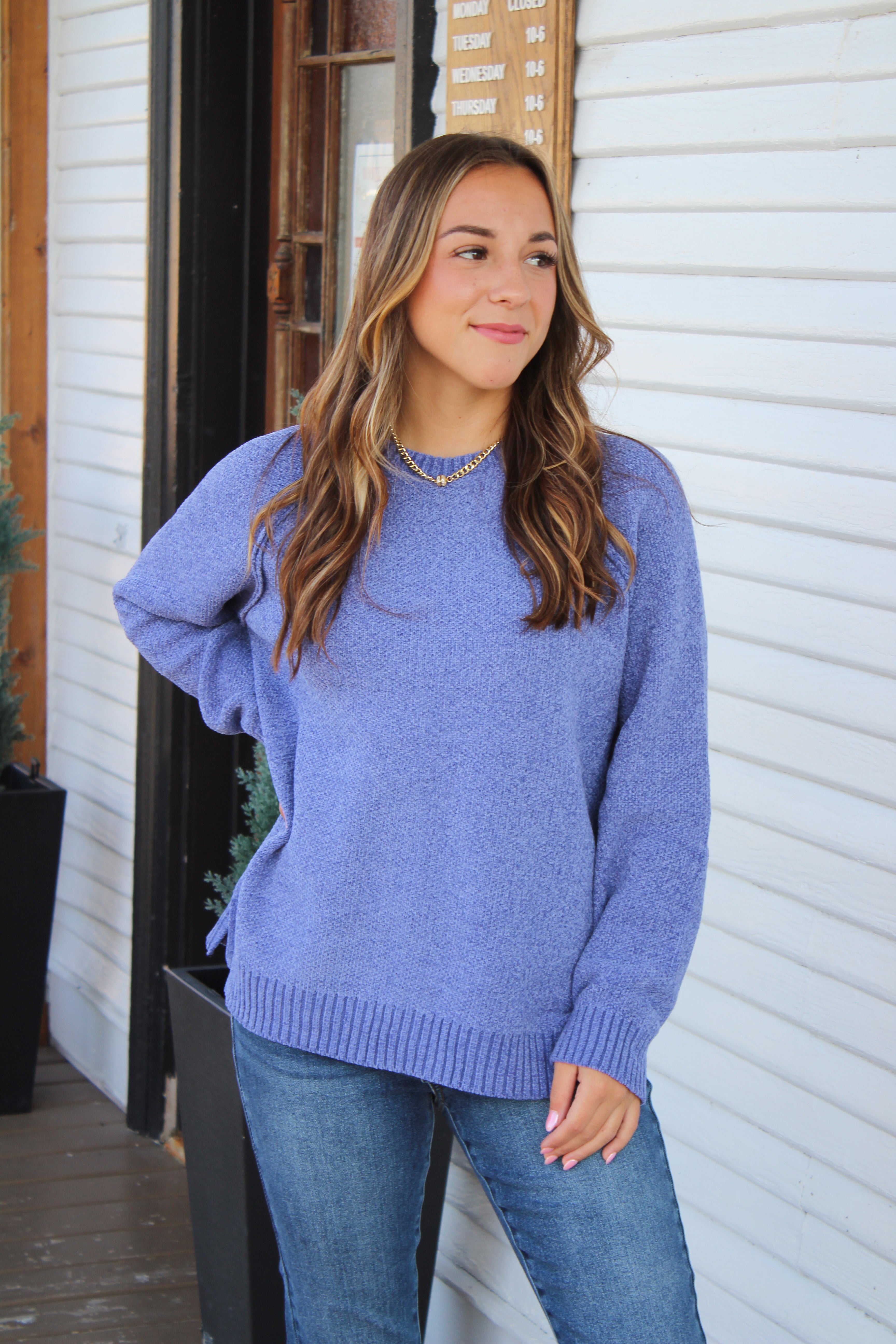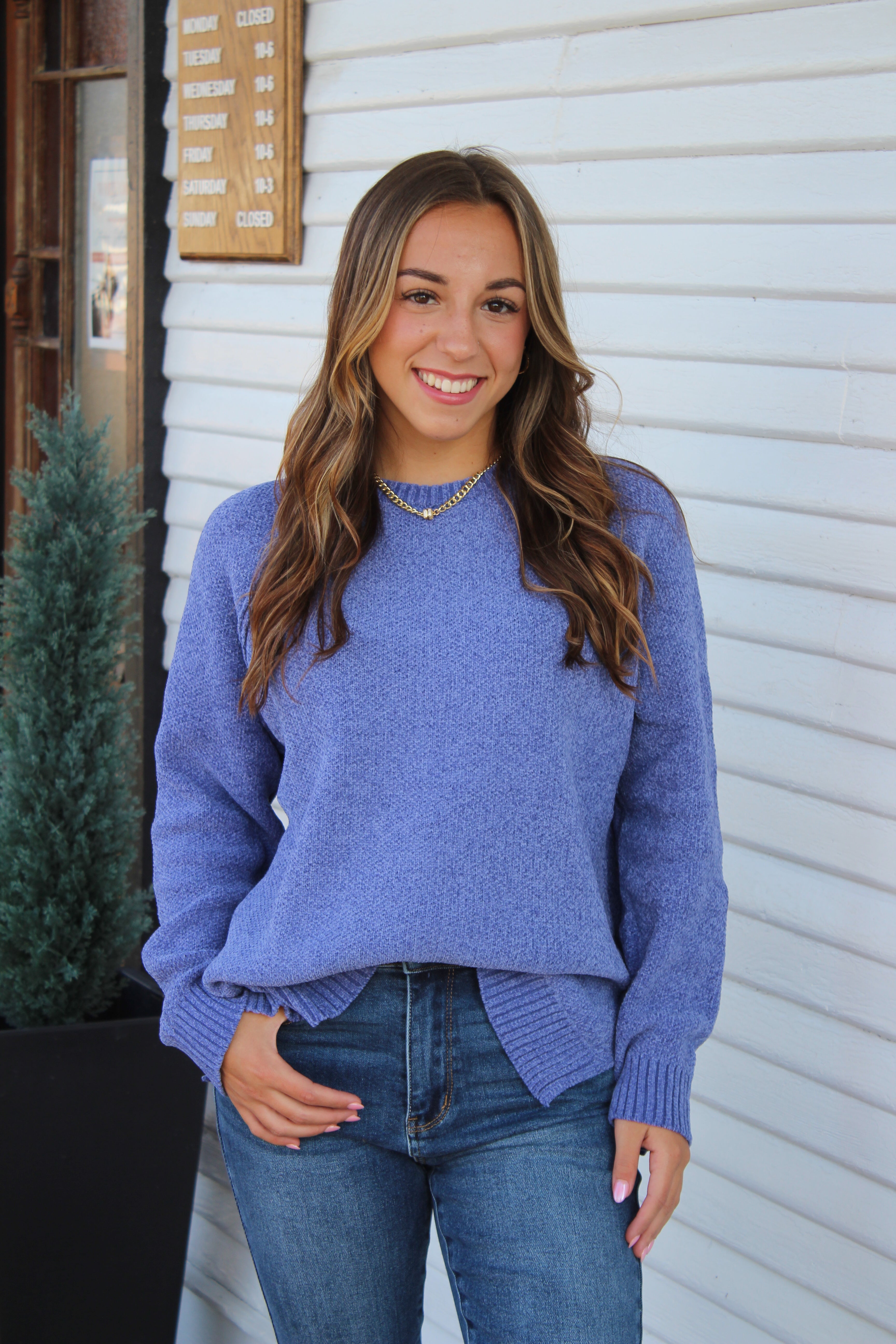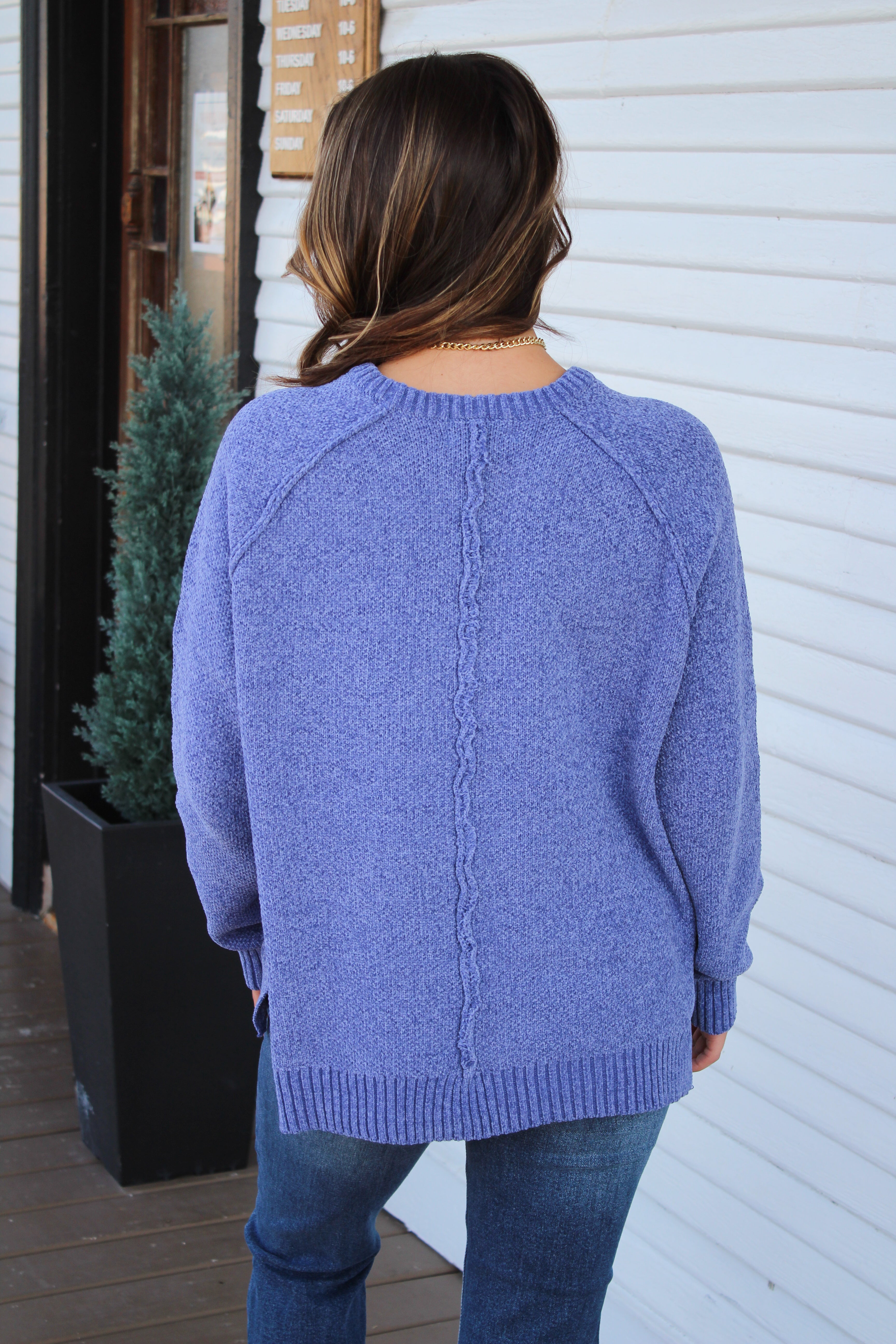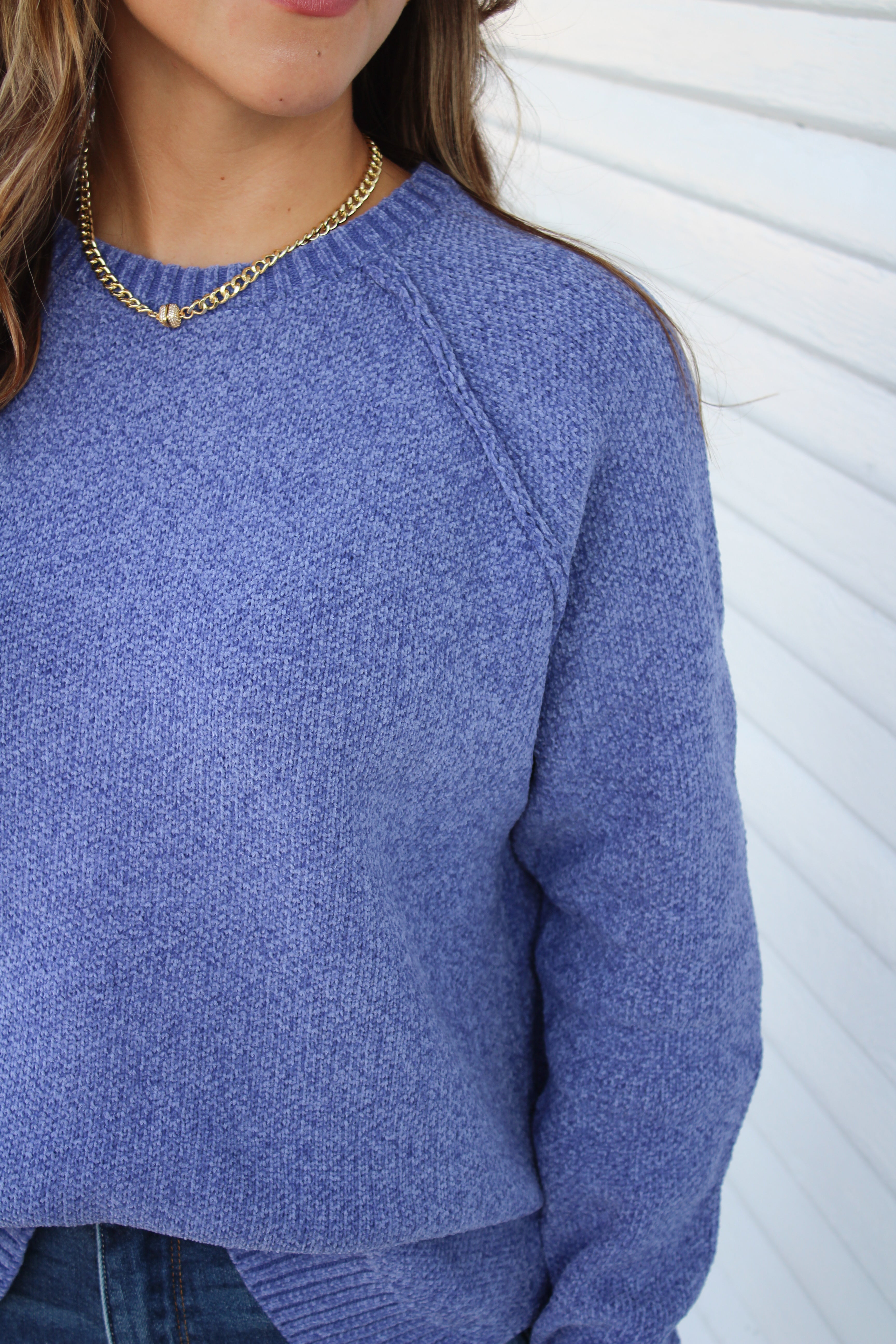 Experience cozy comfort with this marlin blue chenille round neck raglan long sleeve sweater. Crafted from soft, chenille fabric, it offers amazing quality and warmth for chilly days. Its relaxed fit and classic raglan sleeves make it a stylish, casual staple you'll love to wear again and again.