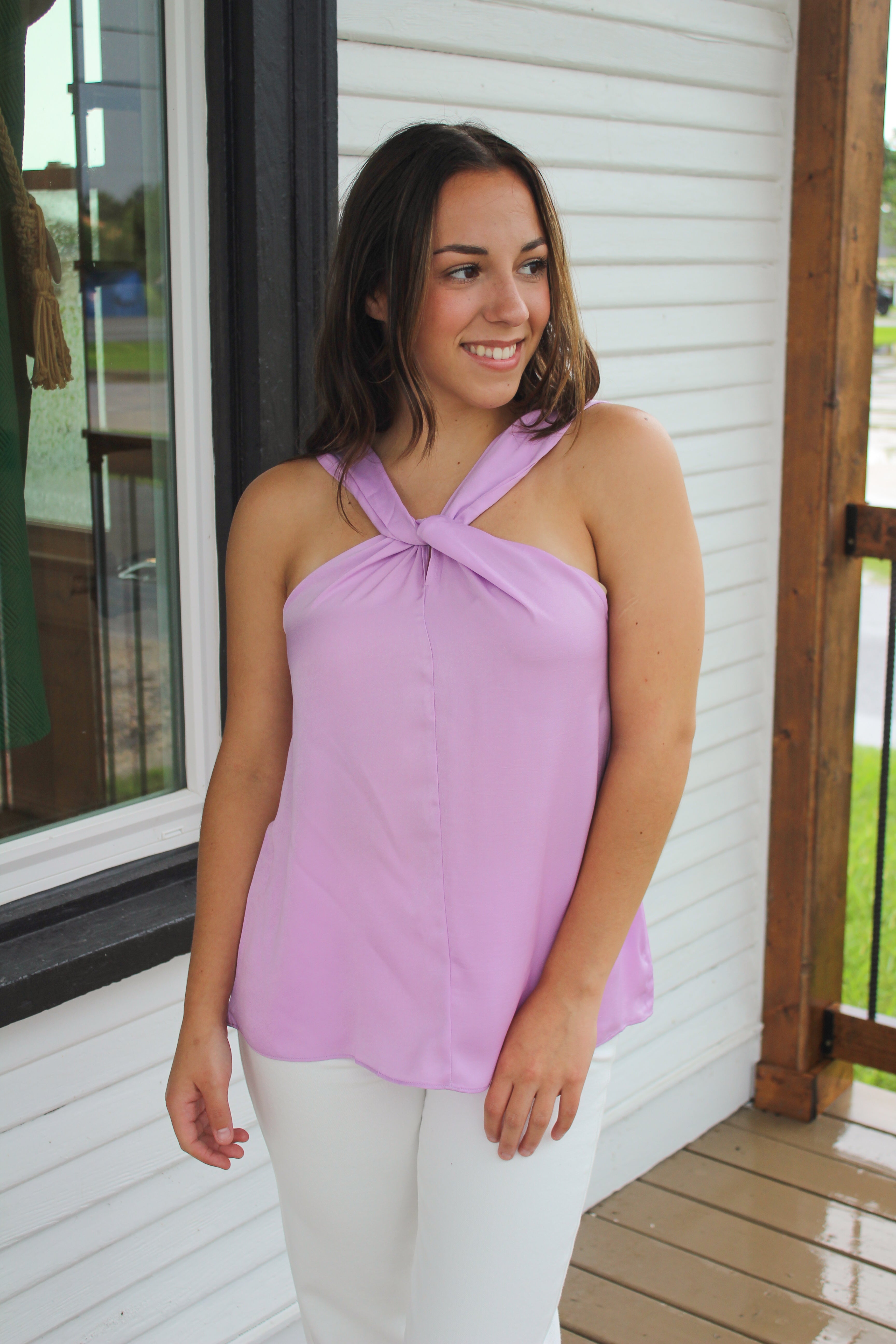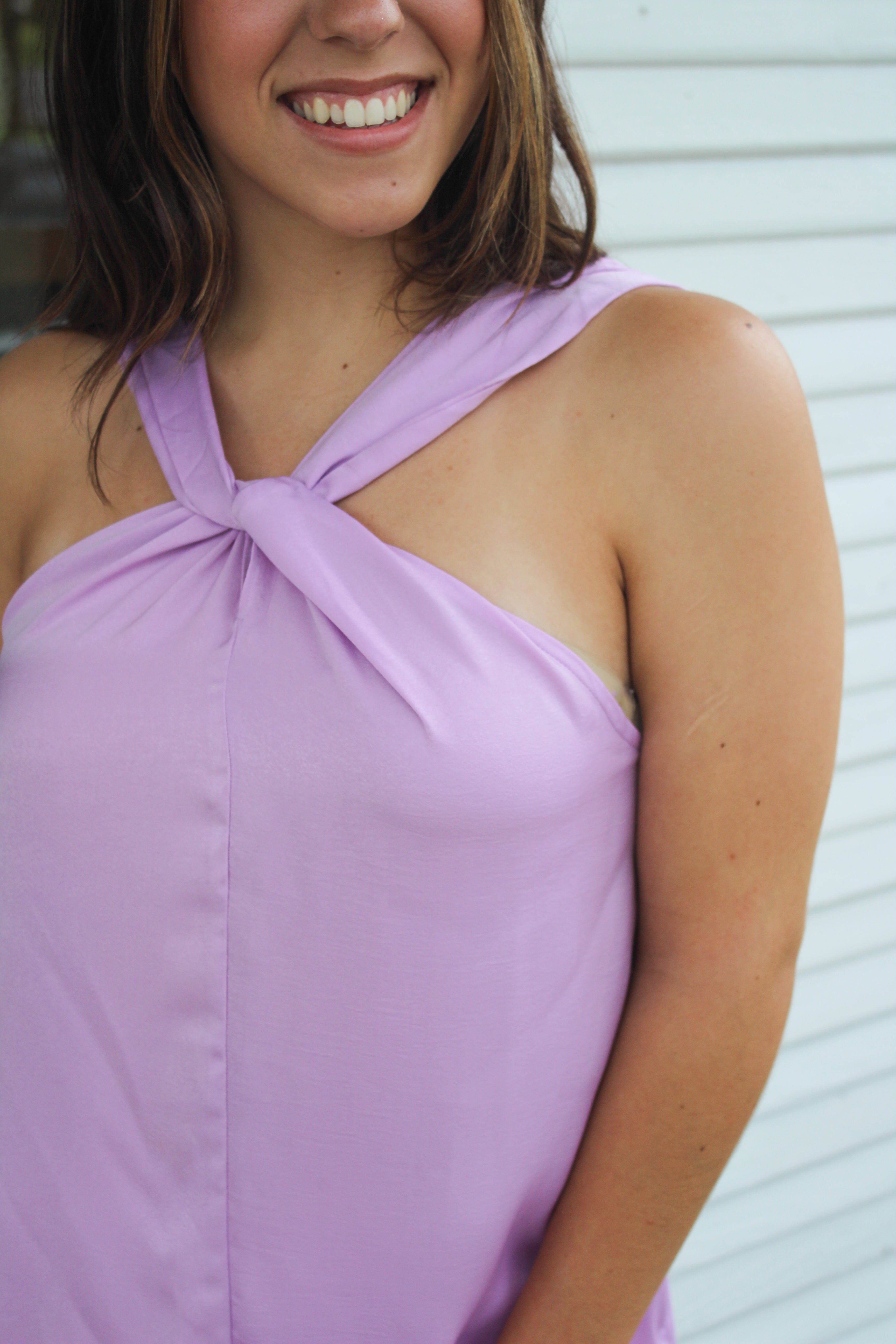 Turn heads in this silky Lilac Halter Top! The flowy satin fabric and relaxed fit provide maximum comfort while the halter neckline and tie neck add a touch of elegance. With a side console zipper, this top is both stylish and practical. Perfect for day or night! Tana is in the small.