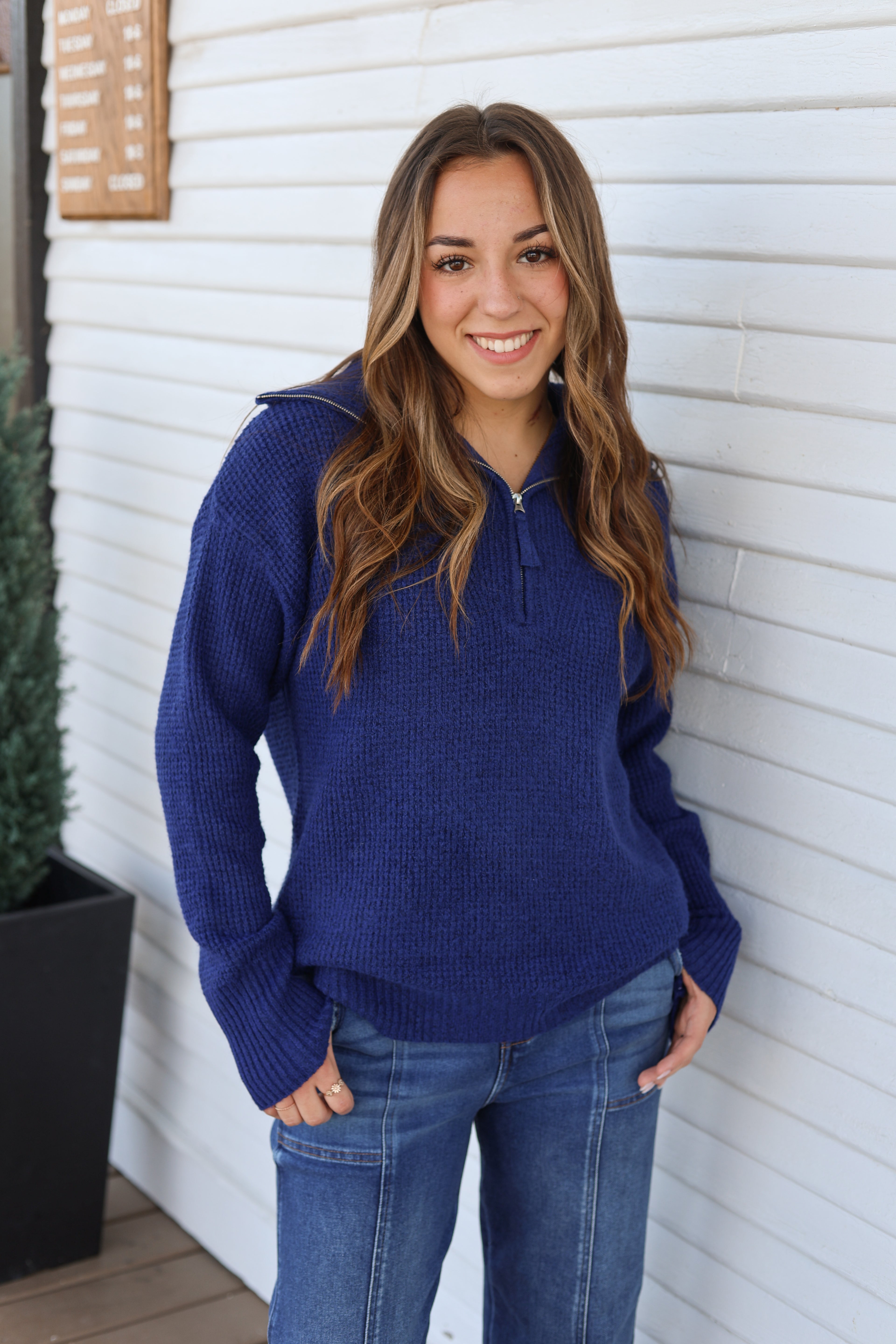 HALF ZIP HIGH COLLARD PULLOVER SWEATER TOTAL BODY LENGTH: 23.5", CHEST: 42" approx.