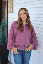 Stay cozy and stylish in this Acid Wash Fleece Button-Up Collared Pullover. Featuring relaxed balloon sleeves, it offers both comfort and a trendy flair perfect for casual lounging. The soft fleece fabric and cool acid wash finish make it your new go-to for laid-back days with a stylish edge.