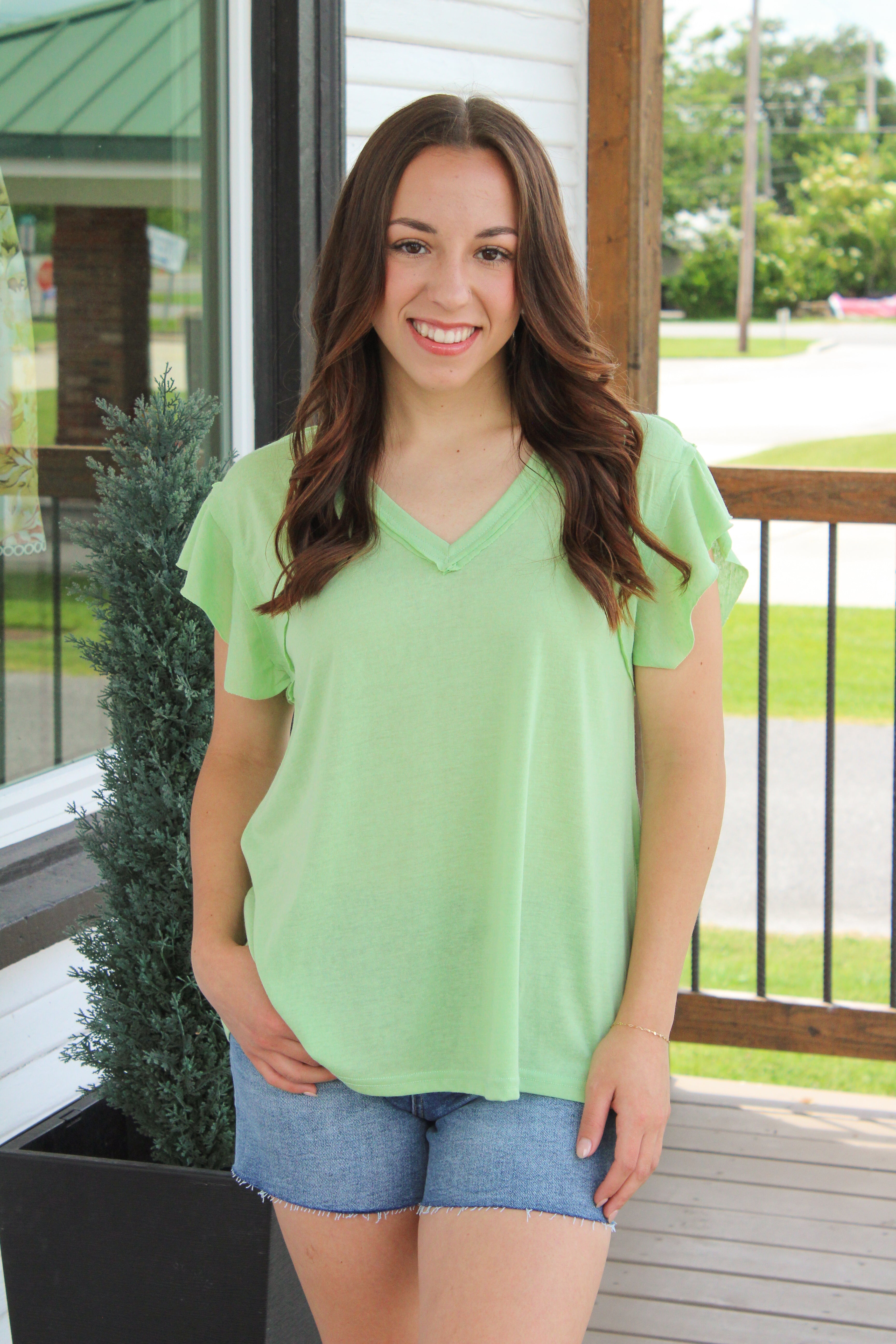 Hanna is pictured in a size large in all items. She wears a size 29 in denim!