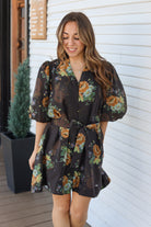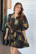 Get ready to turn heads in this stunning floral mini dress! Featuring charming puff sleeves and a ruffled V-neck collar, this piece brings playful elegance to your wardrobe. The front button closure offers easy styling, while the removable waist tie lets you cinch or skip it depending on your mood. With full lining and lined sleeves, you'll stay comfortable and supported throughout the day. Your go-to for effortless, feminine style!