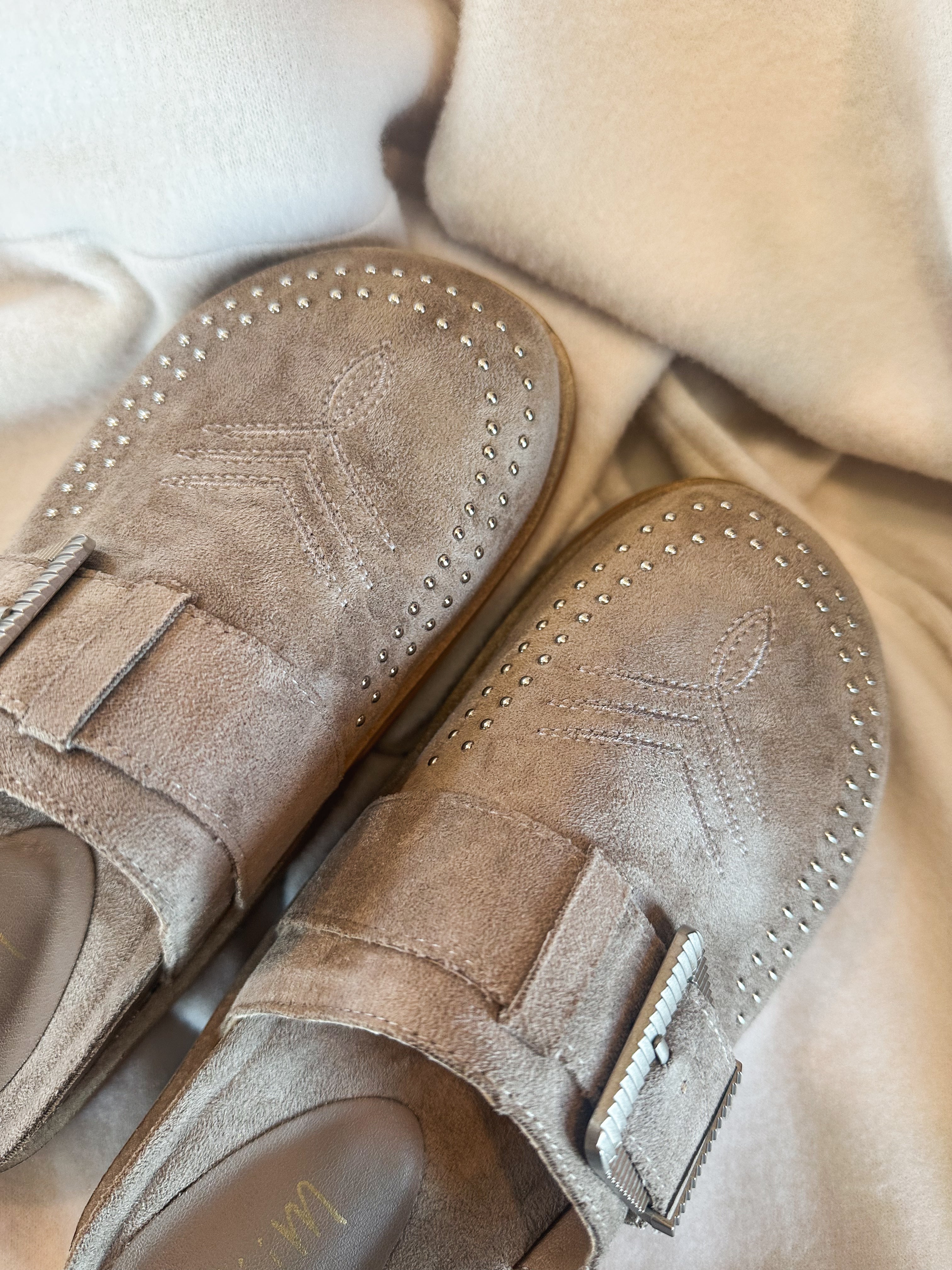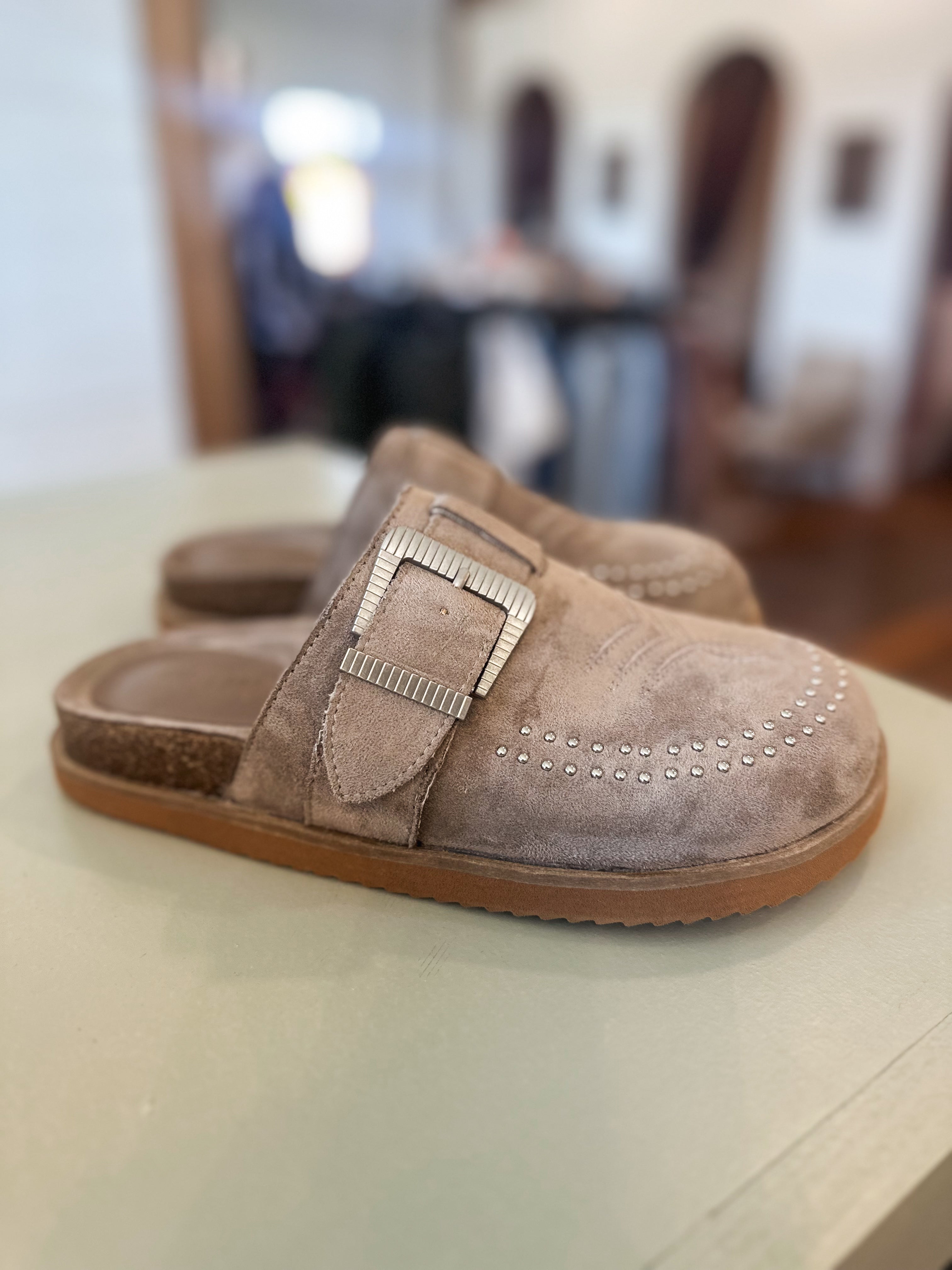 Josephine Clogs offer effortless style with their neutral grey hue and studded detailing. Designed for easy slip-on wear, these clogs combine casual comfort with a subtle edge, perfect for everyday outings. Whether you're running errands or meeting friends, they add a laid-back yet chic touch to any outfit.