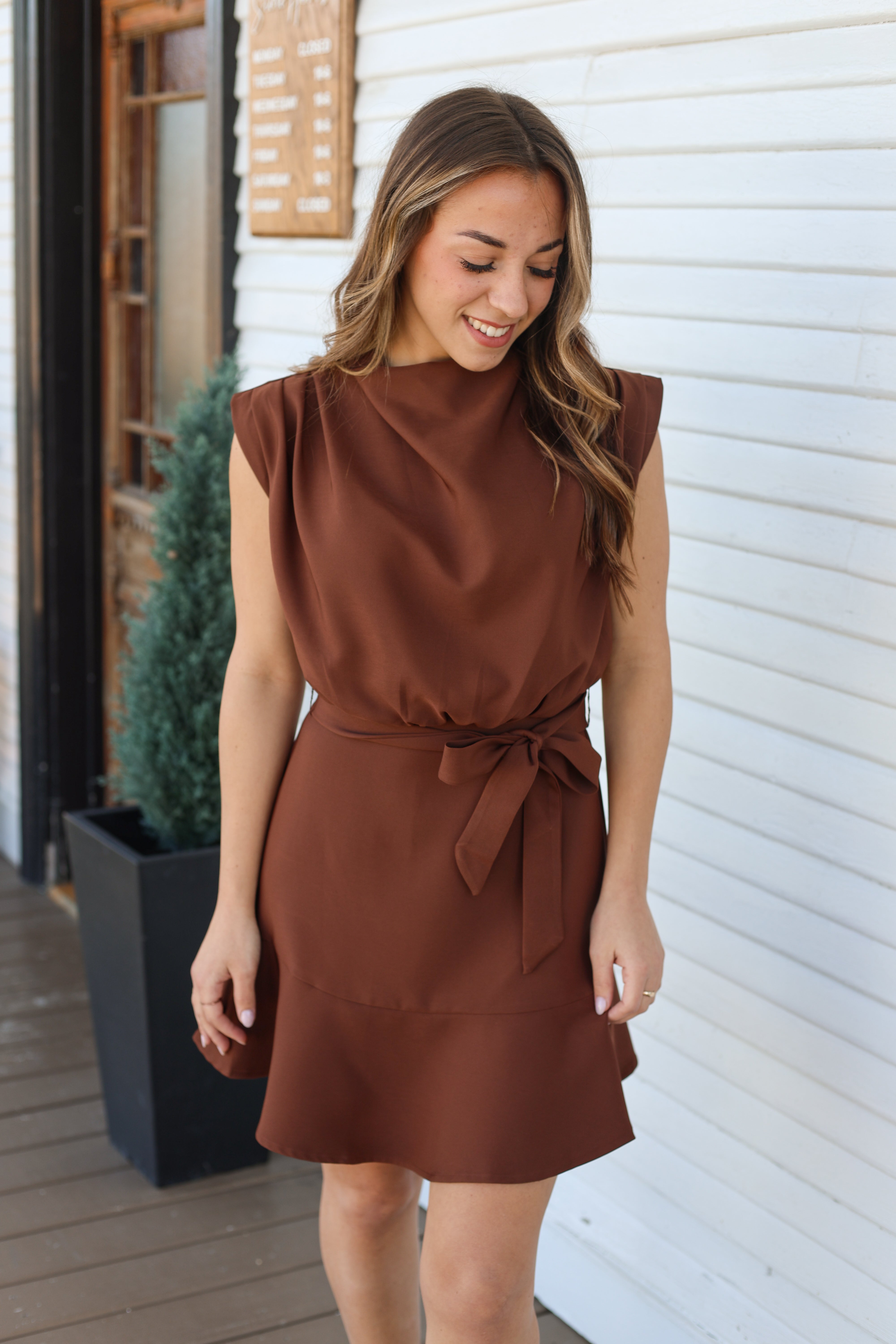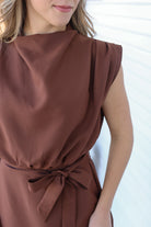 Effortless elegance meets comfort in this stunning cowl neck sleeveless mini dress! The draped neckline creates a sophisticated silhouette while the adjustable waist tie lets you customize the fit for maximum flattery. Perfect for date night, brunch, or any occasion where you want to feel confident and chic. This versatile piece transitions seamlessly from day to evening, making it a must-have!!