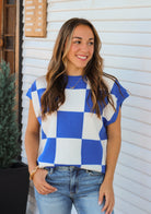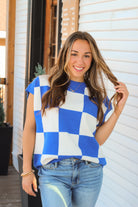 Show your team spirit with the Tarpon Checkered Top, a sleeveless knit perfect for game day excitement. Featuring a vibrant blue and white checkered pattern, this top combines comfort and style, letting you cheer on Tarpon football in cool, breathable fashion. Its casual design makes it easy to wear all day, whether at the stadium or with friends.