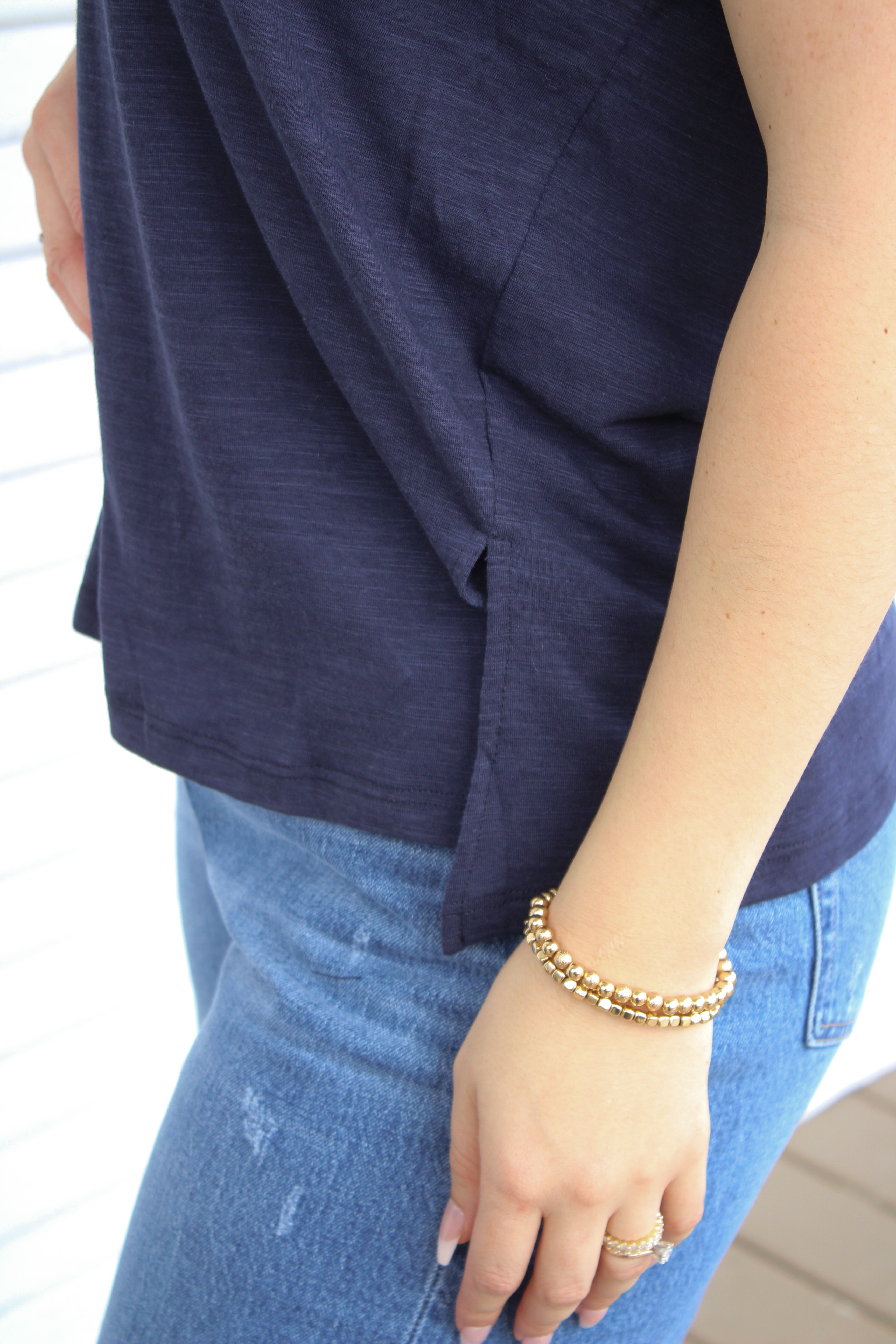 Hanna is pictured in a size large in all items. She wears a size 29 in denim!