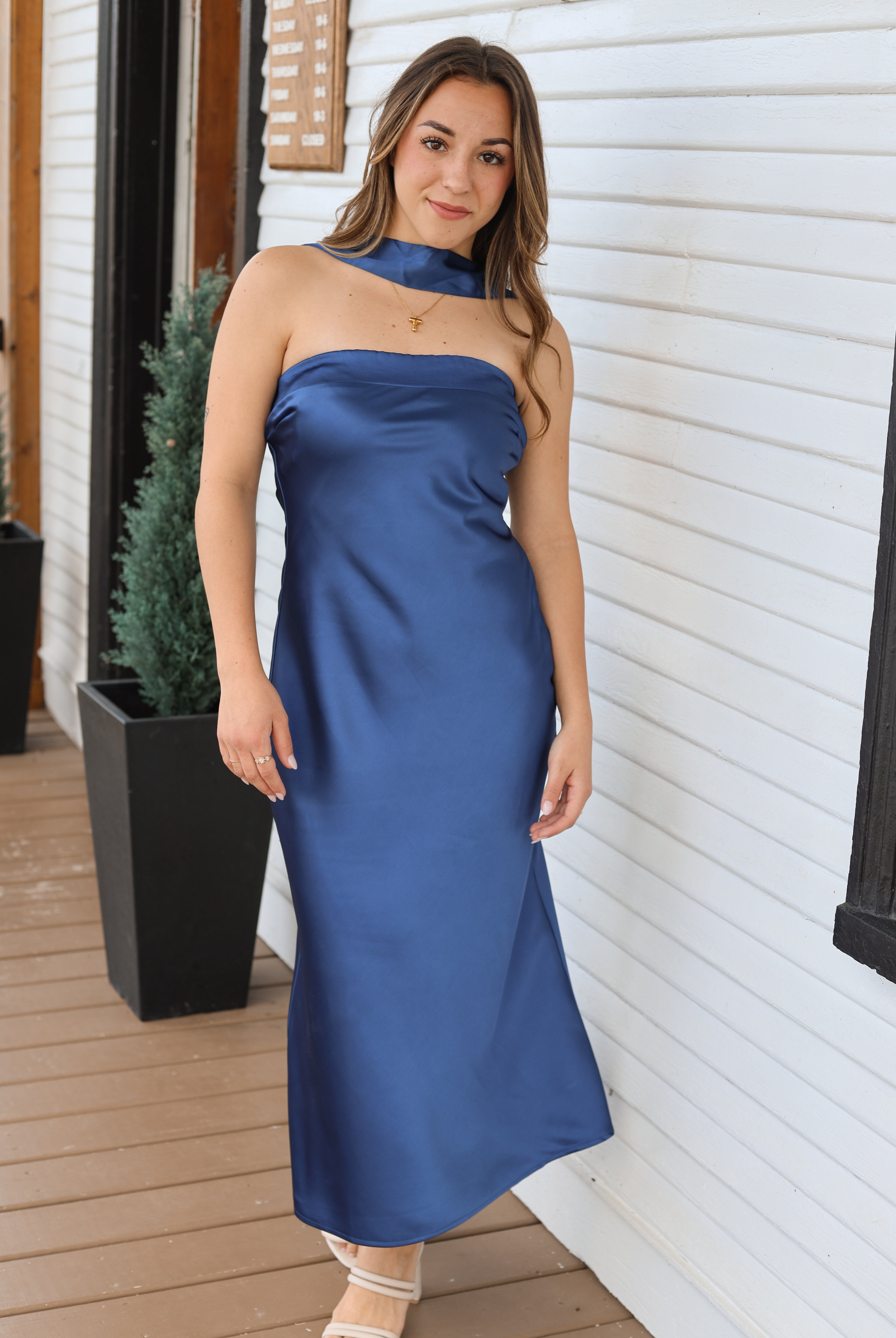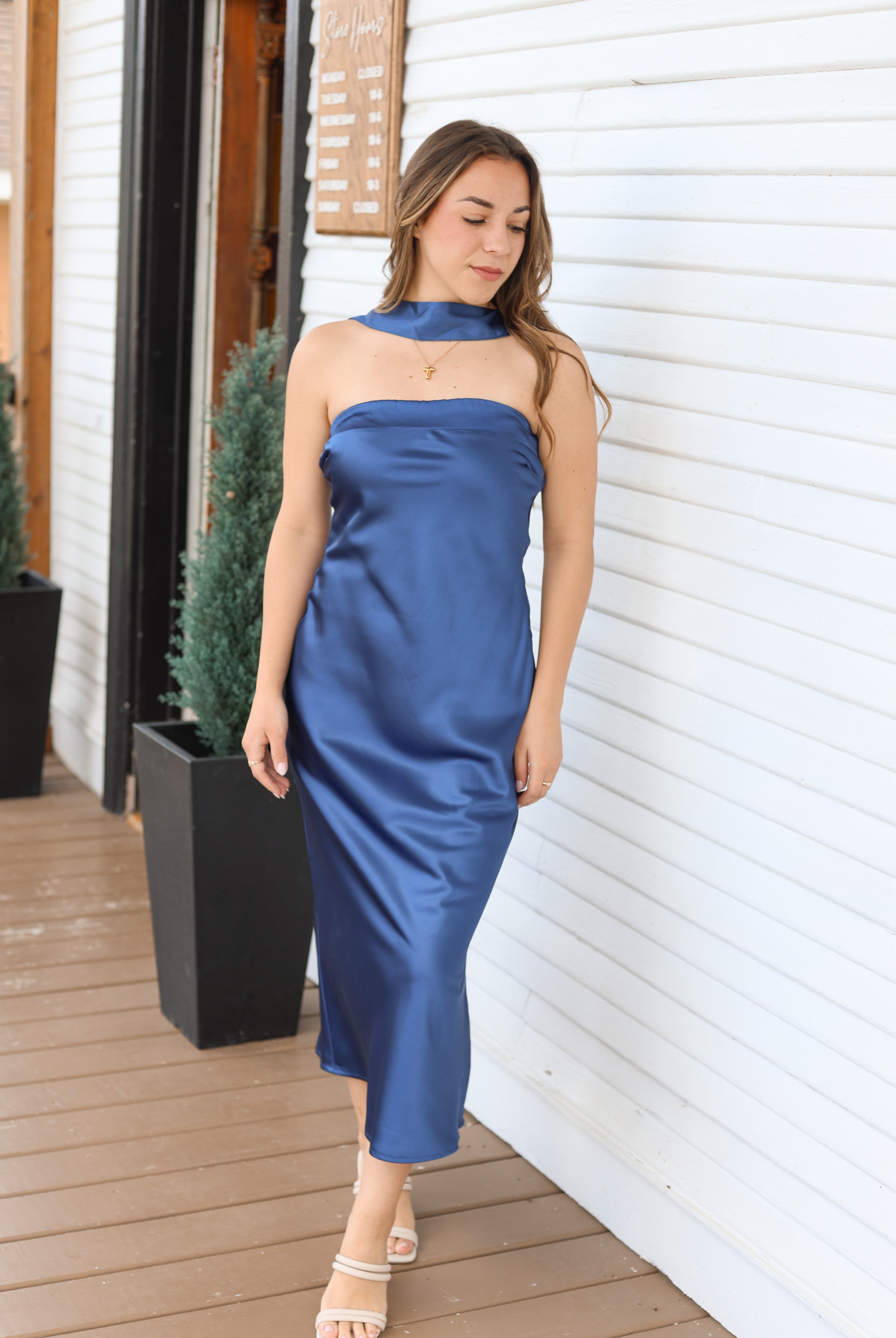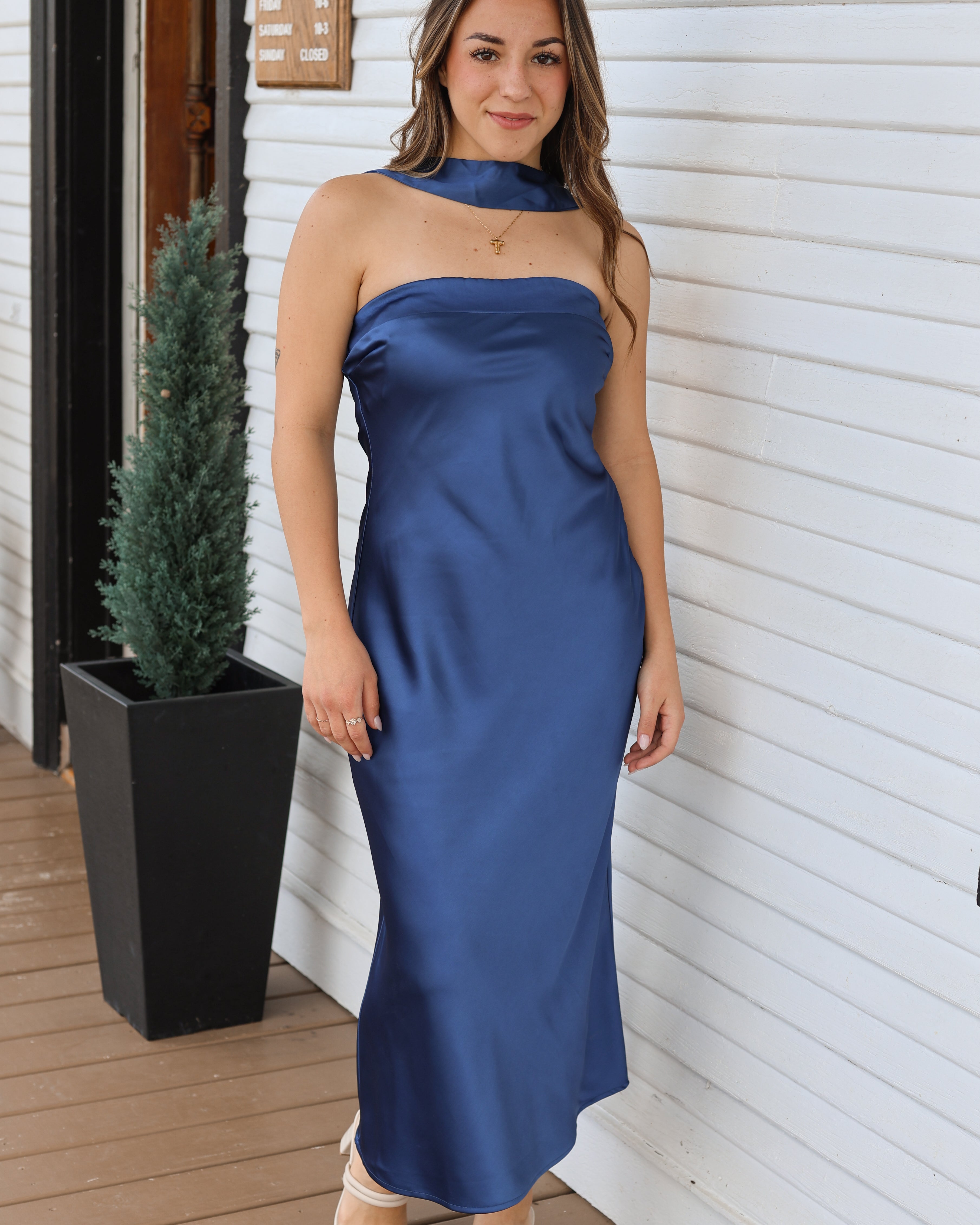 Strapless Scarf Midi Dress