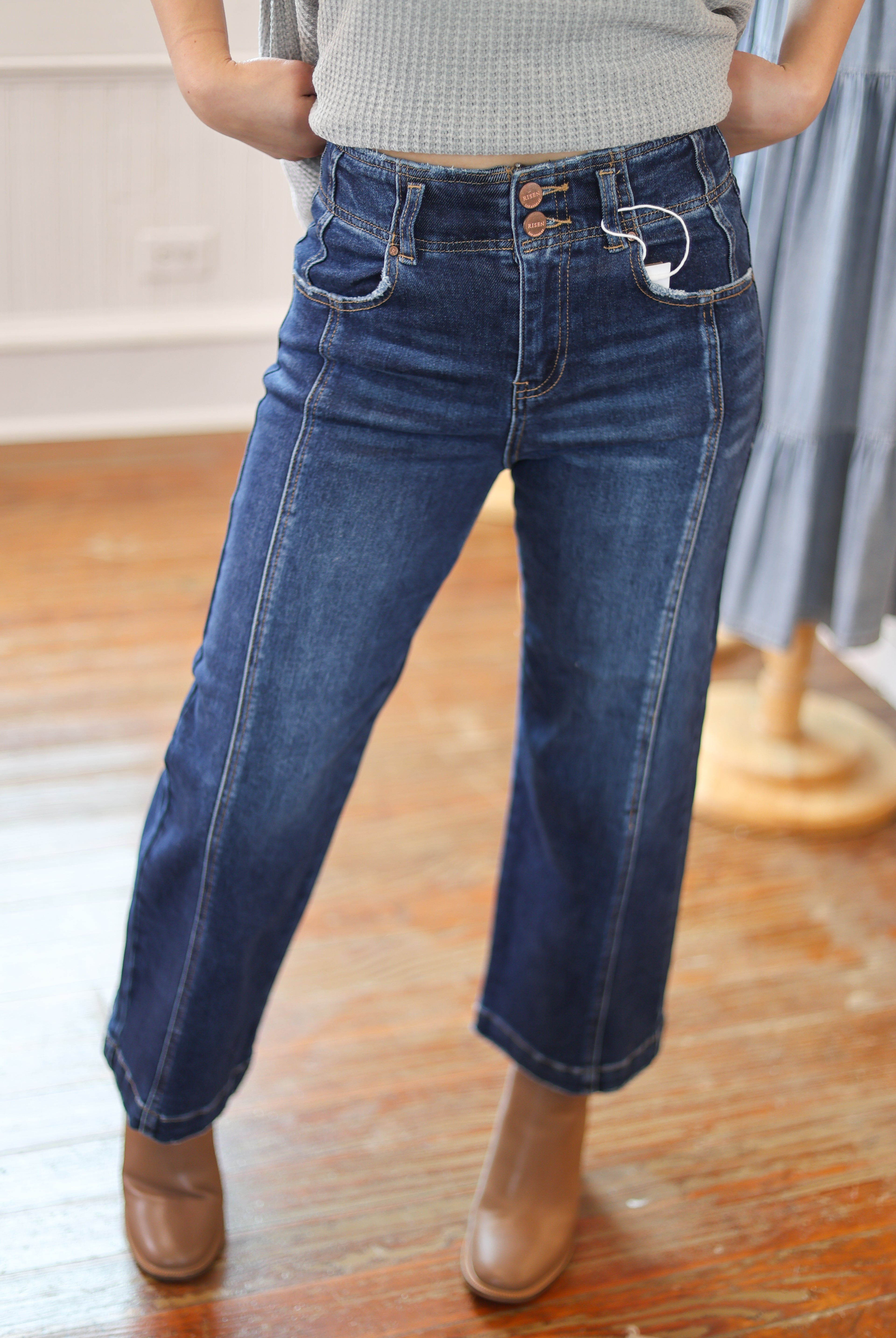 Crop Wide Front Seam Jeans