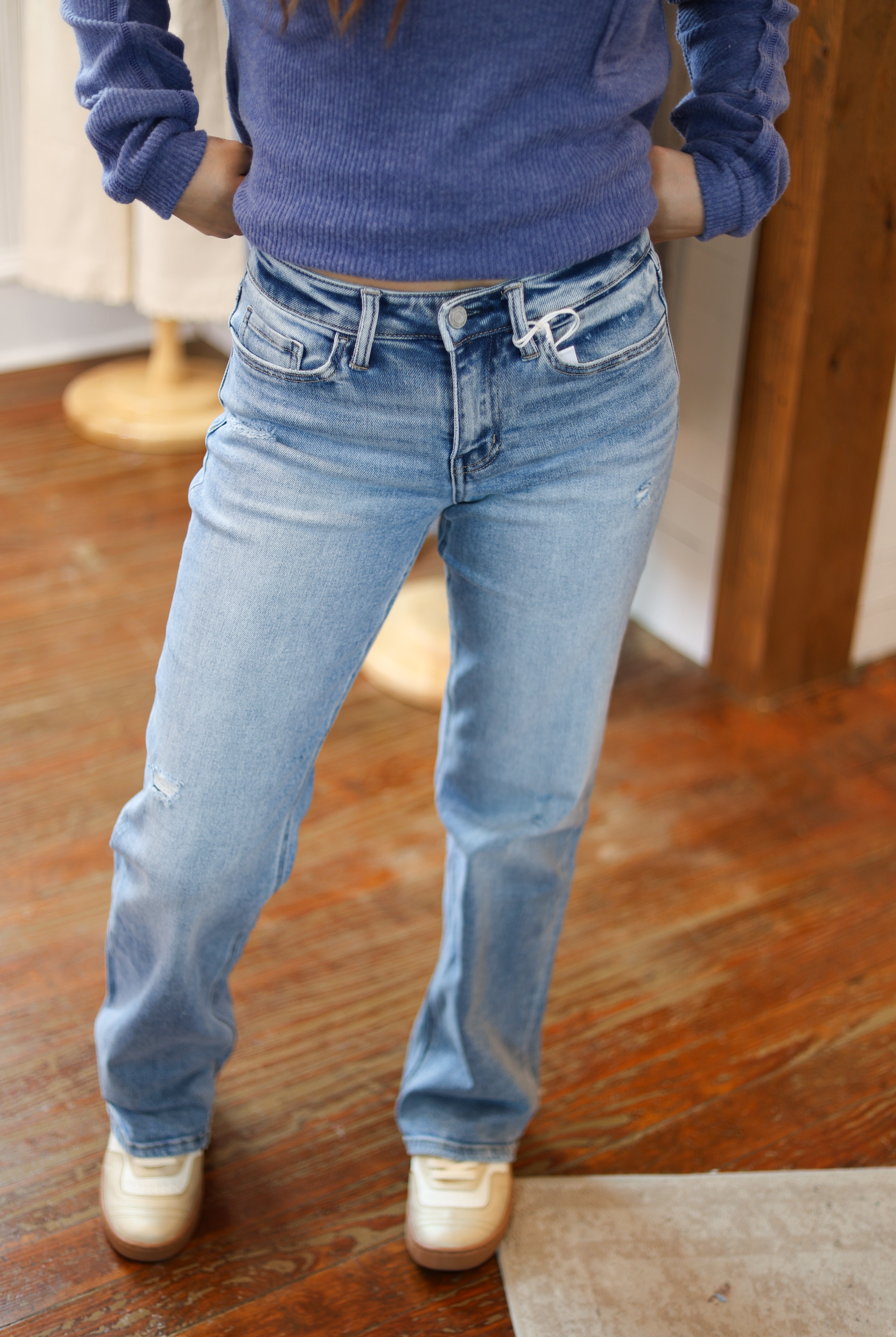 Mid Rise Full Length Slim Wide Jeans